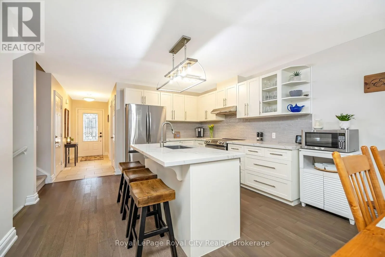 Cross Streets: Juniper Street & Hickory Drive. ** Directions: Hwy 7 to Ridge Road. Left on Jolliffe Ave, Right on Hickory, Left on Juniper. Welcome to this exceptional bungaloft in Charleston Homes' prestigious Noble Ridge community-where refined living meets a peaceful, nature-rich setting in the heart of Rockwood. Offering nearly 3,000 square feet of beautifully finished living space, this home is thoughtfully designed to accommodate multi-generational living without compromise. The main level showcases a stunning primary suite, complemented by soaring vaulted ceilings, a second bedroom, (or a versatile office or den), and an open-concept gourmet kitchen filled with natural light. Upstairs, a spacious loft retreat features a private bedroom, full ensuite bath, and a family room overlooking the main living area below-ideal for extended family or in-laws. The fully finished walkout basement with 9-foot ceilings expands the living space even further, complete with an additional bedroom, full bath, and seamless access to the outdoors. A large elevated deck, lower patio, and carefully curated finishes throughout enhance both function and style. Surrounded by scenic walking trails, a neighbourhood pond, and the charm of Rockwood's local amenities, this home offers a rare blend of luxury, flexibility, and lifestyle. Recent upgrades include quartz countertops in the kitchen and main floor baths, backsplash, new flooring in the loft, carpet on stairs, vinyl flooring in the basement, fresh paint throughout, and stainless steel fridge and stove. (id:27476)