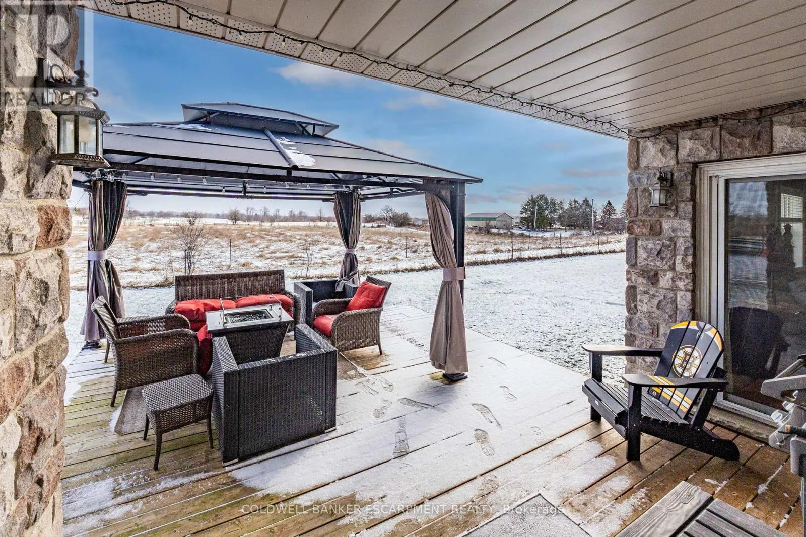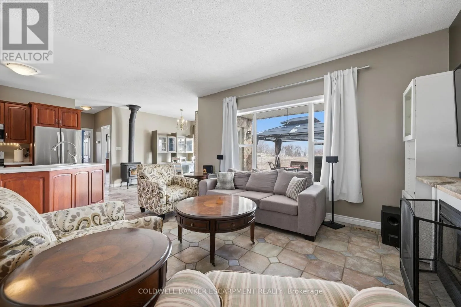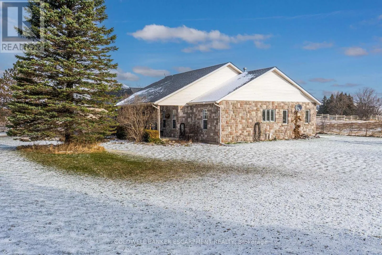 Hwy 44 (Guelph Line) & Eramosa-Milton Townline (32) Welcome home to 4923 Wellington Rd. 44- a 4-bedroom, 3-bathroom bungalow located in the country- but only minutes from town! You'll enjoy quiet living, fresh air & expansive views of fields & trees from every window. Impressive looking from the road w/ stone exterior, landscaping & large, covered front porch. With 2,167 sq ft set on 0.7 acres- your family can spread out. Well thought out floor plans w/ 2 bedrooms at each end of the house & open concept, communal living space in the middle. 9' ceilings. Attractive kitchen boasts wood cabinetry, glass front cupboards & lots of storage space w/ pantry closet. Dining area is sundrenched w/ a huge picture window & patio drs. Super cozy during winter w/ wood stove. Walk-out to partially covered deck (gazebo included) & enjoy views of your property & beyond. Sometimes horses wander up to the fence line! Family rm also features picture window & propane fireplace. Office near front door- great for working from home. Spacious Primary bedroom feat. hardwood flrs & windows along 3 sides of the room including walk-out to deck. Ensuite is huge w/ double sinks, lots of counter space, soaker tub w/ overhead window & separate shower. Walk-in closet w/ built-in organizers. Main floor laundry rm. Convenient side entrance beside garage leads to mudroom w/ low tub- great for rinsing off your dog's muddy paws or drying wet boots. Unfinished basement is pristine & huge! Leave as-is for all the storage you could ever dream of or finish to double your living space. Oversized 2.5 car garage is tucked into the side of the house. Room for many more cars in the driveway. Great location-just 4 minutes to in-town Rockwood w/ amenities & good schools. Also close to Guelph, Milton & within reach of the GTA. So close to the Rockwood Conservation Area- offering hiking & cycling trails, swimming at the sandy beach, canoeing, kayaking, camping & picnicking. If you've always wanted to move to the country, don't wait any longer- book your showing today!! (id:27476)