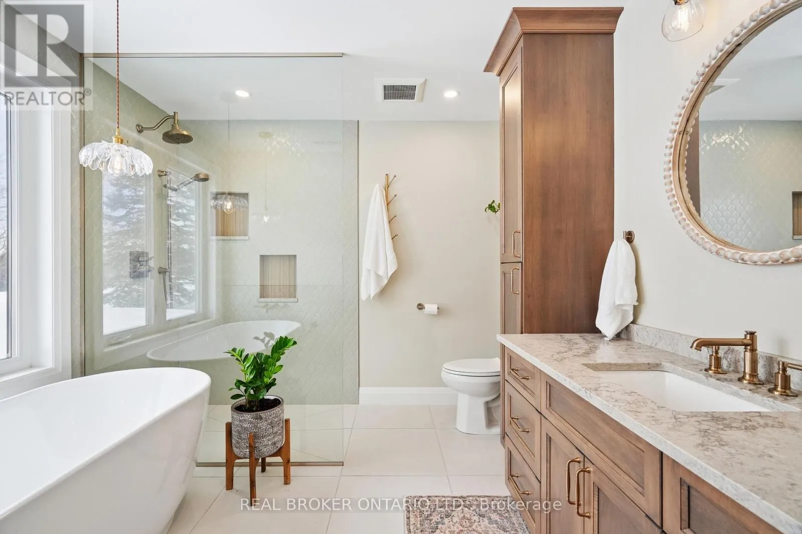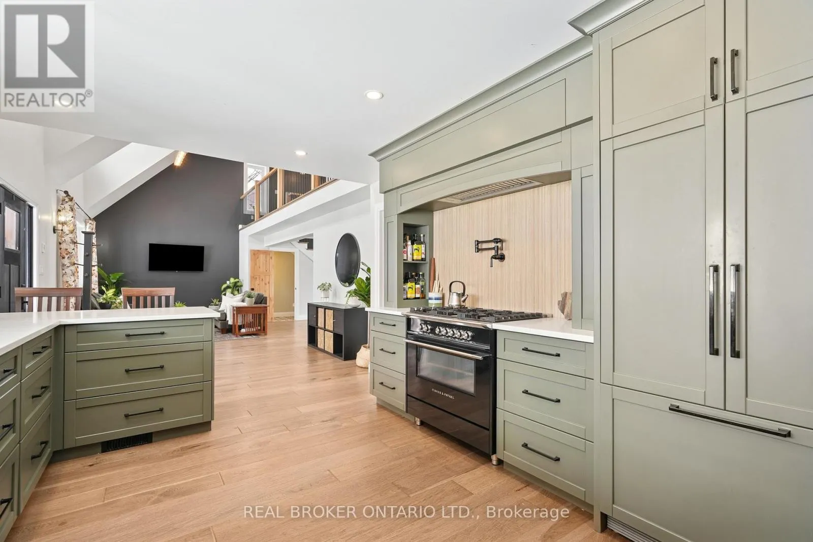 Cross Streets: Wellington Rd 26/Wellington Rd 22. ** Directions: Wellington Rd 124 to Wellington Rd 26 to Wellington Rd 22. Welcome to 8687 Wellington Rd 22 in Rockwood, a beautifully renovated 4-bedroom, 3-bathroom family home offering 2,240 sq ft of thoughtfully designed living space on a 100 x 150 ft lot just minutes from Belwood Lake Conservation Area. Completely transformed in 2023, this home was rebuilt with care and quality, including a second storey addition, new roof, energy-efficient windows, upgraded insulation, new wiring and plumbing, modern mechanical systems, and an on-demand hot water heater. Step inside to a bright open-concept main floor where the heart of the home is a stunning chef's kitchen featuring quartz countertops, a spacious breakfast bar, gas range with pot filler, pot lights, oversized windows and a walk-in pantry that makes family organization effortless. The living room impresses with a soaring vaulted ceiling open to above, while the dining room walks out to the backyard. The main floor primary bedroom offers privacy and convenience with a walk-through closet and beautifully finished 4-piece ensuite. A 2-piece powder room completes the level. Upstairs, families will love the open loft space currently designed as a home office overlooking the living room. Three generously sized bedrooms and a 4-piece bathroom provide room for growing families. The finished basement offers additional living space including a recreation room and laundry room . Outside, enjoy a double car garage with interior access, parking for up to 6 vehicles in the driveway. Located just 12 minutes to Belwood Lake Conservation Area, 18 minutes to Fergus, and 20 minutes to Acton GO Station for commuting into Georgetown, Brampton, and Toronto, this property delivers rural tranquility without sacrificing accessibility. If you have been searching for a fully renovated country home near Rockwood with space, privacy, and commuter convenience, this is the one that feels like home the moment you walk in. (id:27476)