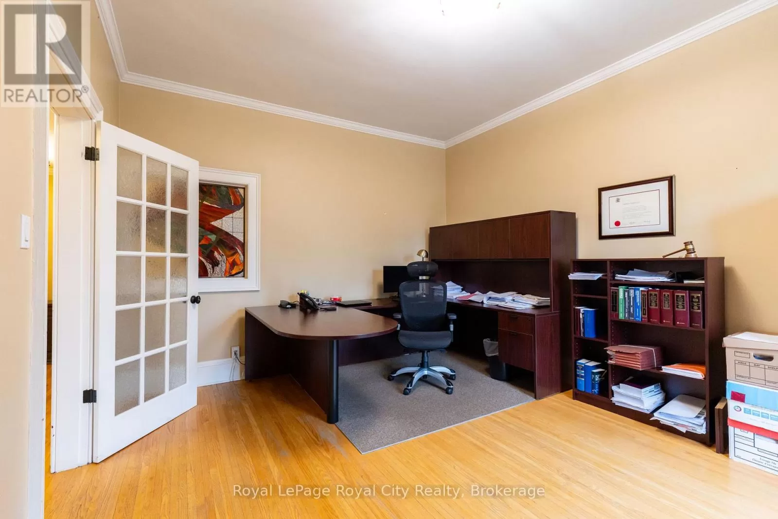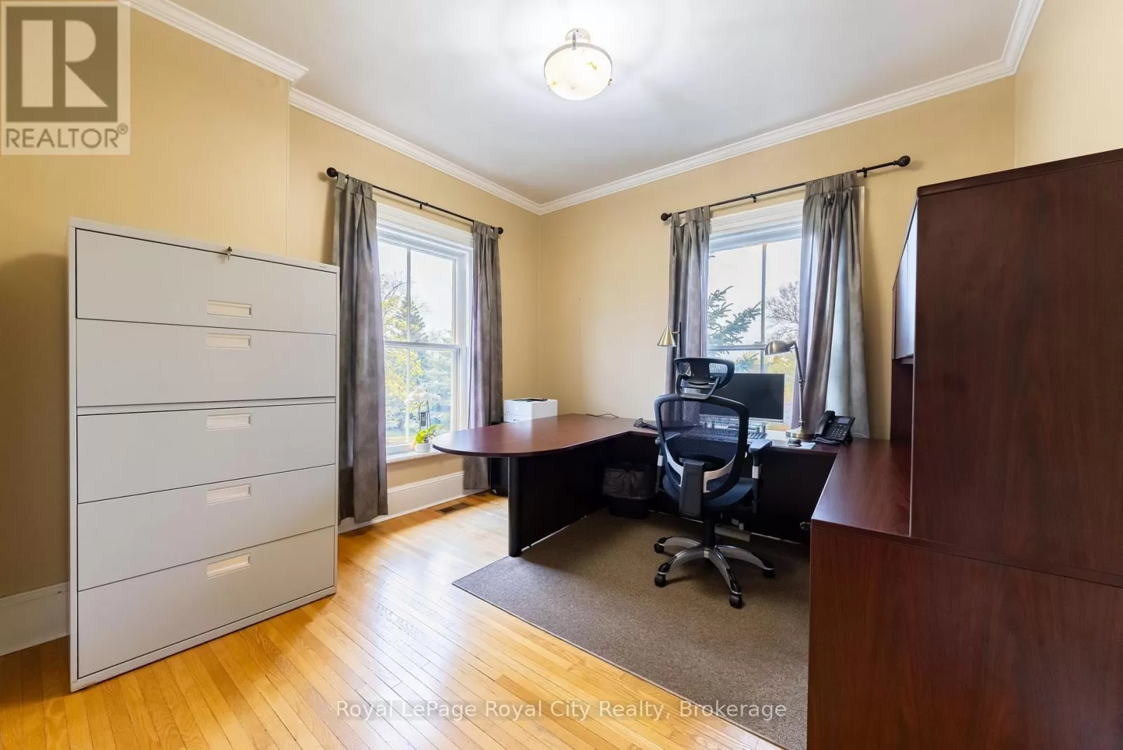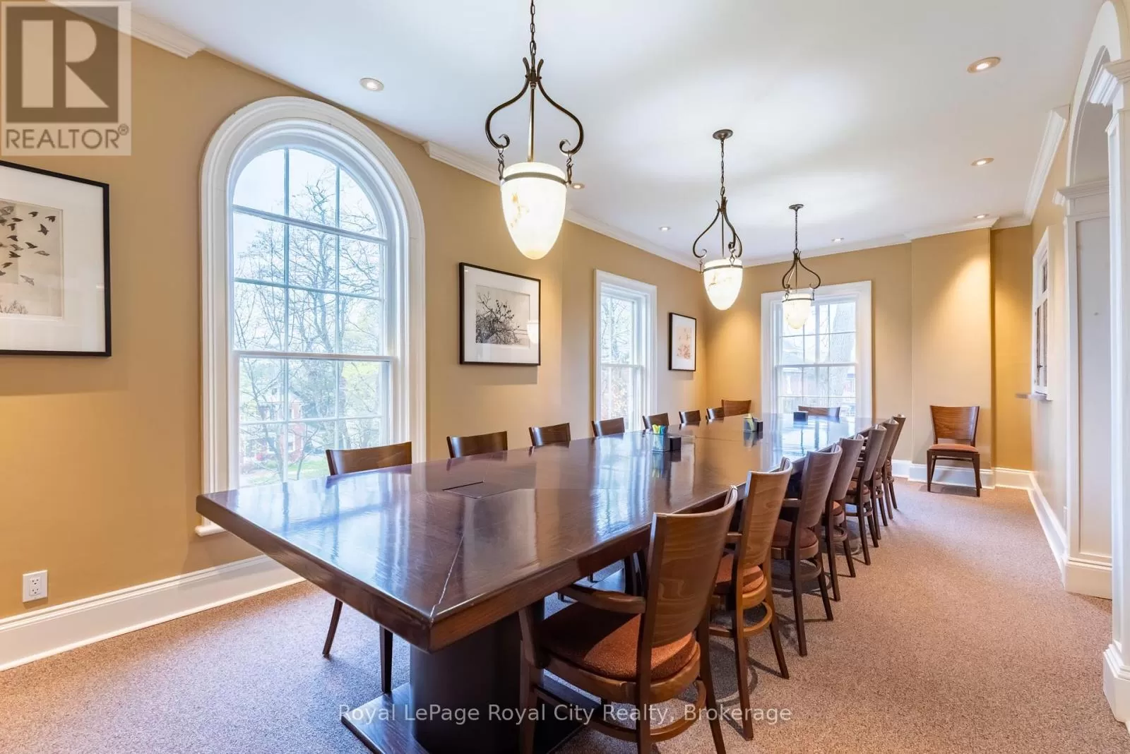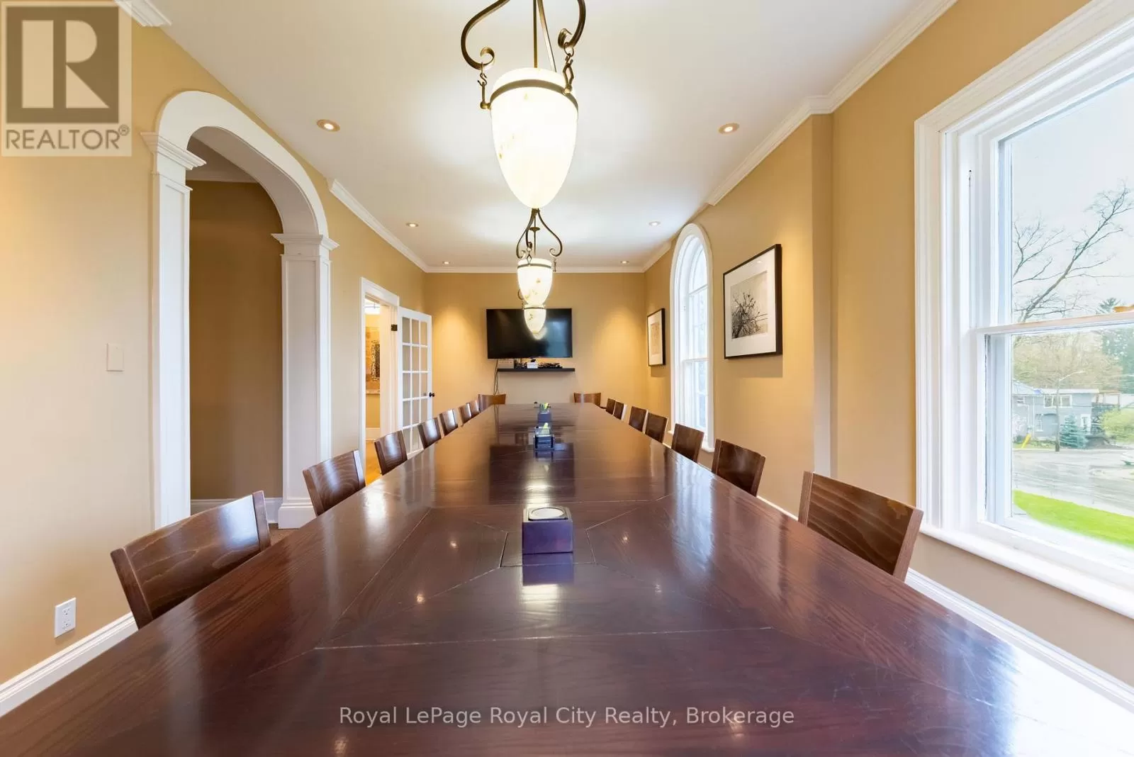 Cross Streets: Clarke & Woolwich. ** Directions: Woolwich north from London Road to property on east side. Prominent Professional Office building on Woolwich Street just north of the Downtown core. This property has been meticulously maintained and updated inside and out with careful consideration for its' historical charm. Located on a half acre corner lot, there is plenty of room for expansion, additional parking and/or residential re-development. The zoning allows for a myriad of uses. The main level with a large reception area also houses several admin offices, a number of large private offices, kitchen, 3 washrooms and a board room. The second floor has a very large boardroom, more private offices, kitchenette and washroom. The second floor Boardroom is very impressive and capable of hosting large meetings. The existing parking lot can easily accommodate parking for 20 vehicles. The basement currently houses 500 sq ft of dry file storage as well as mechanicals. This is one of the most iconic office buildings on Guelph's Woolwich corridor, a well located blend of Commercial and Residential properties. (id:27476)