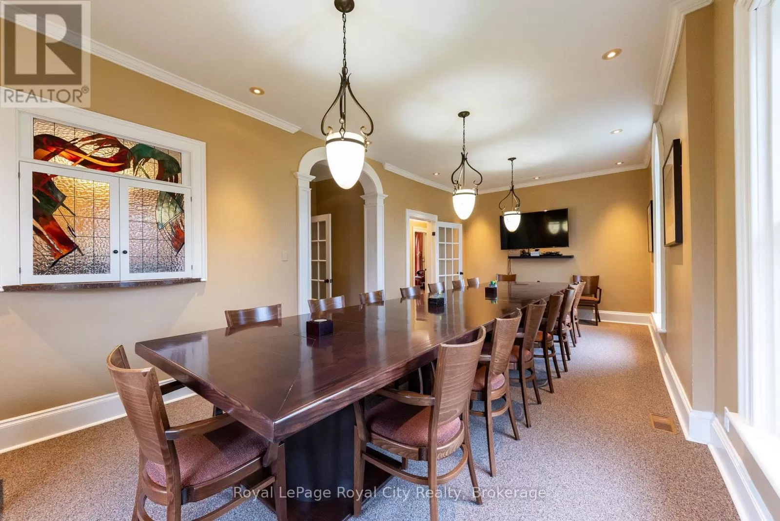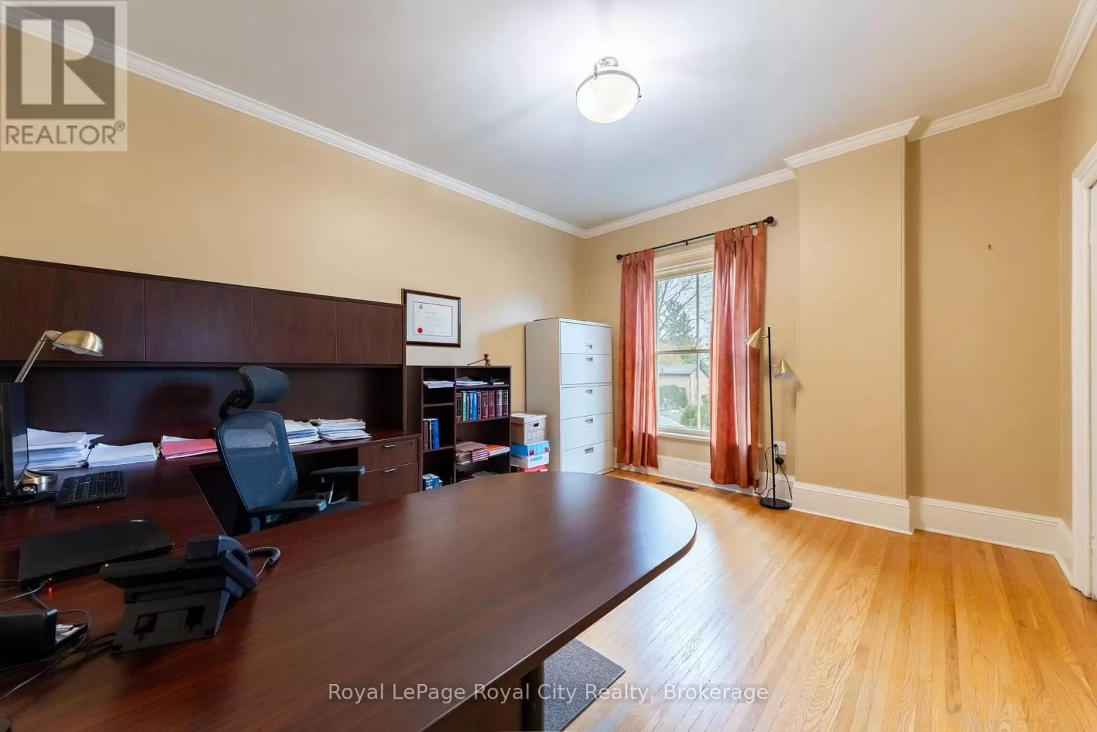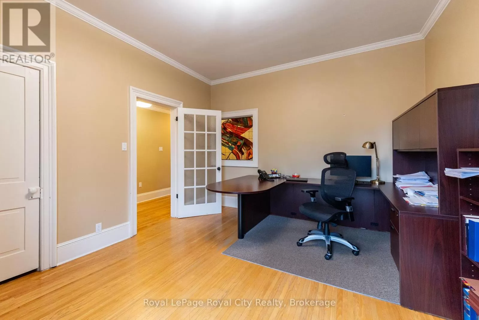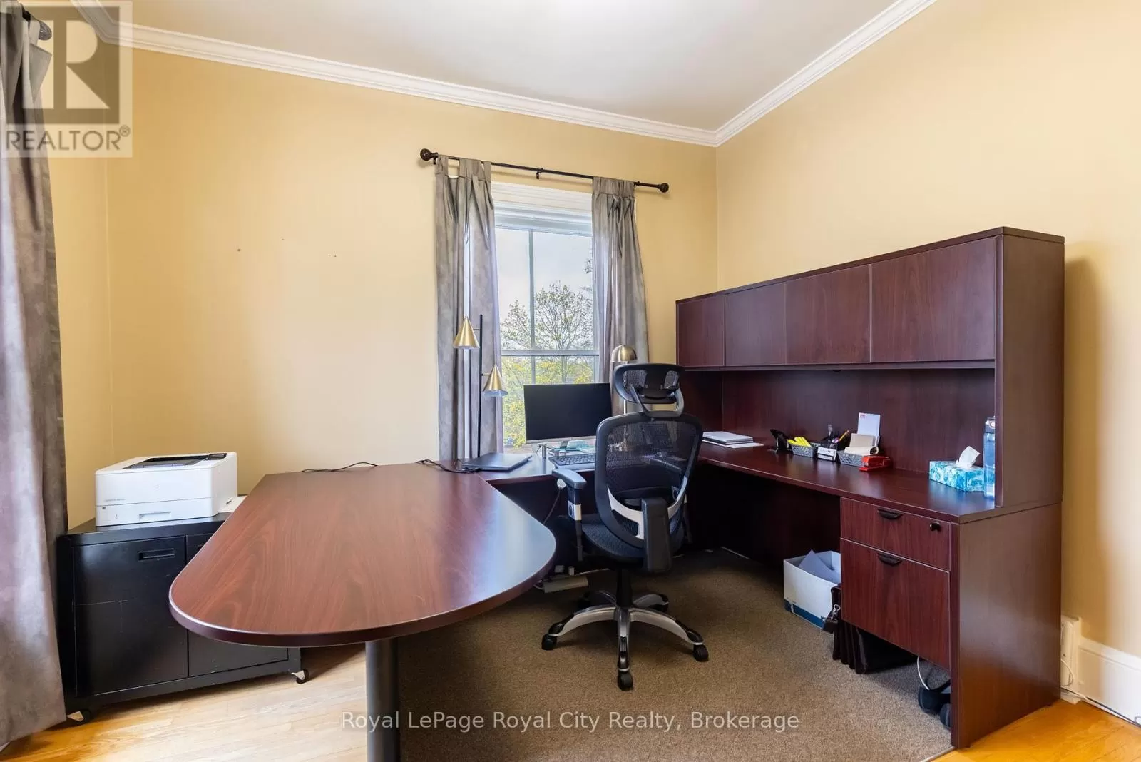 Cross Streets: Clarke & Woolwich. ** Directions: Woolwich north from London Road to property on east side. Prominent Professional Office building on Woolwich Street just north of the Downtown core. This property has been meticulously maintained and updated inside and out with careful consideration for its' historical charm. Located on a half acre corner lot, there is plenty of room for expansion, additional parking and/or residential re-development. The zoning allows for a myriad of uses. The main level with a large reception area also houses several admin offices, a number of large private offices, kitchen, 3 washrooms and a board room. The second floor has a very large boardroom, more private offices, kitchenette and washroom. The second floor Boardroom is very impressive and capable of hosting large meetings. The existing parking lot can easily accommodate parking for 20 vehicles. The basement currently houses 500 sq ft of dry file storage as well as mechanicals. This is one of the most iconic office buildings on Guelph's Woolwich corridor, a well located blend of Commercial and Residential properties. (id:27476)