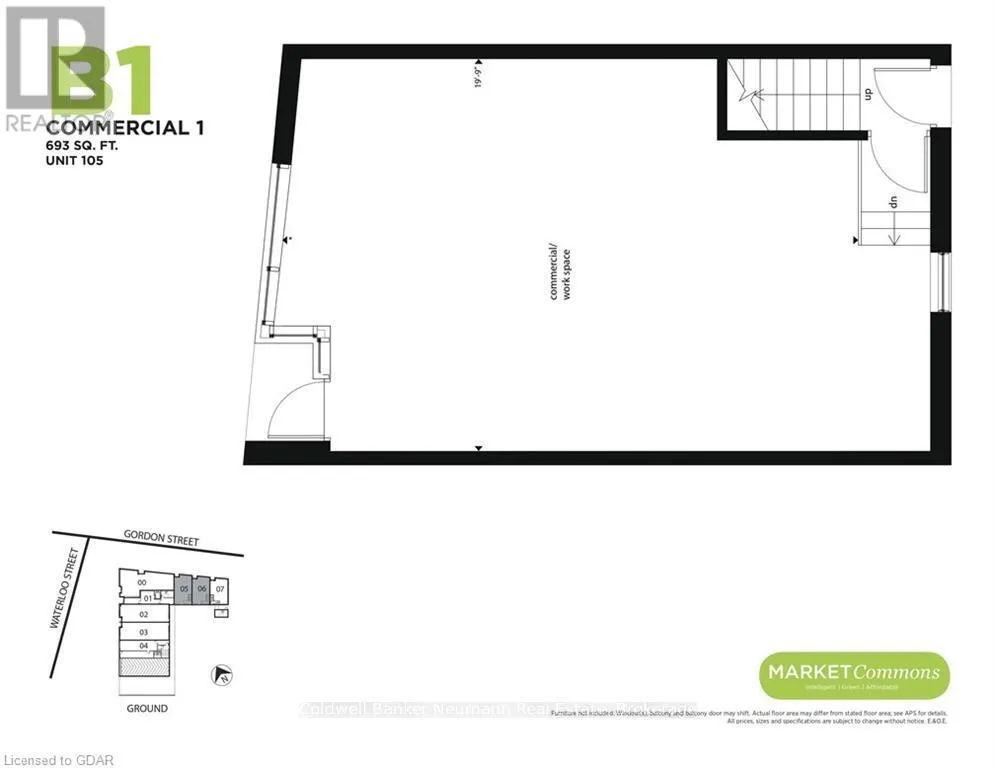 Wellington from hwy - left on Gordon FOR SALE: A prime commercial condo nestled in the heart of downtown Guelph! 105-5 Gordon St., right across from the Farmers Market, offers an amazing opportunity for professionals, businesses, and organizations alike. At this ideal high-exposure location, the space is perfect for setting up a business, personal service, or office, with convenient proximity to all the downtown amenities including the huge parkade, City Hall, the Court House, and more. Whether you're an entrepreneur seeking a place to meet with clients or a clinic or esthetician looking for the perfect spot to thrive, this condo offers versatile potential. Say goodbye to rental worries as you become the proud owner of this accessible space, ideal for both individual ventures and larger corporations seeking a kiosk location. With motivated sellers, this place is easy to show and brimming with potential. Seize the chance to own a piece of downtown Guelph's vibrant commercial landscape today. It's a larger 693 Square Foot Unit! (id:27476)