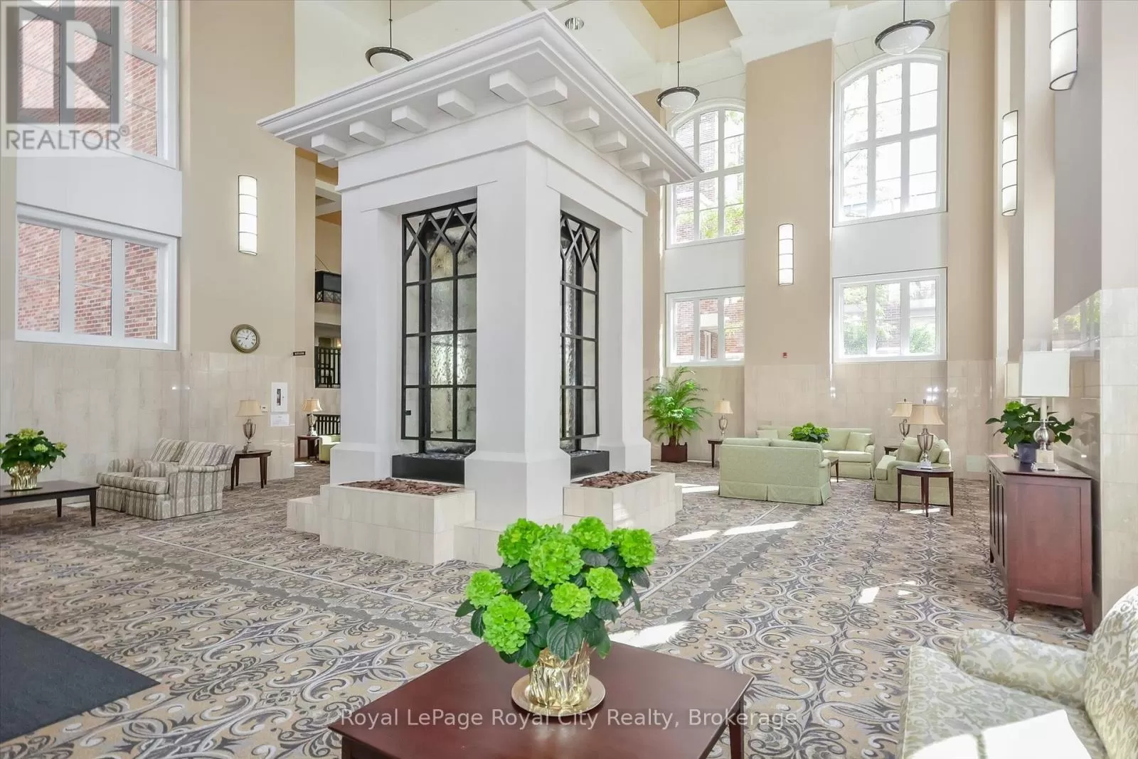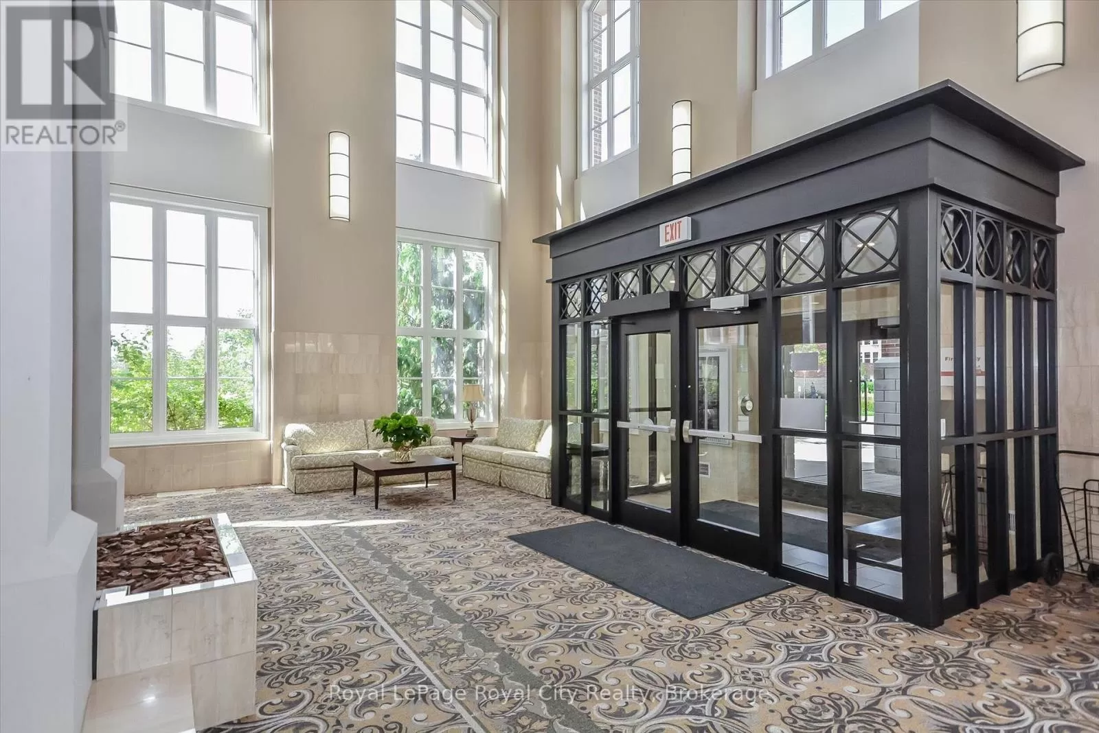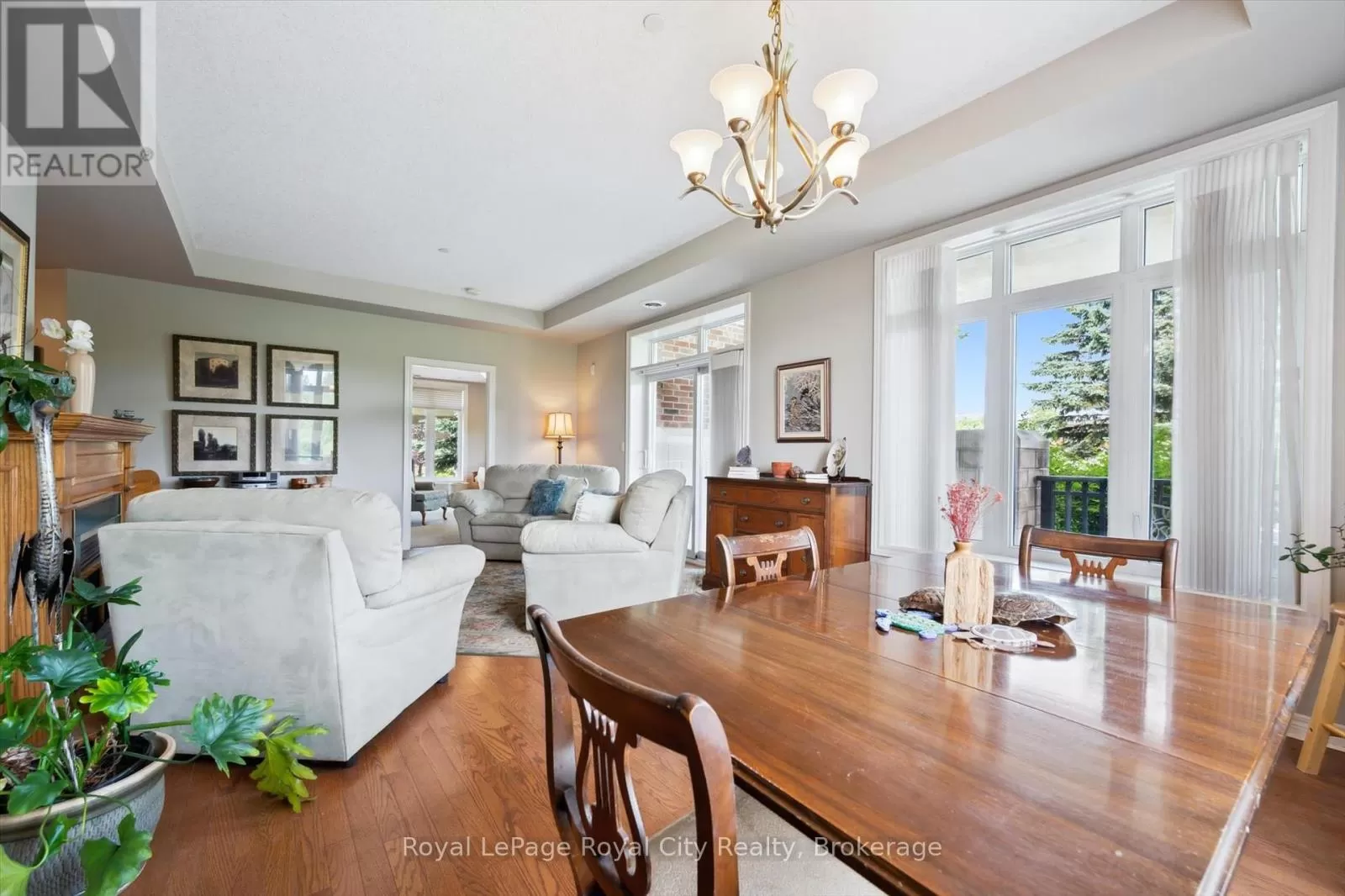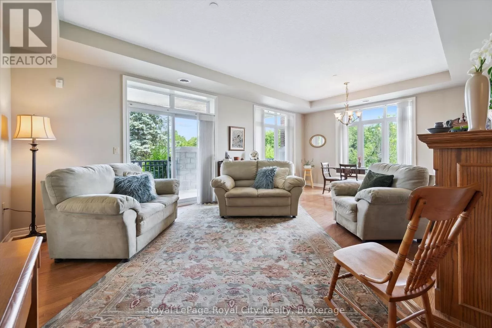 Cross Streets: Stone Rd. ** Directions: Stone Rd to Village By The Arboretum, enter on Village Green Dr then left onto Bayberry. Great opportunity to enjoy retirement living at The Village By The Arboretum in Guelph, Premier 55+ Adult Lifestyle Community. This bright corner unit is on the ground floor with 2 private balconies surrounded by trees with windows on three sides. For the environmentally conscious, you will appreciate the natural controls for cooling in the summer and protection in the winter. For easy access, the underground parking location is right beside the elevator, ride up and Unit 112, is steps away on the first floor. Inside, this unit of 1492 sq ft, features an open concept design, living and dining area surrounded by bright windows and patio doors opening onto one of the balconies. The second balcony faces east. Open this set of patio doors and enjoy your morning coffee from the breakfast area as the sun rises. The primary bedroom offers a ensuite 4 piece bath and a large walk in closet, with window views to the east. The second bedroom can be used as a TV room so you can watch the setting sun from the large bright windows. You'll also find a separate den with two entrances, in-suite laundry, and ample closet space throughout. Additionally, there is a conveniently located large exclusive locker for more storage. As a resident of The Village, you'll have full access to the 28,000+ sq ft Village Centre, a welcoming centre to meet your neighbours with many activities available; an indoor pool, sauna, hot tub, fitness rooms, tennis & pickleball courts, billiards, library, and over 100 resident-led clubs and classes. Besides planning for the future, living in this very special ground floor condo, being surrounded by trees and songbirds outside your door, creates a new lifestyle with new memories. (id:27476)