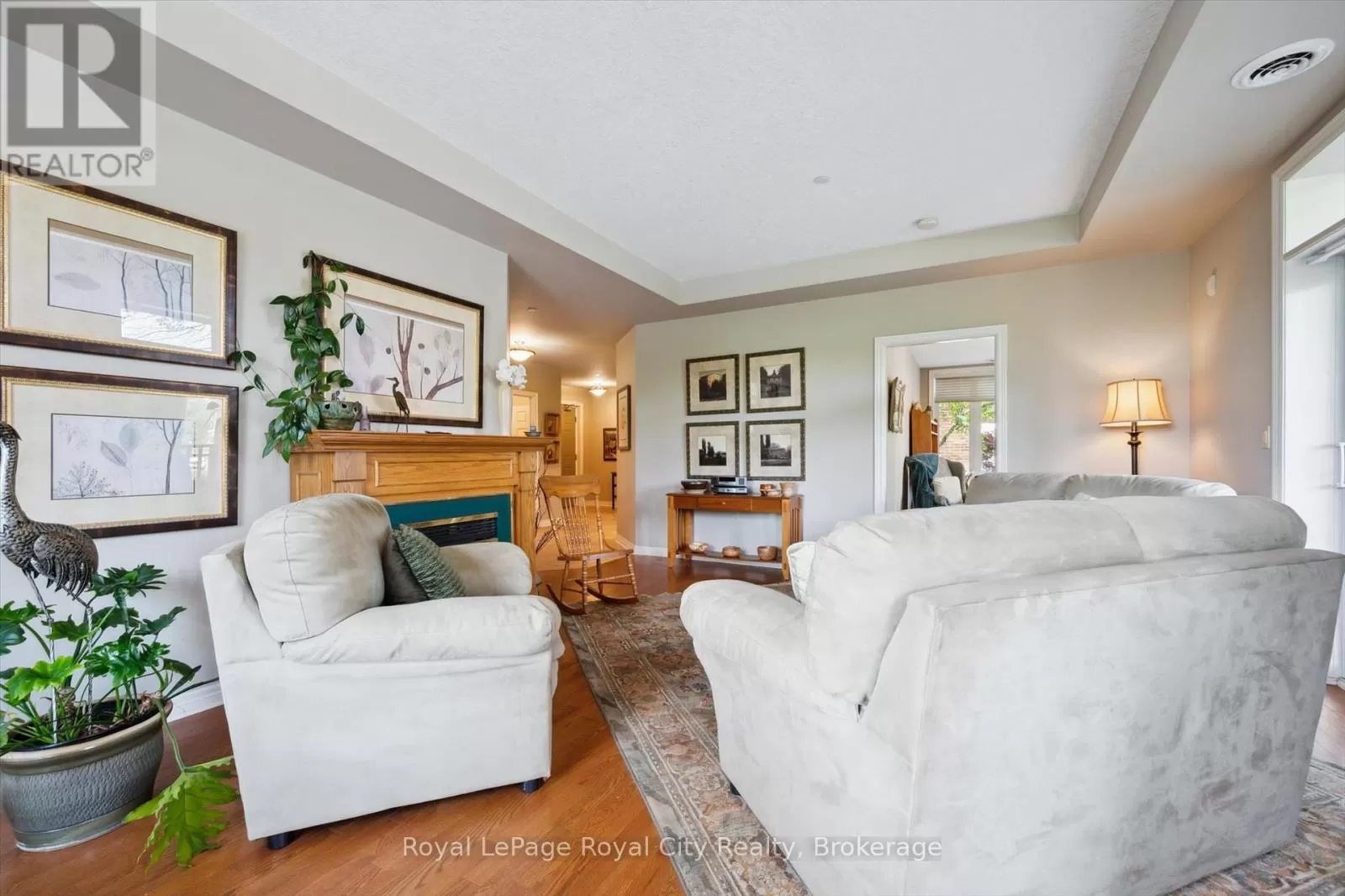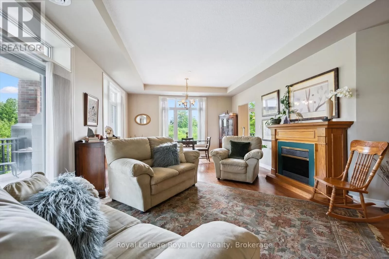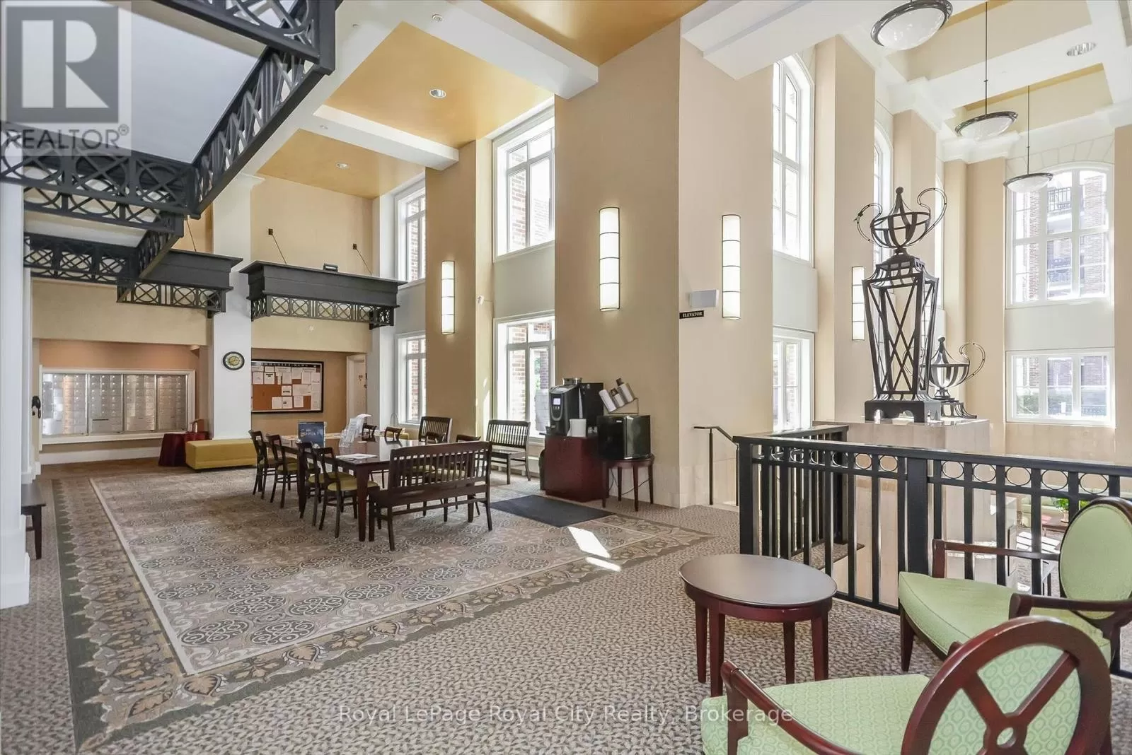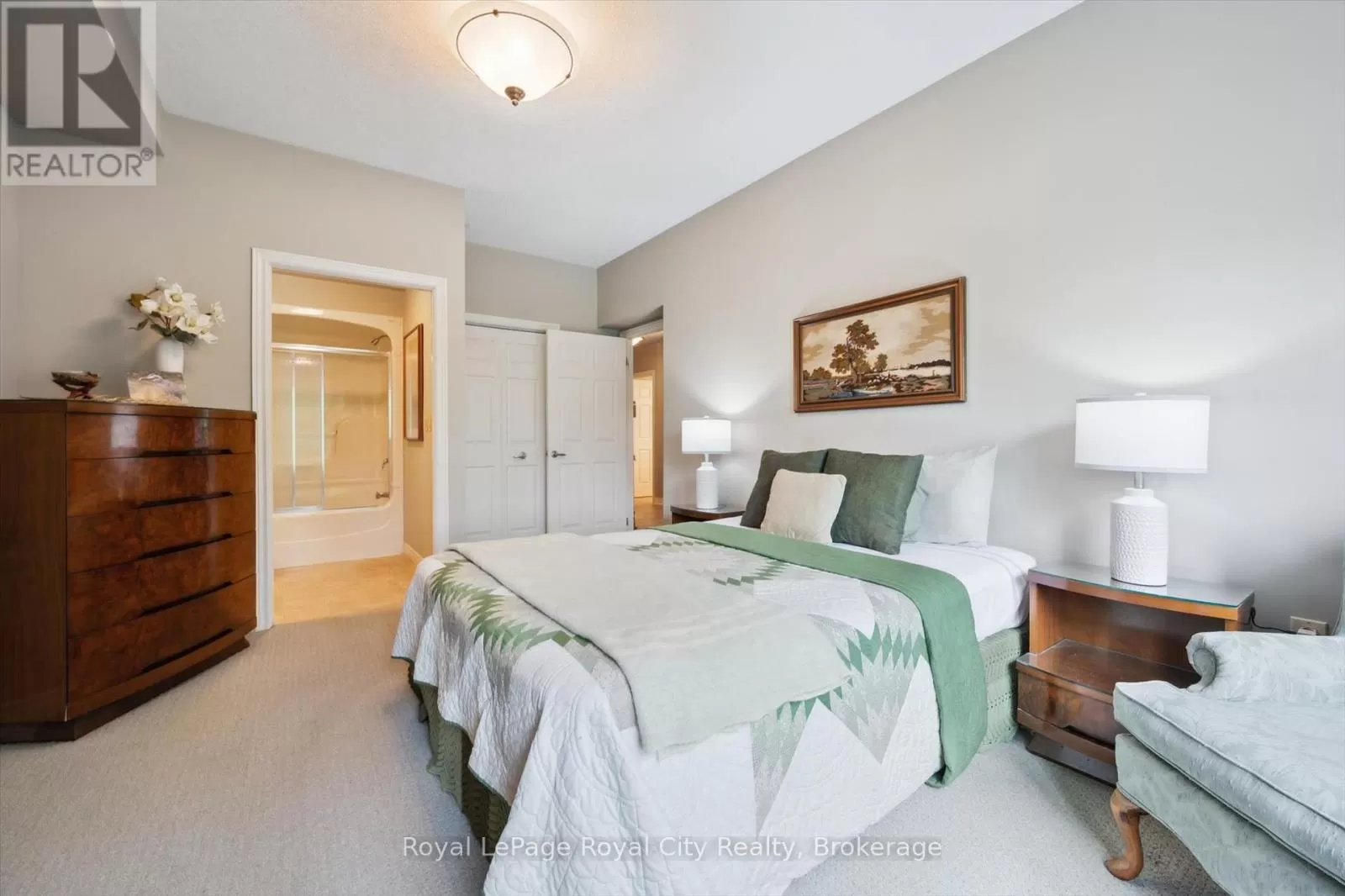 Cross Streets: Stone Rd. ** Directions: Stone Rd to Village By The Arboretum, enter on Village Green Dr then left onto Bayberry. Great opportunity to enjoy retirement living at The Village By The Arboretum in Guelph, Premier 55+ Adult Lifestyle Community. This bright corner unit is on the ground floor with 2 private balconies surrounded by trees with windows on three sides. For the environmentally conscious, you will appreciate the natural controls for cooling in the summer and protection in the winter. For easy access, the underground parking location is right beside the elevator, ride up and Unit 112, is steps away on the first floor. Inside, this unit of 1492 sq ft, features an open concept design, living and dining area surrounded by bright windows and patio doors opening onto one of the balconies. The second balcony faces east. Open this set of patio doors and enjoy your morning coffee from the breakfast area as the sun rises. The primary bedroom offers a ensuite 4 piece bath and a large walk in closet, with window views to the east. The second bedroom can be used as a TV room so you can watch the setting sun from the large bright windows. You'll also find a separate den with two entrances, in-suite laundry, and ample closet space throughout. Additionally, there is a conveniently located large exclusive locker for more storage. As a resident of The Village, you'll have full access to the 28,000+ sq ft Village Centre, a welcoming centre to meet your neighbours with many activities available; an indoor pool, sauna, hot tub, fitness rooms, tennis & pickleball courts, billiards, library, and over 100 resident-led clubs and classes. Besides planning for the future, living in this very special ground floor condo, being surrounded by trees and songbirds outside your door, creates a new lifestyle with new memories. (id:27476)