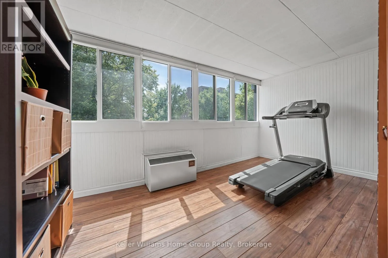 Cross Streets: Ajax St & Silvercreek Pkwy N. ** Directions: Exit North East from Hanlon Pkwy/Hwy 6 onto Silvercreek Pkwy. Enter Ajax St from Silvercreek Pkwy. Welcome to 204 - 9 Ajax St, your bright & spacious next chapter! This is a main floor unit, inviting to all & offers a sun-filled, all-season Sunroom with an combined A/C + Heating wall unit (2019) & large windows (2023) perfect for plant lovers, tea time, a games room, home office, workout space, or a combination of the above! Sliding dividers to the sunroom allow for privacy & flexibility. The spacious family room & dining room features tall windows (2022) that flood the space with natural light, creating an ideal setting for relaxing or entertaining. The walkthrough kitchen is practical & convenient, keeping everything accessible including a sizeable closet pantry for all of your pantry items & extra appliances. At the opposite end of the unit, two generous bedrooms offer a quiet and private sleeping area. A refreshed 4-piece bathroom (2024), large in-unit storage closet & a handy coat closet right at the door, round out this thoughtfully designed space. In addition, the building offers a community room available for use when hosting larger family events such as birthday parties. As one of Guelphs most affordable and welcoming neighbourhoods, this sweet condo is within walking distance to shopping, schools, public transit, local services, the Hanlon Parkway & Sleeman Park. 9 Ajax is a great place for families, first-time home buyers, and anyone looking for a supportive and inclusive environment to call home. Whether you're starting out or downsizing, this is the perfect place to call home. (id:27476)