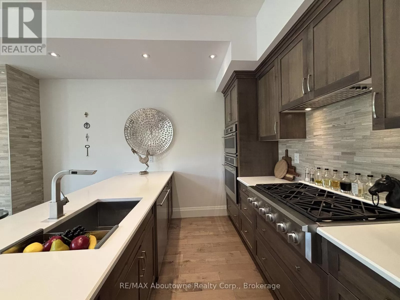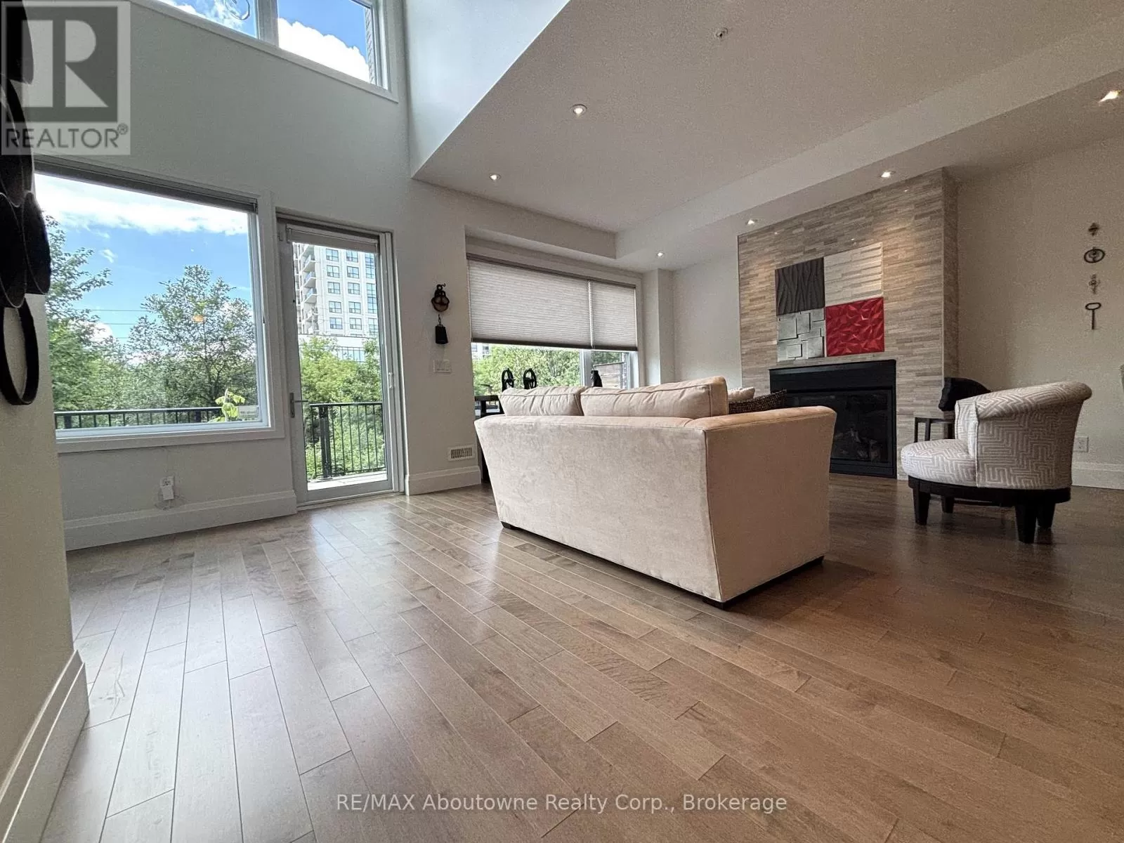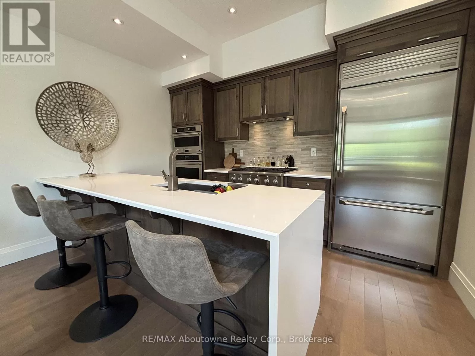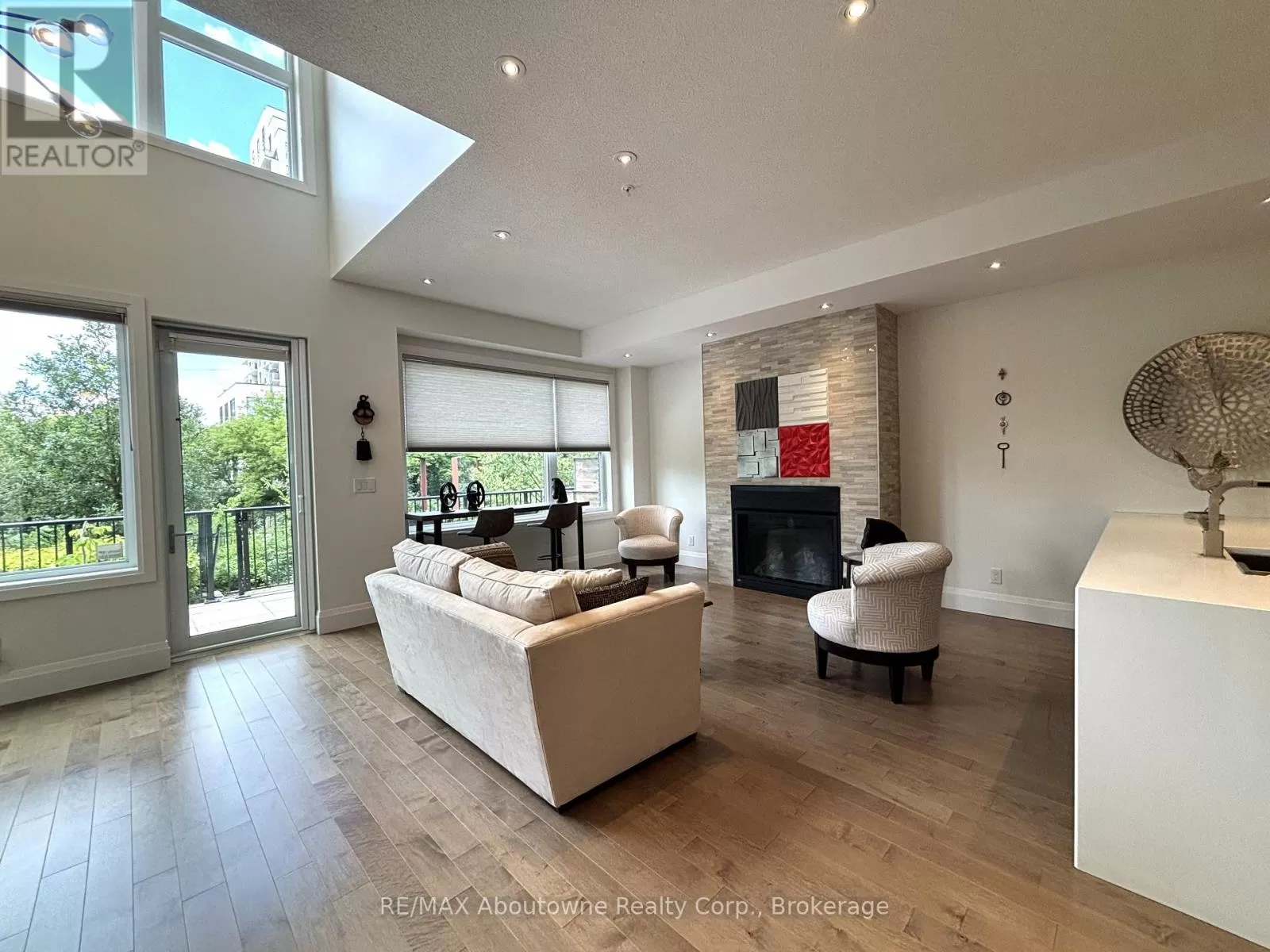 Cross Streets: Arthur St S and Elizabeth. ** Directions: Elizabeth St. to Arthur St. S. AMAZING RIVERFRONT URBAN TOWNHOME in the heart of downtown Guelph. ** 2,136 sq.ft.Townhome flooded with sunlight on all levels** 2 oversize bdrms PLUS den area ** Soaring Ceilings ** Massive windows treated with UV protection ** Hardwood on all levels ** Gourmet kitchen with high end built-in appliances and huge pantry ** Great Room with floor to ceiling fireplace, wired for TV installation ** Walkout to 26 Ft Terrace on the River, ready for your BBQ and friends ** PLUS Top Floor balcony with amazing River Views ** Master Bdrm with luxurious 5 piece ensuite and 2 walk-in closets** Second Bdrm also with walk-in closet ** In-suite storage room AND separate heated common area locker ** 2 side by side parking on the main level garage area, just steps to your unit ** Condo Fees include Water, Gas and use of extensive facilities including gym, party room, library and more ** Enjoy a walk along the River Walk connecting to extensive trail system ** Steps to GO train, the downtown dining experience and Royal City Park ** It Cant Get Any Better Than This!! One Seller is RRESP. (id:27476)