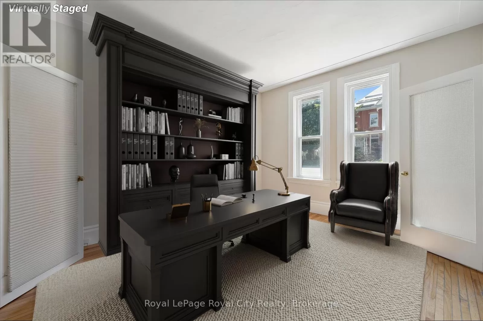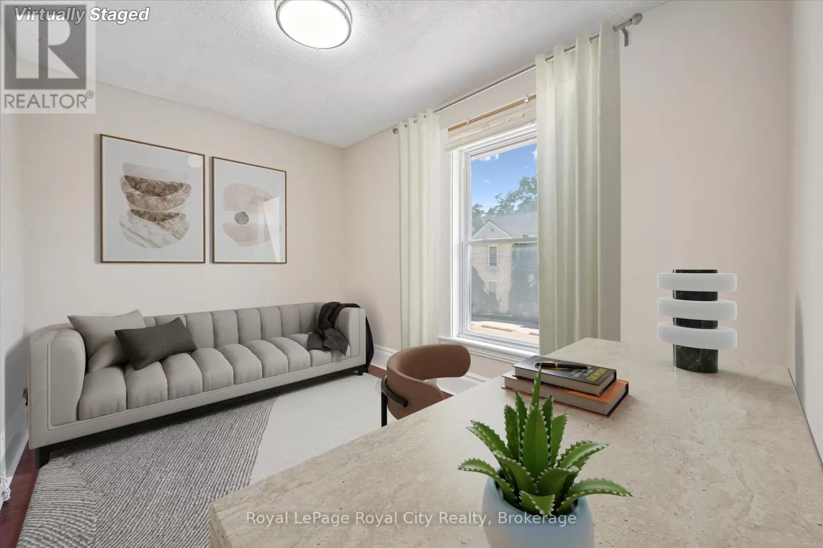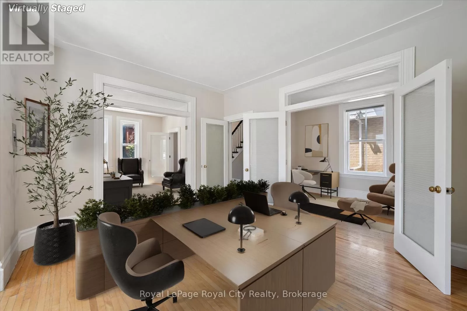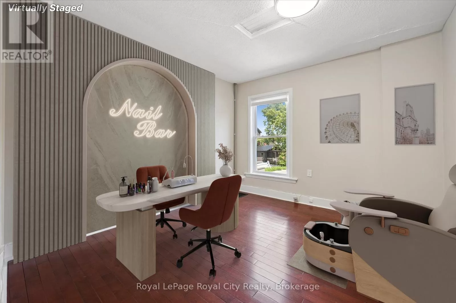 Between Kerr St. and London Rd. E. An exceptional investment opportunity awaits with this well-maintained yellow brick, 2-storey commercial building, ideally located in a high-traffic area just minutes from downtown Guelph. Boasting excellent visual exposure and versatile C2 zoning, this property supports a wide variety of potential uses- perfect for business owners, entrepreneurs, or investors looking to diversify their portfolio. The interior features a practical and adaptable layout with hardwood flooring throughout, large windows that invite natural light, and updated electrical. A durable steel roof offers long-term peace of mind, while two separate entrances and parking for up to seven vehicles enhance accessibility and convenience. For those seeking a live-work option, there is also potential to convert the building into a stylish residential home with a separate entrance for office or studio use. Why rent when you can own your own space and build equity in a property that blends character, function, and an unbeatable location? (id:27476)