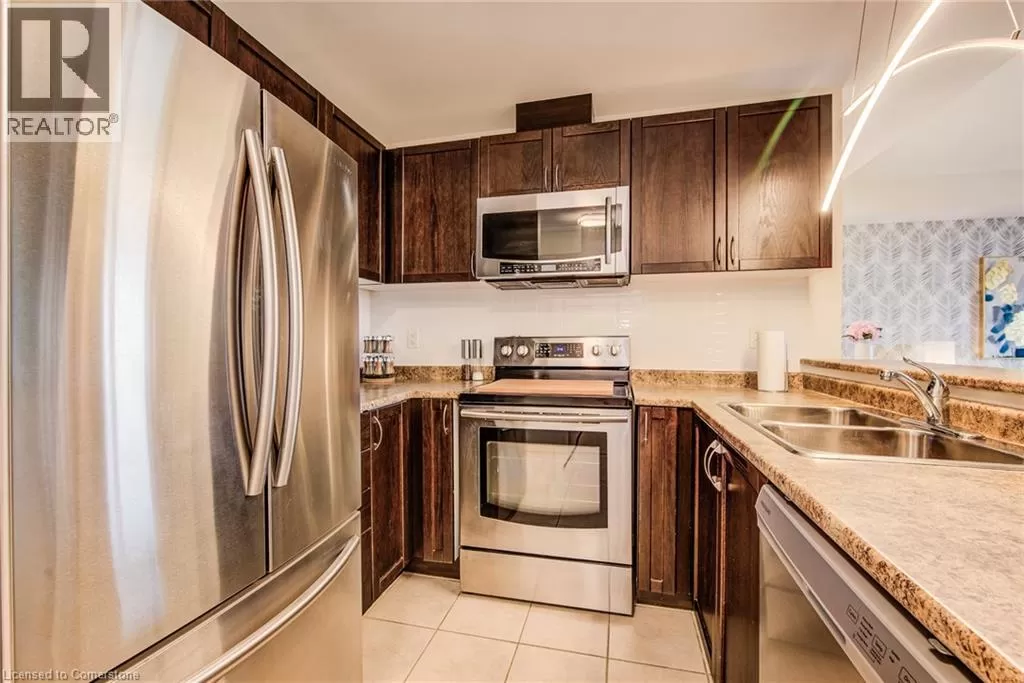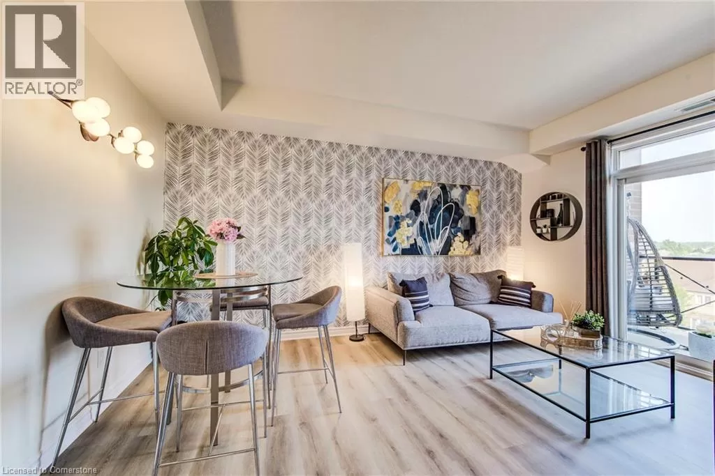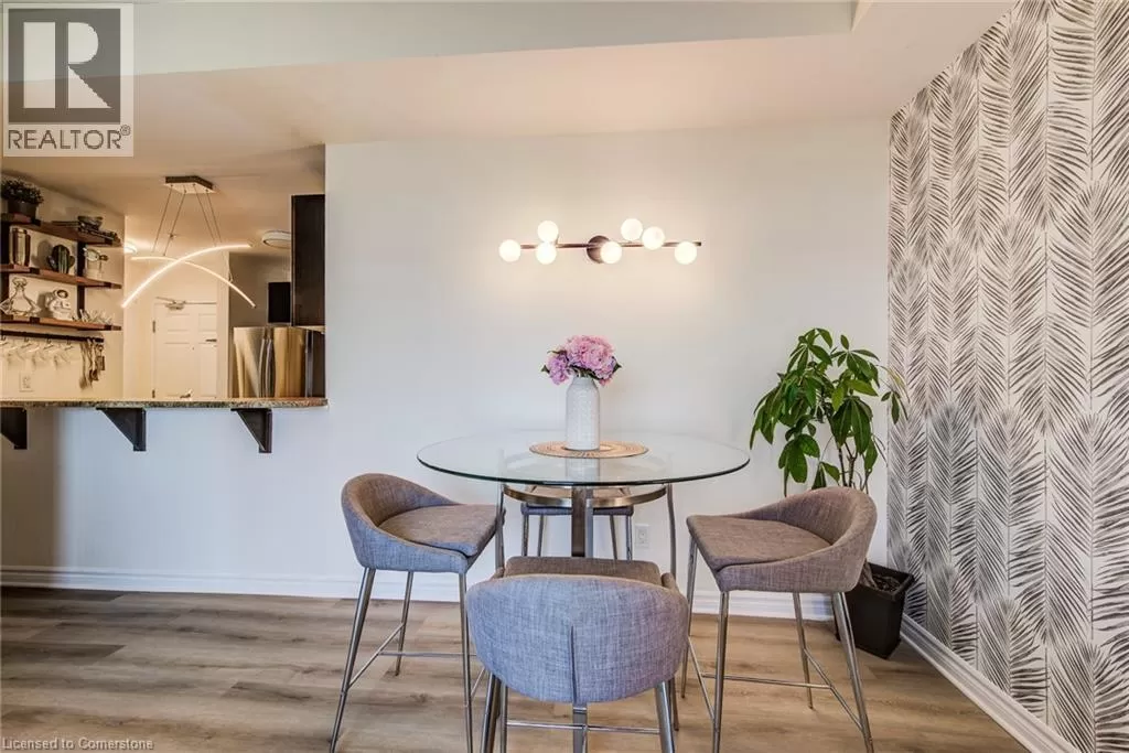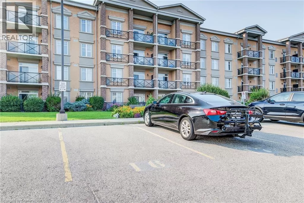 Victoria Rd S to Arkell Rd to Colonial Drive $4000 Marketing Incentive credit to Buyer at Closing. TWO Parking spots and a locker. Welcome to this beautifully updated 2-bedroom condominium offering style, comfort, and convenience. Top floor. Bright and tastefully decorated throughout, this move-in-ready unit features fresh paint, upgraded lighting, and new luxury vinyl plank flooring that adds a modern touch. The open-concept living and dining area is filled with natural light, while the custom accent wall in the primary bedroom adds a touch of designer flair. Step out onto a balcony straight from the pages of Homes & Gardens â a beautifully designed outdoor retreat perfect for quiet morning coffees or unwinding with a glass of wine at sunset. Enjoy fantastic building amenities including a well-equipped fitness room, an inviting event/party room, and plenty of visitor parking for your guests. Conveniently located close to shopping, transit, and everyday essentialsâthis is condo living at its best! (id:27476)