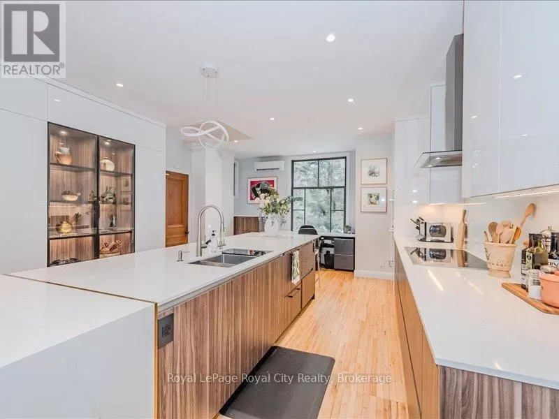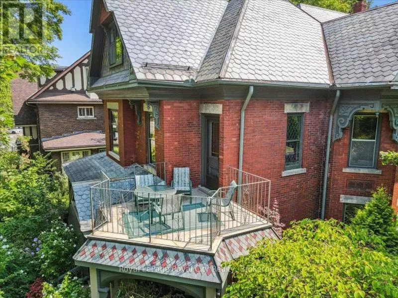 Cross Streets: Just West of London & Woolwich. ** Directions: London Rd across from Exhibition Park at corner of Park Ave. Experience the best of both worlds in this exquisite Heritage Victorian, where historic charm meets modern family life. Located just steps from Exhibition Park, a Guelph landmark with playgrounds, tennis courts, sports field and gorgeous landscaping. A quick walk to downtown Guelph's vibrant core, this home is designed for today's active family.The main living space is a showcase of classic style and contemporary comfort, with soaring 9-foot ceilings and custom Burled Oak woodwork. The chef-inspired Paragon kitchen, equipped with high-end Fisher & Paykel and Miele appliances, is perfect for everything from daily meals to large family gatherings. Recent updates have meticulously preserved the home's character while enhancing its livability.This expansive residence offers incredible versatility with 7 bedrooms and 7 bathrooms. The upper level features a beautifully appointed legal three-bedroom apartment, ideal retreat for an au pair, private space for a teenager, or a suite for visiting relatives. A separate legal one-bedroom suite on the lower level is perfect for in-laws or a tenant, providing comfort and privacy for multi-generational living. Fully equipped with 9 mini-split heat pumps, as well as radiant heating, to keep everyone comfortable year round.Outside, the unique patterned slate roof and charming wrap-around porch add to the home's curb appeal. The peaceful backyard oasis, featuring a fish pond, covered pergola and a lovely perennial garden that blooms in all seasons, is truly a private retreat for family and friends. A detached double garage provides excellent parking and storage solutions. So many living options with this legal triplex, don't miss this one-of-a-kind home built for family life. (id:27476)