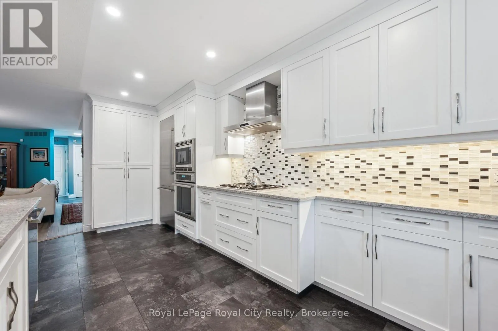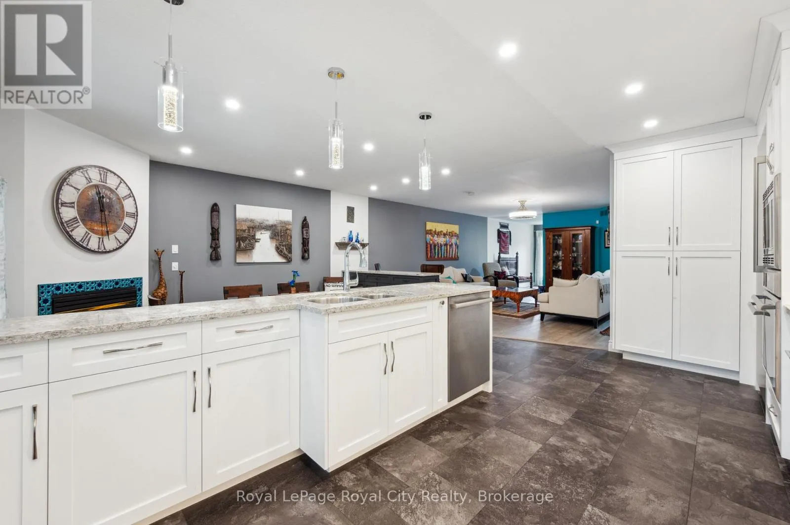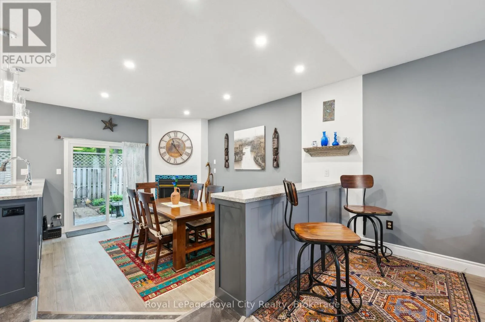 Cross Streets: WOOLWICH STREET AND MARILYN DRIVE. ** Directions: WOOLWICH STREET, TURN EAST ON MARILYN DRIVE. Welcome to 21 Marilyn Drive, a stunning townhome nestled in the highly sought-after Riverside Park area! This exquisite property offers a luxurious and comfortable living experience, boasting 3 spacious bedrooms and 4 modern bathrooms. The heart of this home is its open-concept main floor plan, perfect for entertaining and everyday living. Prepare to be wowed by the spacious, custom kitchen by Jacob's Woodworking, featuring top-of-the-line Thermador kitchen appliances. Cozy up by one of the two gas fireplaces on a chilly evening. Walk out through sliders from the dining area to a lovingly landscaped rear garden offering privacy and tranquility. Three skylights flood the upstairs space with natural light, creating a bright and inviting atmosphere. Three spacious bedrooms, 3-piece main bathroom, Primary has a 4-piece ensuite bathroom, walk in closet and a private and treed view overlooking Riverside Park. Enter the finished basement, which has just been freshly painted! where you'll find a cozy media room with various lounge areas, a well-appointed laundry room, an additional 2-piece powder room, and a versatile workspace area, offering ample room for all your needs. The convenience of an attached garage adds to the home's appeal. One of the most remarkable features of this property is its prime location, backing directly onto Riverside Park, offering unparalleled access to nature and outdoor activities. Despite its tranquil setting, you're still just moments away from major shopping centers, providing the perfect blend of serenity and convenience. Low condo fees include all exterior maintenance (roof, windows, doors), snow removal, grass cutting and wooden deck in rear garden. (id:27476)