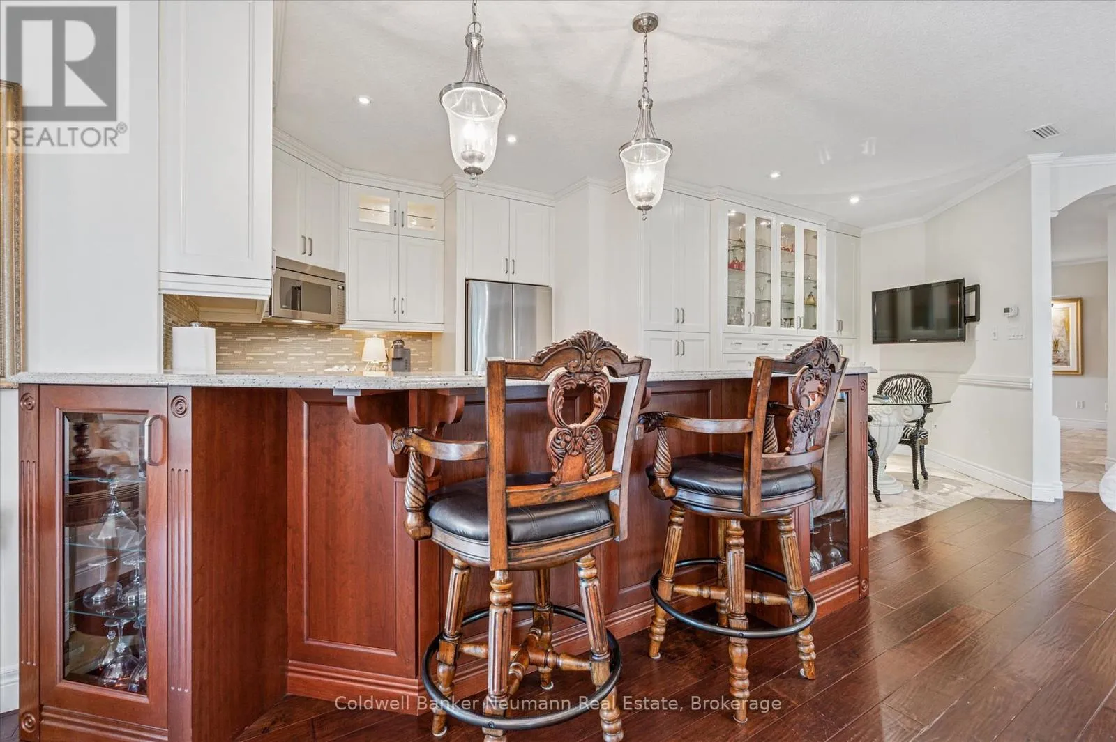 Cross Streets: Victoria Rd South. ** Directions: Victoria and Summerfield. Welcome to 20-255 Summerfield Drive. An executive townhome in the heart of South Guelph, this residence offers a rare blend of luxury, convenience, and thoughtful design. Coming to market for the first time since it was custom-built by Thomasfield Homes, this home is one-of-a-kind, complete with its own private elevator. From the moment you step inside, a spacious foyer sets the tone for what's to come, inviting you up the elevator or staircase into 2,745 sq. ft. of refined living space. The open-concept main level features a chef's kitchen and bright living area finished with rich hardwood and tile. The living room's fireplace creates a warm focal point, while patio doors lead to a covered deck shared with the primary suite. The primary retreat is a true highlight with its large walk-in closet and spa-inspired 5-piece ensuite. A formal dining room with a wet bar makes entertaining effortless, while a second bedroom, full bathroom, den/office, laundry, and plenty of storage round out the main level. Take the elevator down to the fully finished lower level, where guests can enjoy their own private retreat. This space includes a third bedroom, full bathroom, rec room, cold cellar, and direct garage access ideal for visitors or extended family. With property management handling all exterior maintenance, you're free to enjoy everything this highly sought-after community has to offer. This is more than a home, it's a lifestyle of comfort, accessibility, and ease. (id:27476)