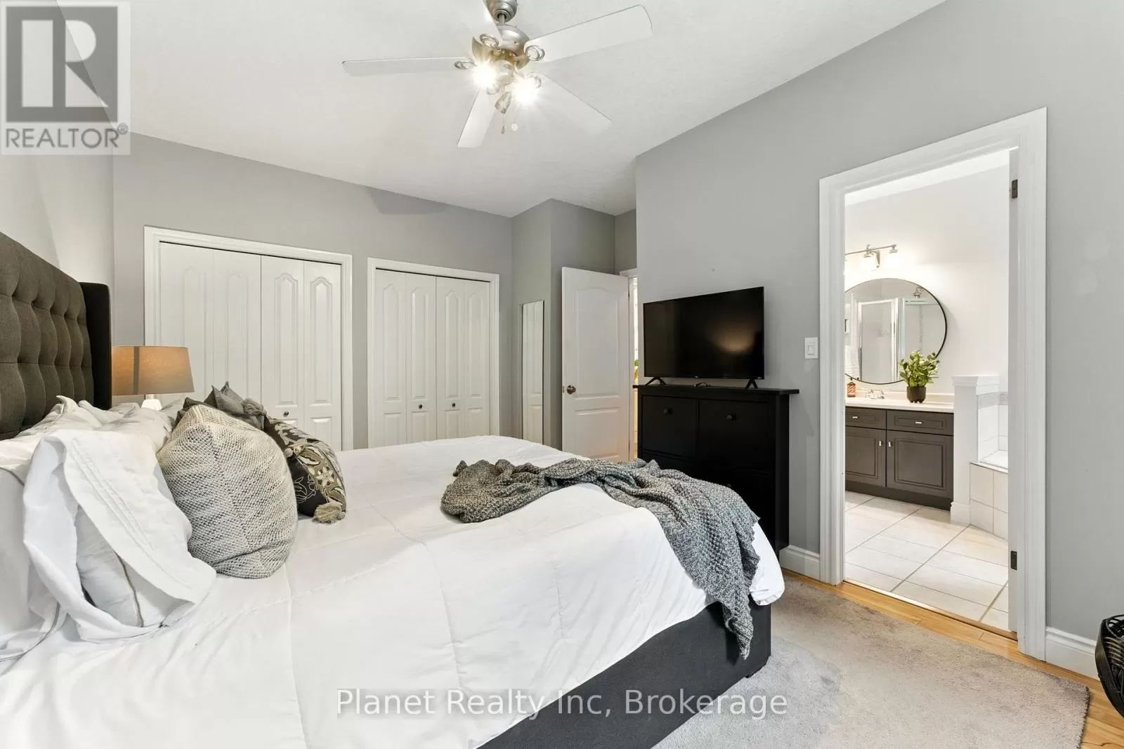 Cross Streets: Edinburgh Rd. @ Carrington. ** Directions: Edinburgh to Carrington to Truesdale. Welcome to beautiful 63 Truesdale, a phenomenal modern bungaloft in one of Guelph's premier family neighbourhoods. Set upon a lovely, wide lot; there is so much to appreciate about this home from the moment you first arrive. You're greeted inside by an open foyer with soaring ceilings, inviting you further into a main level that's adorned with hardwood & ceramic flooring throughout its charming living spaces. A main floor master bedroom offers his & hers closets, alongside a 4 piece ensuite bath with a separate shower, tub & double vanity. Upstairs, your multi-functional loft is a great home office, or living space for kids & company alike. With 2 additional bedrooms upstairs, sharing their own full bathroom, this home offers an abundance of space to host, or use to meet the need for space that comes with a growing family. Downstairs, a newly refinished basement features a bright & welcoming rec room, with another bedroom and full bathroom! Out back, this private rear yard is a serene getaway, with an outstanding deck and hot tub- with just enough grass to give you options, without tying up your Sunday afternoons. If there are kids in the picture, then you already know this home sits among the best school districts in the city. And with tons of high-value updates this year, including new windows, window coverings, range & microwave; plus a host of other modern mechanicals, this turnkey home is the perfect spot to drop your furniture and get straight to living. (id:27476)