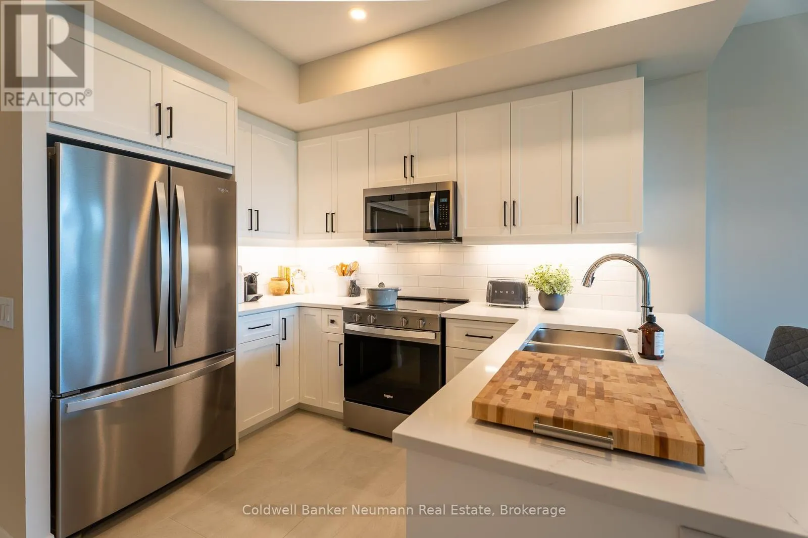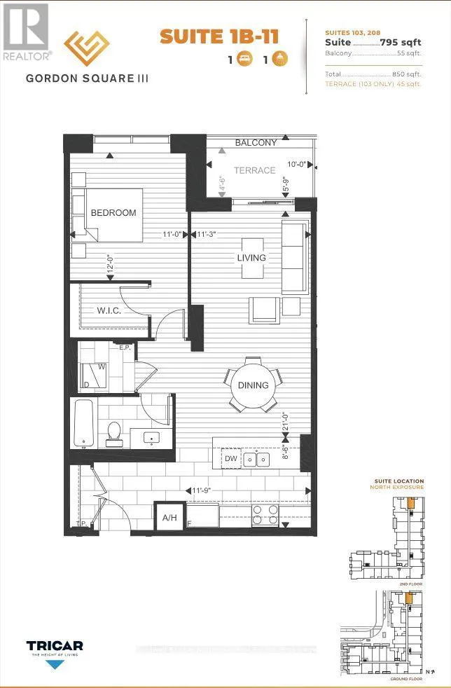 Gordon and Gosling Grdns Welcome to this brand-new 1-bedroom, 1-bathroom condo offering 795 sq ft of stylish, well-planned living space. Located in Tricar's newest building, Gordon Square 3, in the heart of Guelph's desirable south end, this suite blends comfort, function, and luxury. The bright, open-concept living and dining area is perfect for both relaxing and entertaining, with a 55 sq ft terrace right off the living room, ideal for morning coffee or evening unwinding. The modern kitchen is equipped with premium finishes and stainless steel appliances, while the spacious primary bedroom provides a comfortable retreat. Enjoy the convenience of a dedicated side-by-side laundry room and the beauty of east-facing views that fill the space with morning light. Residents have access to first-class amenities including a fitness centre, golf simulator, residents' lounge, and secure underground parking. Move in this Fall! (id:27476)