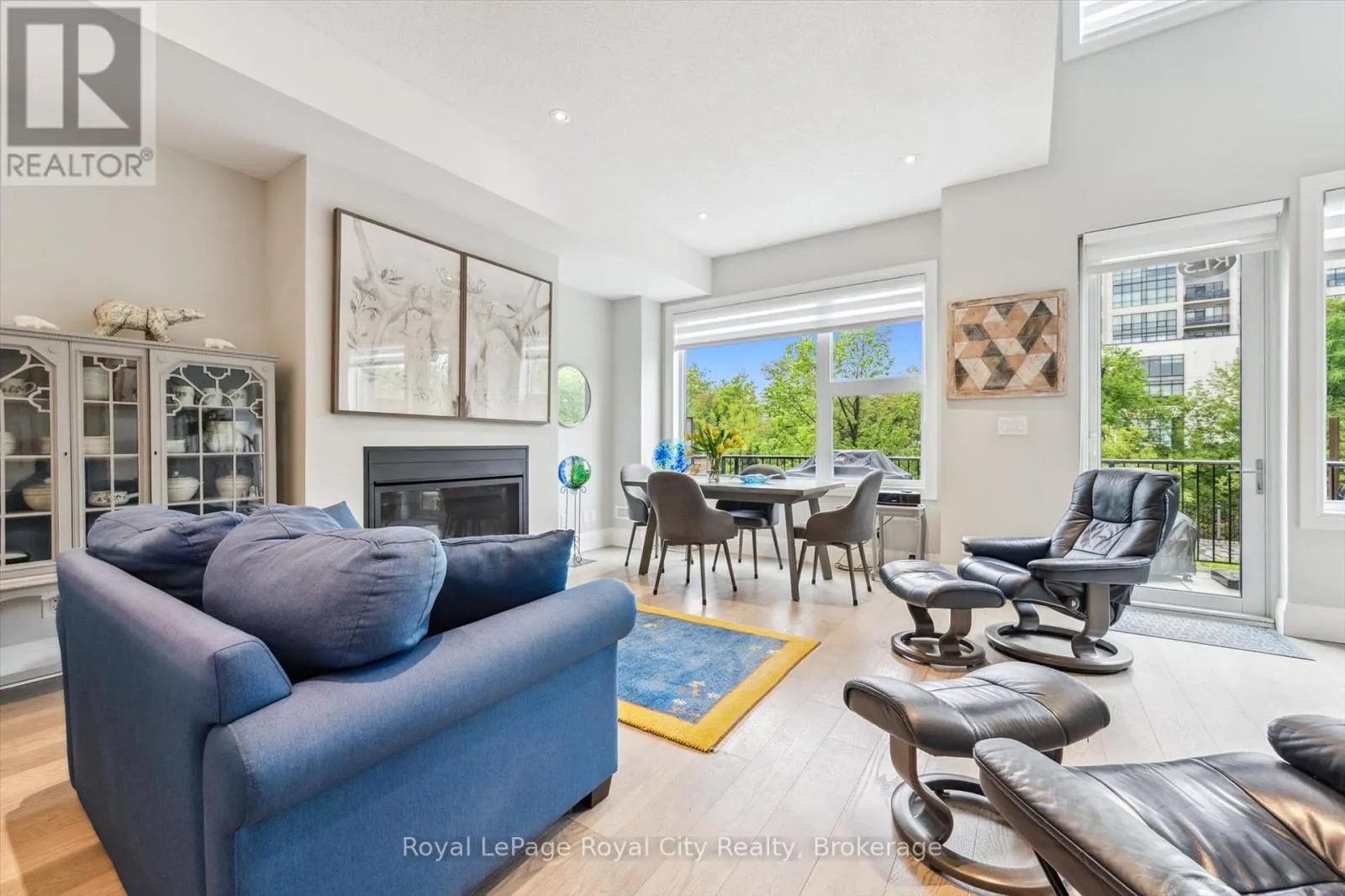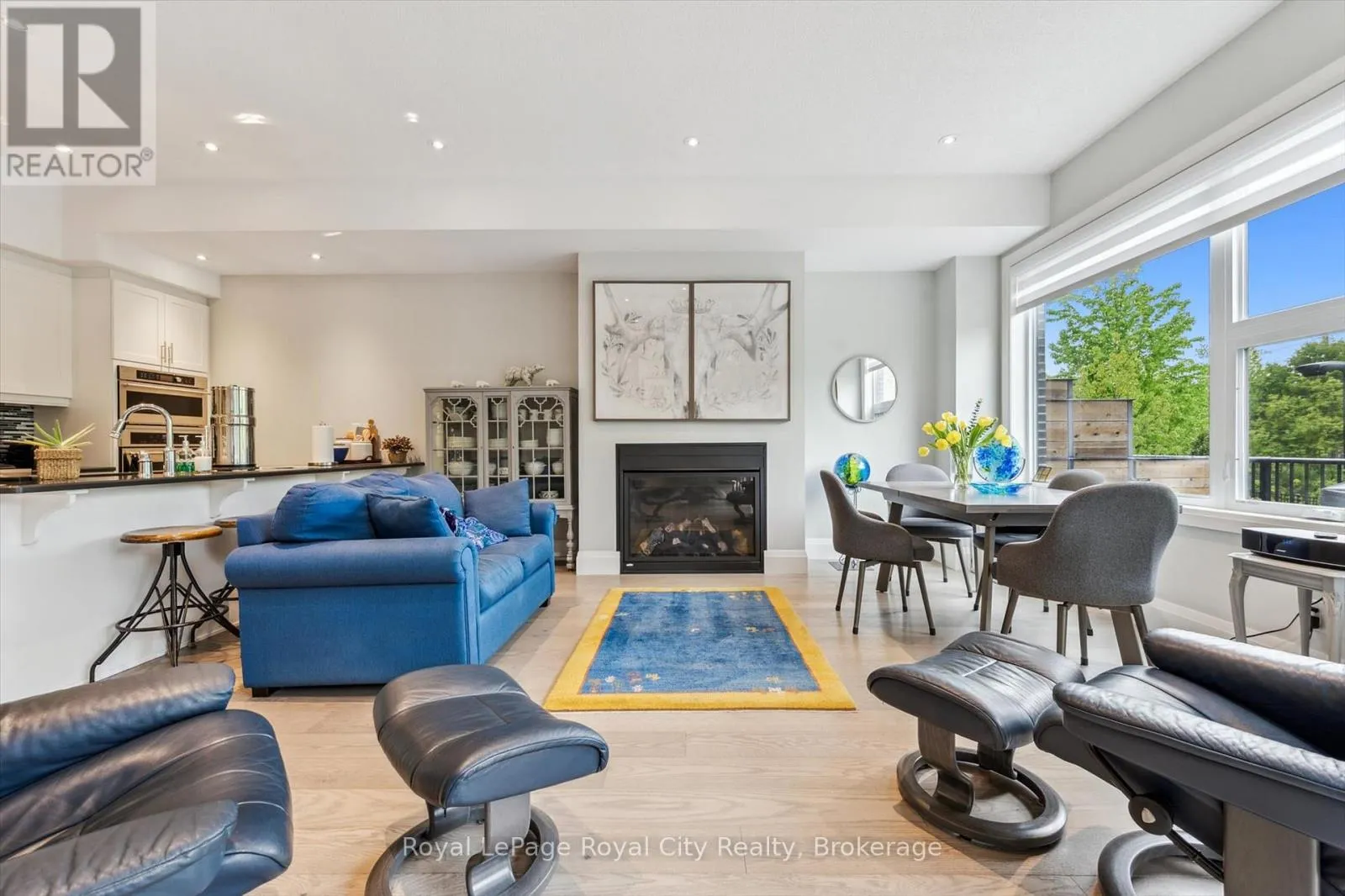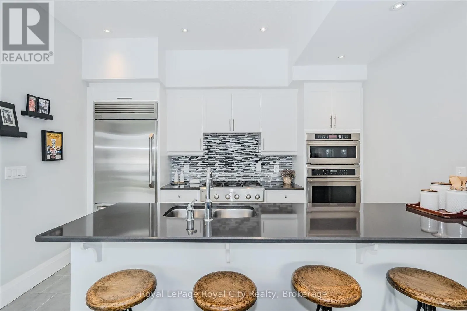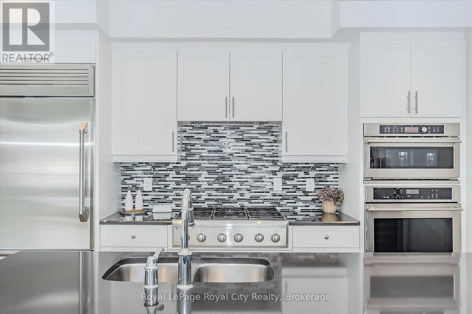 Cross Streets: Arthur X Elizabeth. ** Directions: See agent notes. A Rare Opportunity for Riverfront Luxury Living! Experience one of downtown Guelph's most coveted addresses with this exceptional riverfront townhome - where sophistication, comfort, and convenience converge. Flooded with natural light, this bright and spacious residence boasts an open-concept main floor with soaring ceilings, a striking gas fireplace, and a chef's kitchen designed to impress - featuring high-end stainless steel appliances, a 6-burner gas range, wine fridge, and expansive prep space. Entertain with ease or unwind on your private patio or upper balcony, each offering uninterrupted views of the river and lush green space - maintenance-free living at its finest.The second level features a spacious bedroom with a walk-in closet, a full bath with a relaxing soaker tub, a versatile lounge area, and generous storage. The primary suite spans the entire third floor, complete with two walk-in closets, a private balcony, and a spa-inspired ensuite showcasing double sinks, an oversized jacuzzi tub, a stand-alone shower, and a private water closet. Additional features include full-size laundry, TWO premium side-by-side indoor parking spaces, a storage locker, custom window coverings, and a Weber BBQ with side burner - all included for your convenience. Set within the acclaimed Metalworks community, you'll have exclusive access to an array of upscale amenities, while being just steps to Spring Mill Distillery, Sugo Mercado, and picturesque riverside trails.This is more than a home - its a lifestyle of luxury and ease on the waters edge. Opportunities like this are exceptionally rare. Don't miss your chance to make it yours. (id:27476)