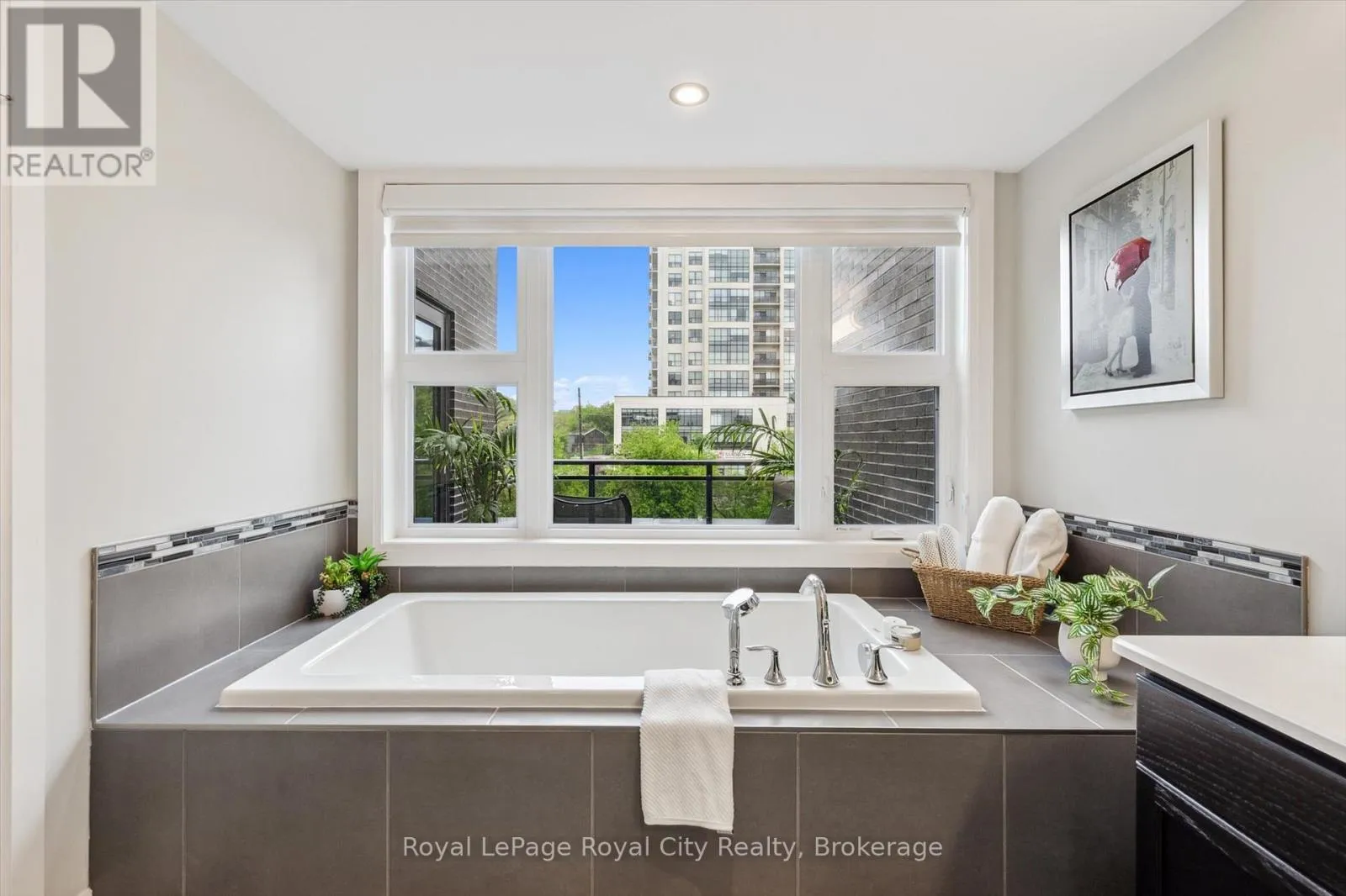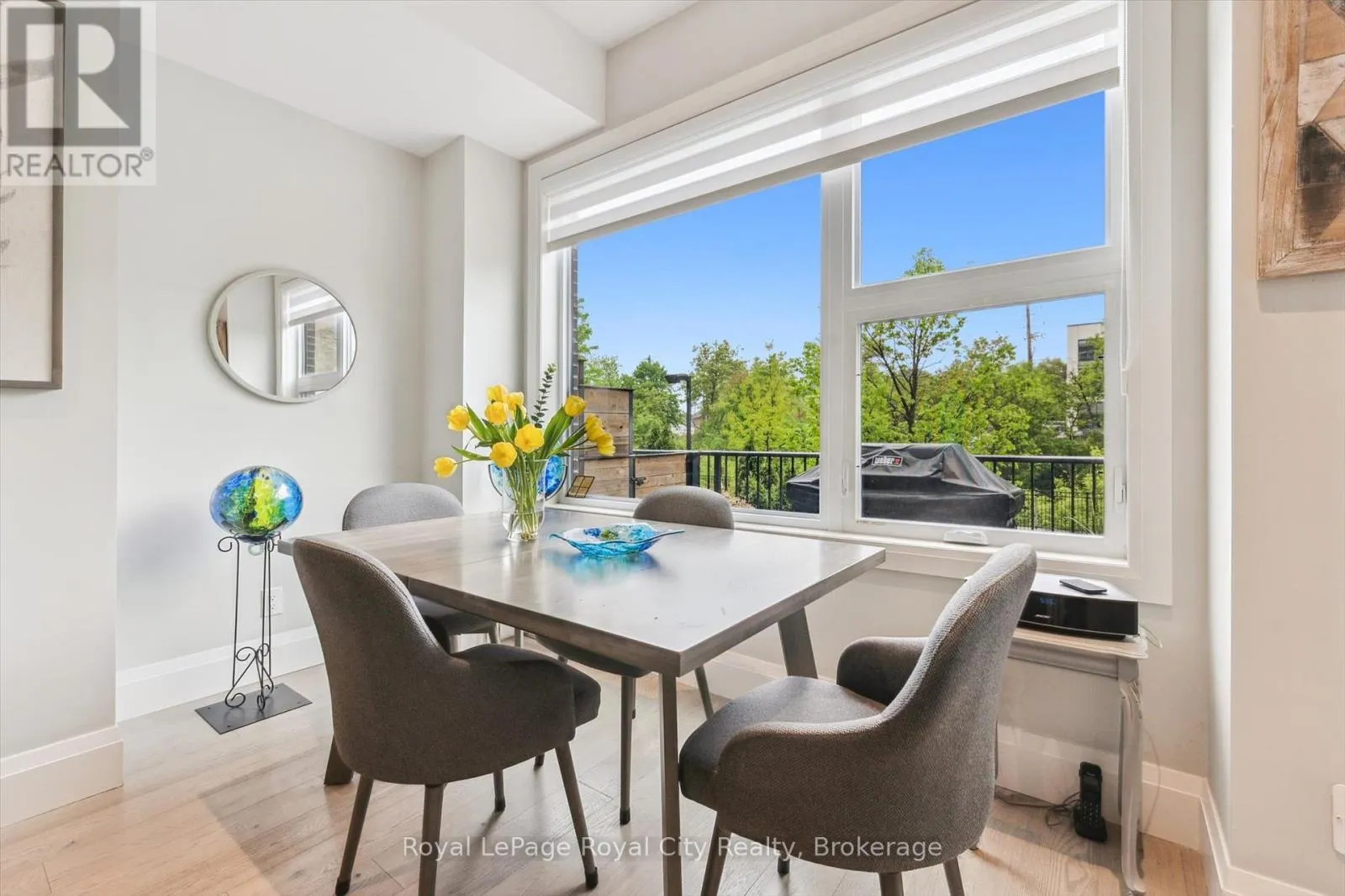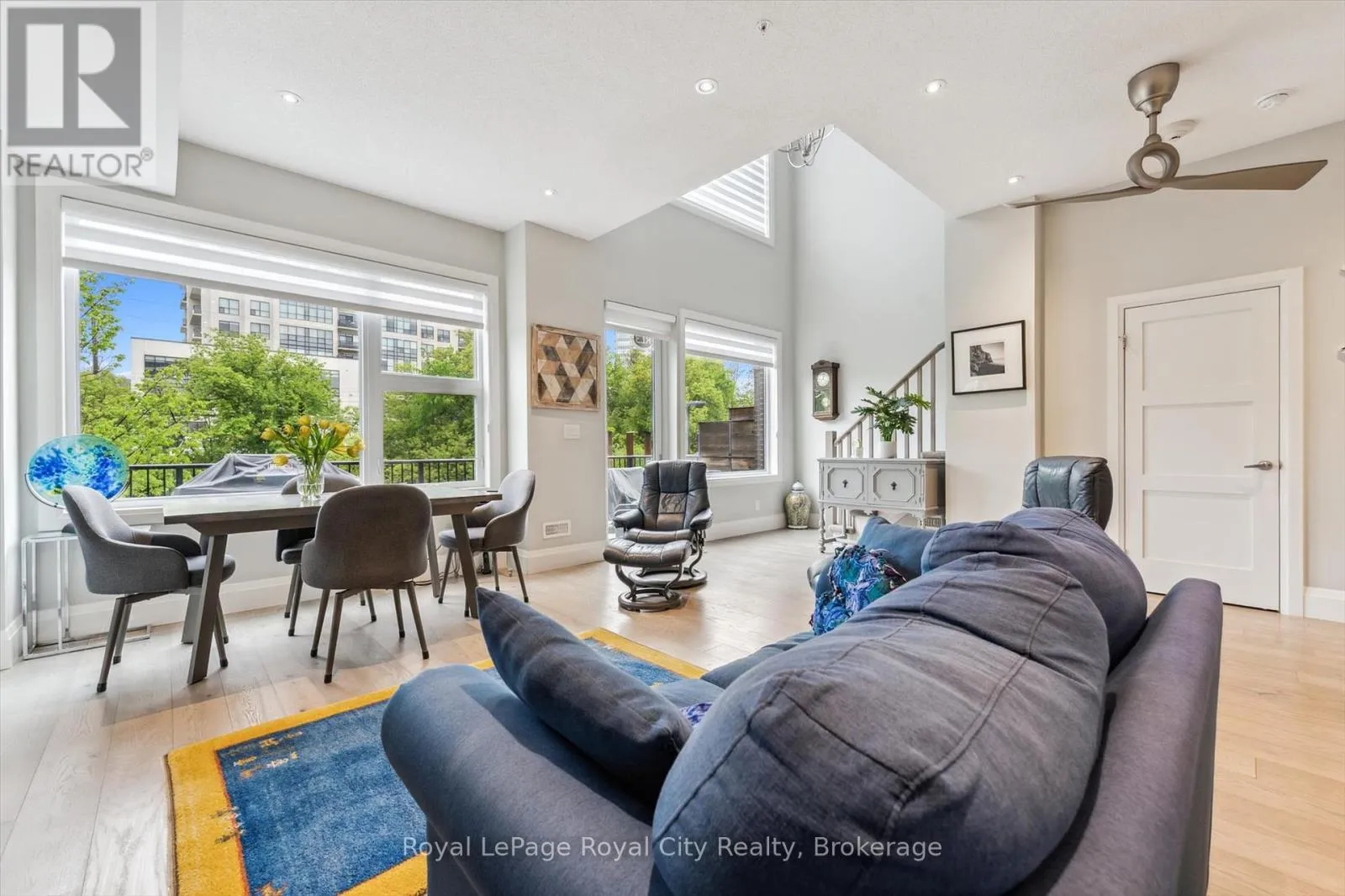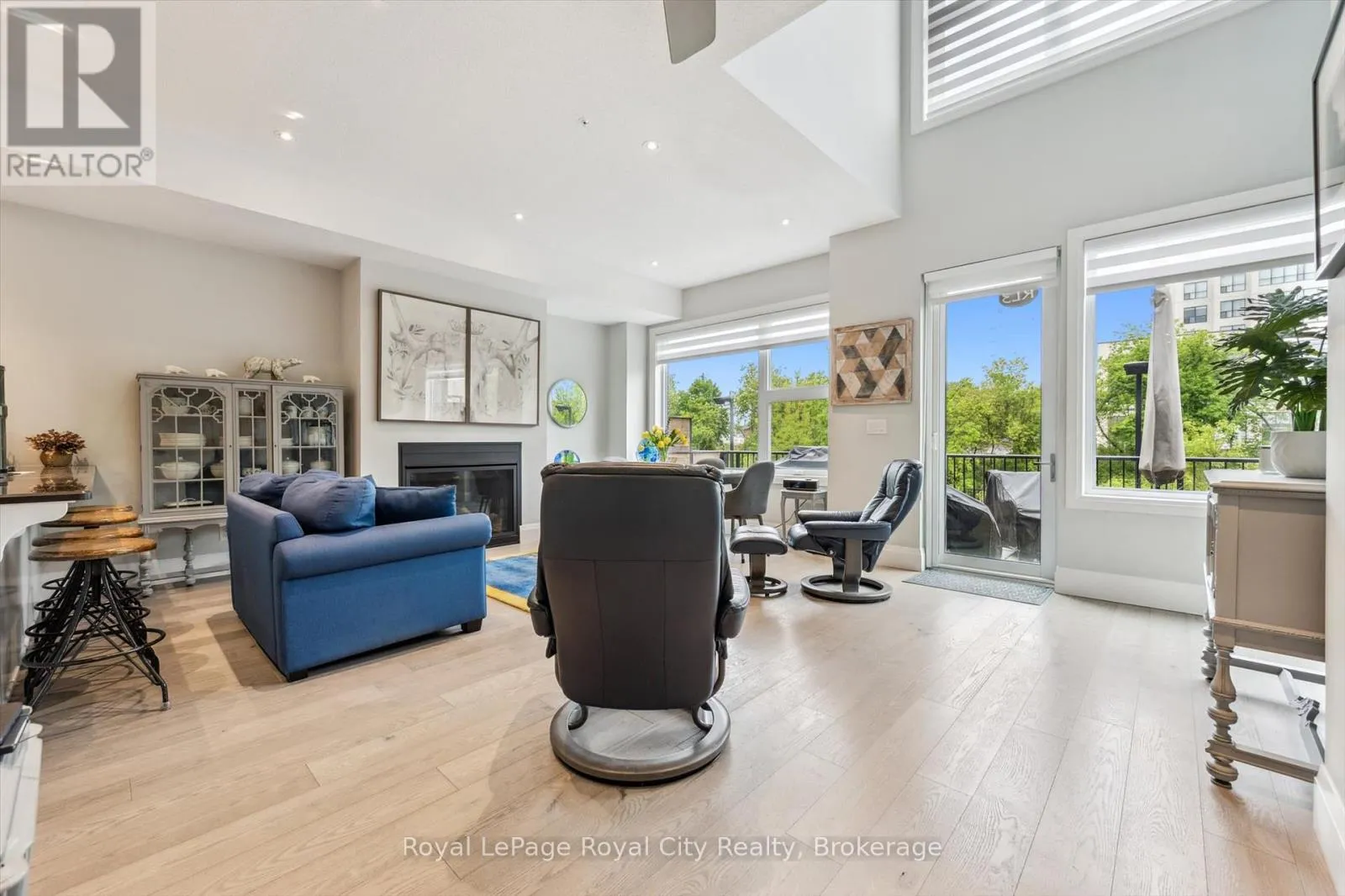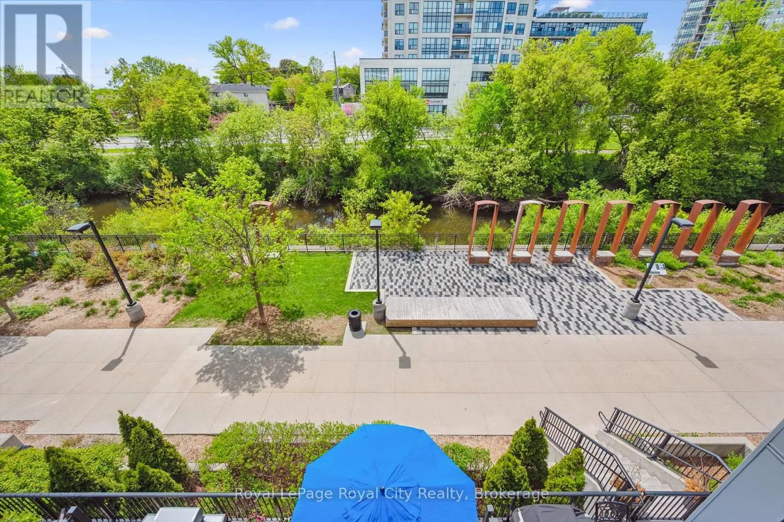 Cross Streets: Arthur X Elizabeth. ** Directions: See agent notes. A Rare Opportunity for Riverfront Luxury Living! Experience one of downtown Guelph's most coveted addresses with this exceptional riverfront townhome - where sophistication, comfort, and convenience converge. Flooded with natural light, this bright and spacious residence boasts an open-concept main floor with soaring ceilings, a striking gas fireplace, and a chef's kitchen designed to impress - featuring high-end stainless steel appliances, a 6-burner gas range, wine fridge, and expansive prep space. Entertain with ease or unwind on your private patio or upper balcony, each offering uninterrupted views of the river and lush green space - maintenance-free living at its finest.The second level features a spacious bedroom with a walk-in closet, a full bath with a relaxing soaker tub, a versatile lounge area, and generous storage. The primary suite spans the entire third floor, complete with two walk-in closets, a private balcony, and a spa-inspired ensuite showcasing double sinks, an oversized jacuzzi tub, a stand-alone shower, and a private water closet. Additional features include full-size laundry, TWO premium side-by-side indoor parking spaces, a storage locker, custom window coverings, and a Weber BBQ with side burner - all included for your convenience. Set within the acclaimed Metalworks community, you'll have exclusive access to an array of upscale amenities, while being just steps to Spring Mill Distillery, Sugo Mercado, and picturesque riverside trails.This is more than a home - its a lifestyle of luxury and ease on the waters edge. Opportunities like this are exceptionally rare. Don't miss your chance to make it yours. (id:27476)