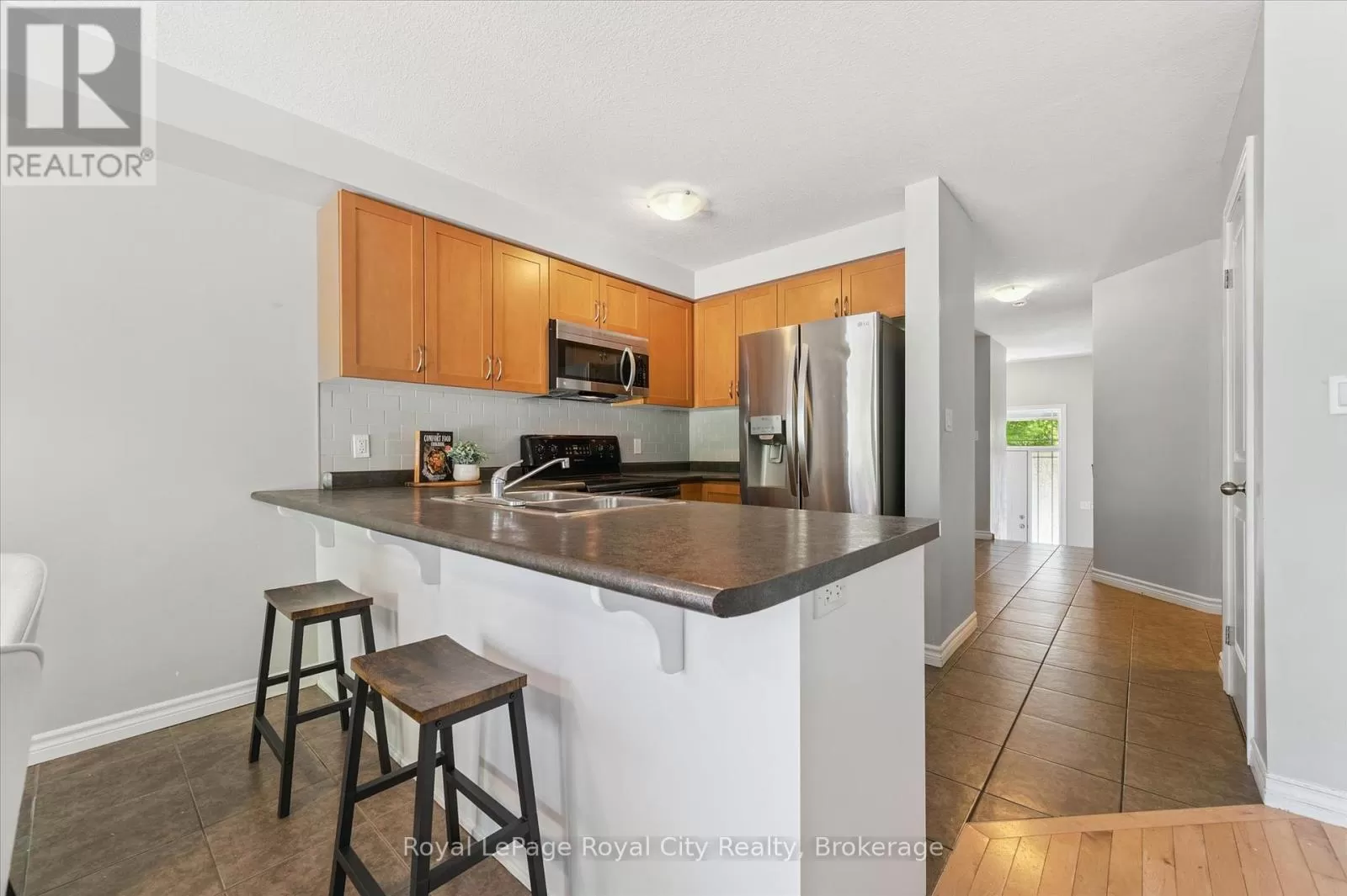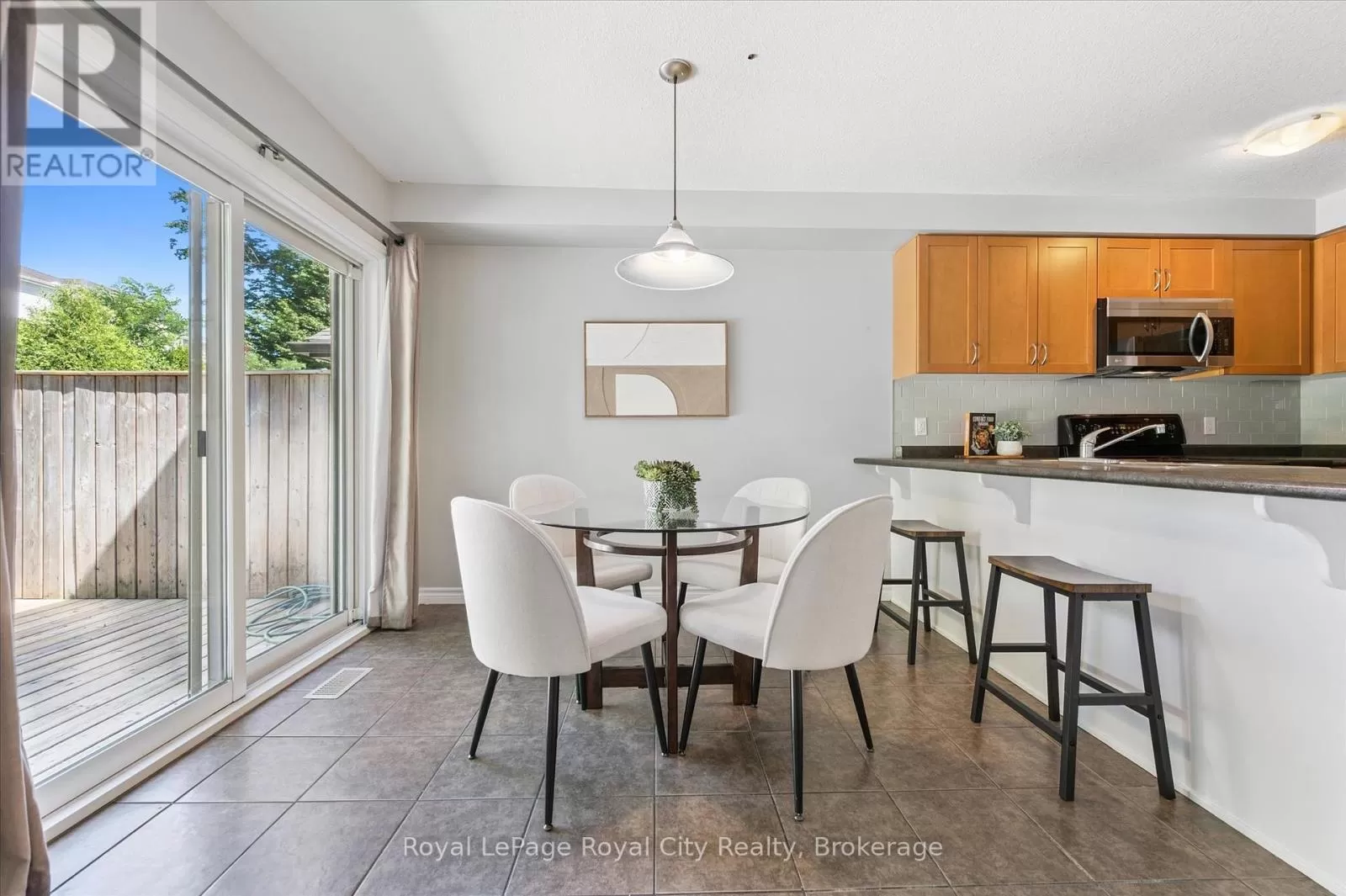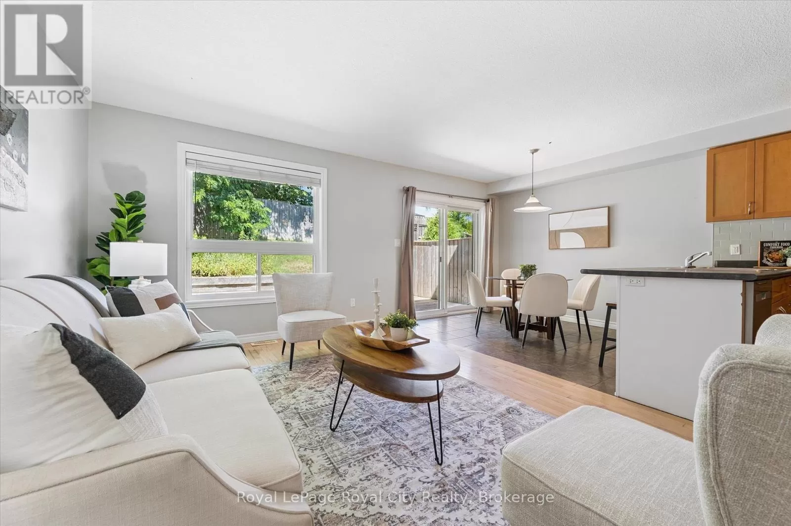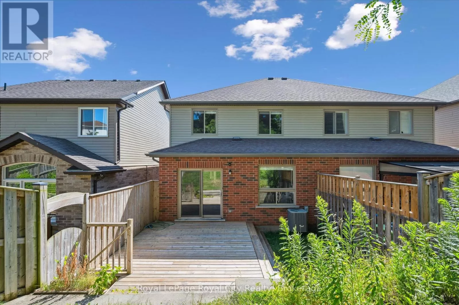 Cross Streets: Grange Rd. ** Directions: Grange to Kemp. Move-In Ready Semi in Guelphs East End! This 3-bedroom, 4-bathroom home offers over 2,000 sq ft of finished living space, including a fully finished basement - perfect for families or those looking for extra room to spread out. The curb appeal is on point with a classic brick and vinyl exterior and a charming covered front entry. Step inside to a bright foyer with a double coat closet and flow into the open-concept main floor, ideal for both entertaining and day-to-day life. The kitchen features stainless steel appliances, a stylish backsplash, and a peninsula with breakfast bar seating. A spacious dining area opens to the rear deck, while the living room showcases hardwood flooring and a large window overlooking the backyard. Upstairs, you'll find three well-sized bedrooms and two full bathrooms, including a generous primary suite with an oversized glass-enclosed shower. The finished basement offers great bonus space, including a rec room, home office area, and a convenient powder room. Outside, the fully fenced backyard features a large deck - perfect for BBQ season - and lots of space to garden, play, or relax. Located in a sought-after, family-friendly neighbourhood within the Guelph Lake school district, and close to parks, trails, and amenities. Come see why so many families love to call this area home! (id:27476)