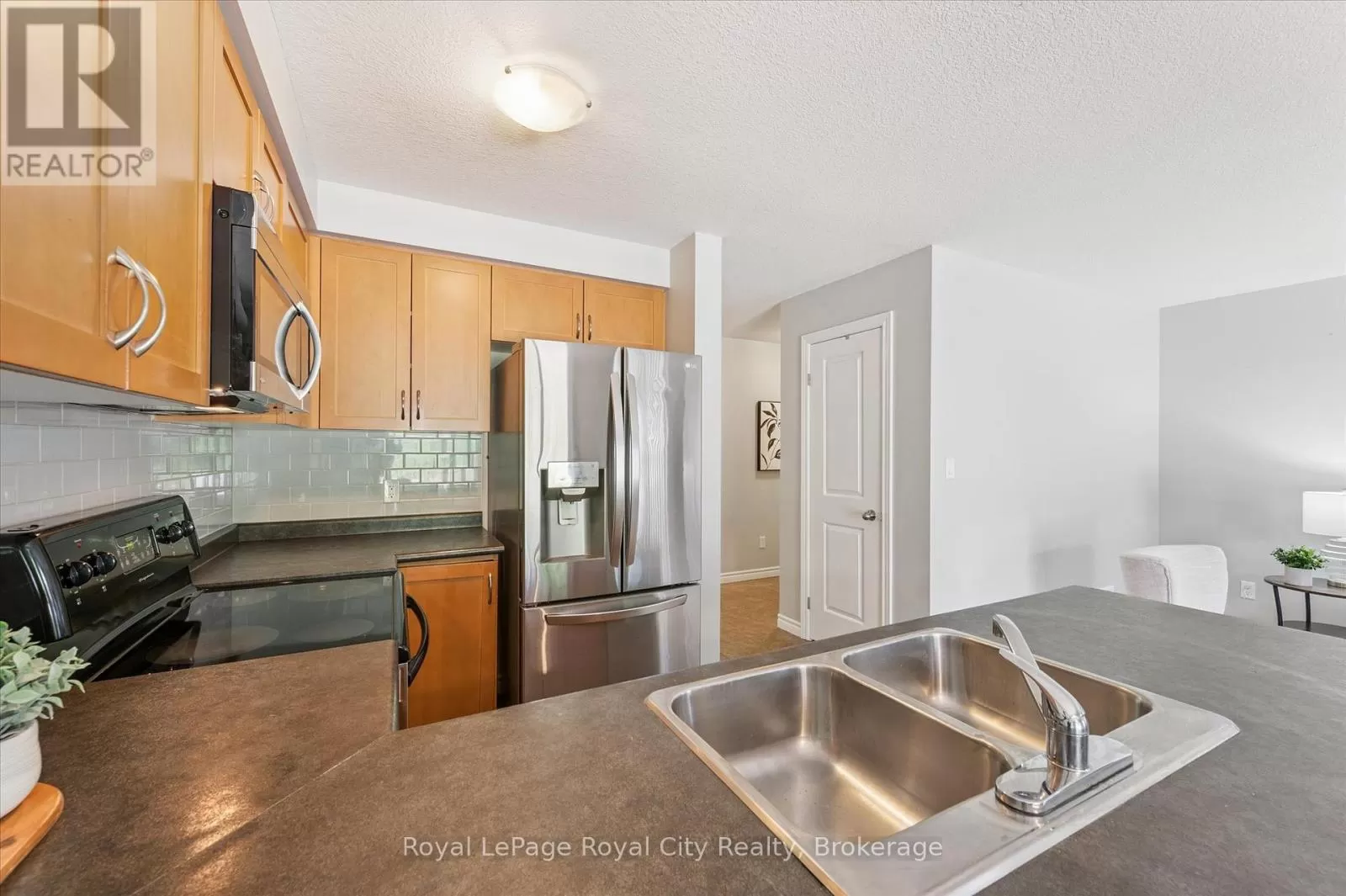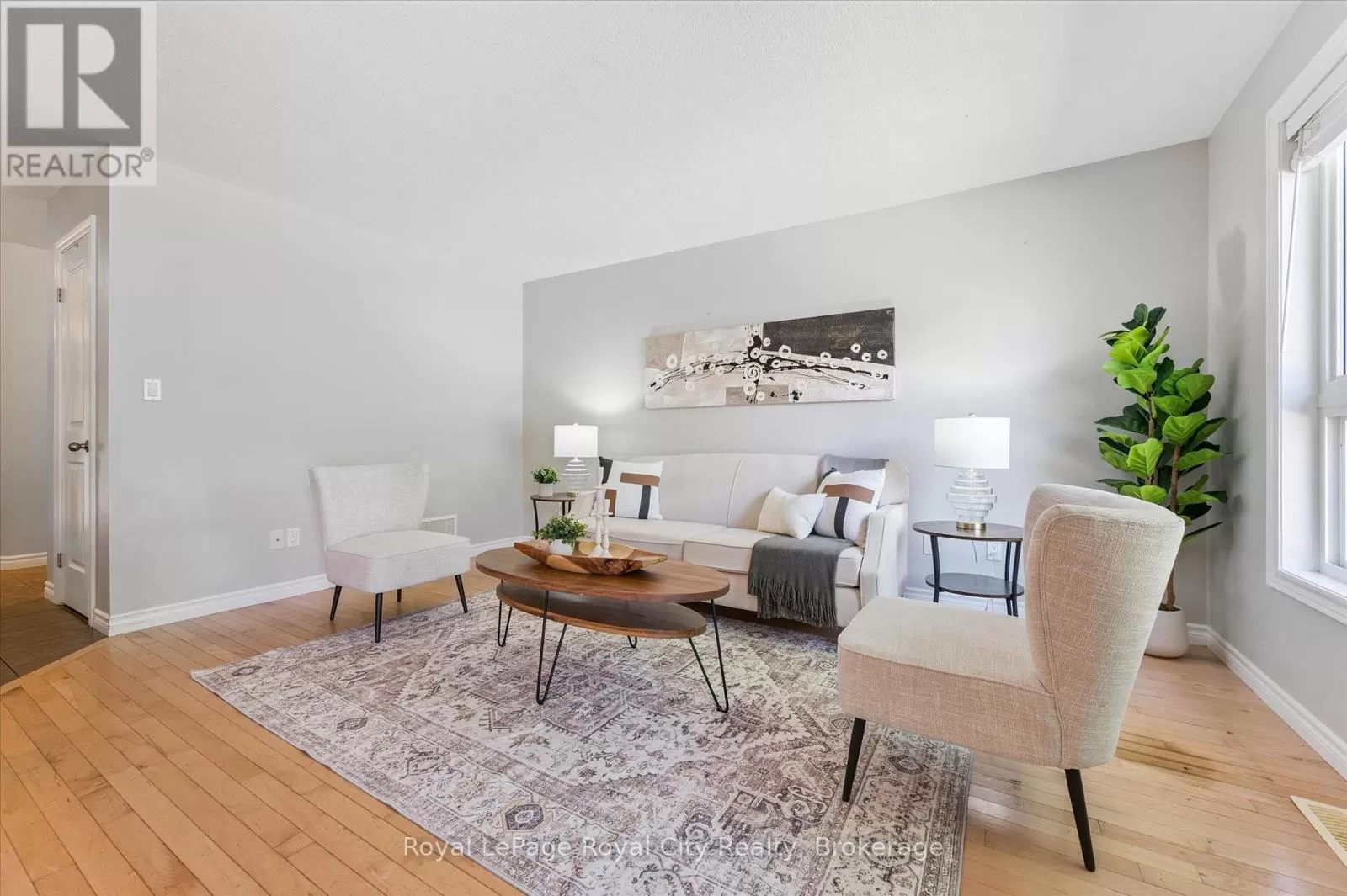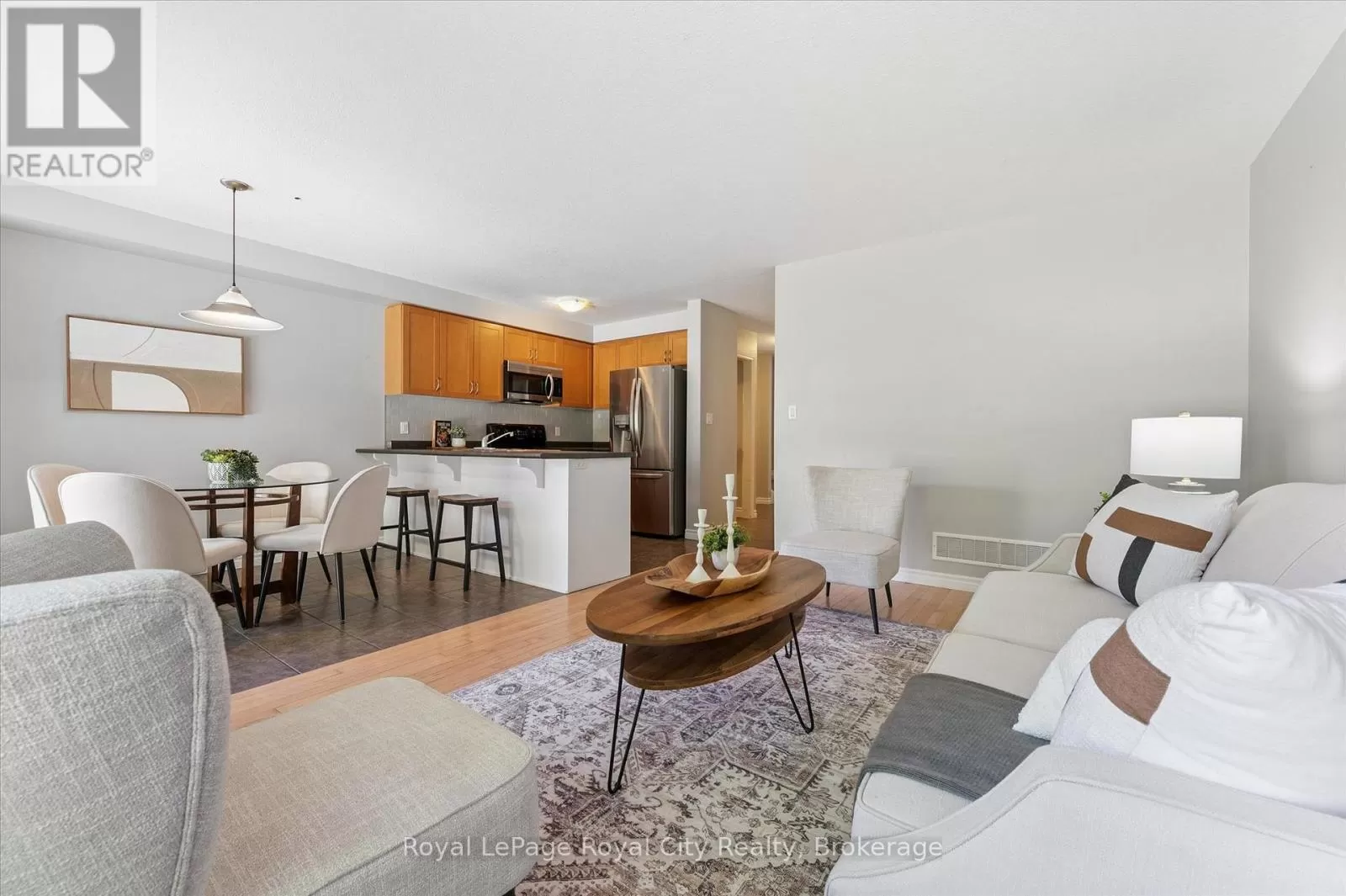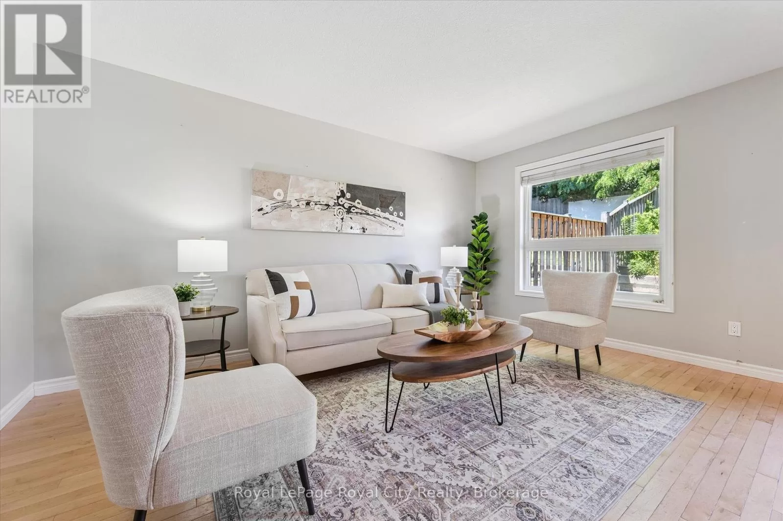 Cross Streets: Grange Rd. ** Directions: Grange to Kemp. Move-In Ready Semi in Guelphs East End! This 3-bedroom, 4-bathroom home offers over 2,000 sq ft of finished living space, including a fully finished basement - perfect for families or those looking for extra room to spread out. The curb appeal is on point with a classic brick and vinyl exterior and a charming covered front entry. Step inside to a bright foyer with a double coat closet and flow into the open-concept main floor, ideal for both entertaining and day-to-day life. The kitchen features stainless steel appliances, a stylish backsplash, and a peninsula with breakfast bar seating. A spacious dining area opens to the rear deck, while the living room showcases hardwood flooring and a large window overlooking the backyard. Upstairs, you'll find three well-sized bedrooms and two full bathrooms, including a generous primary suite with an oversized glass-enclosed shower. The finished basement offers great bonus space, including a rec room, home office area, and a convenient powder room. Outside, the fully fenced backyard features a large deck - perfect for BBQ season - and lots of space to garden, play, or relax. Located in a sought-after, family-friendly neighbourhood within the Guelph Lake school district, and close to parks, trails, and amenities. Come see why so many families love to call this area home! (id:27476)