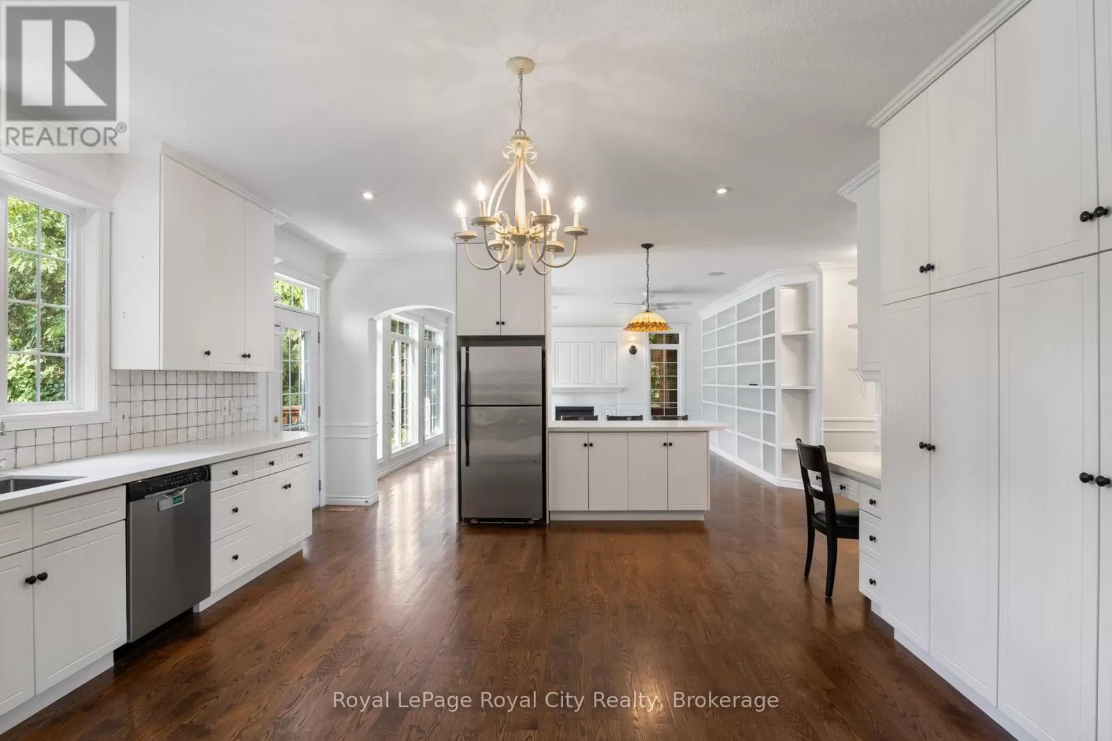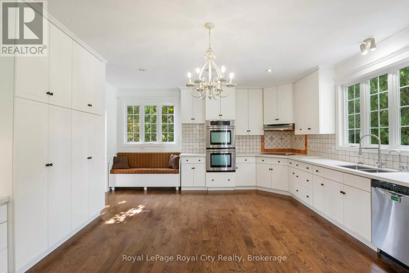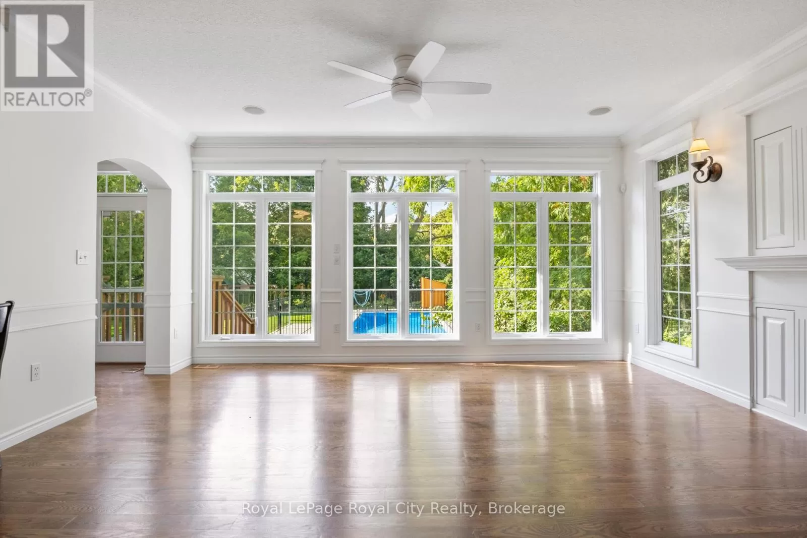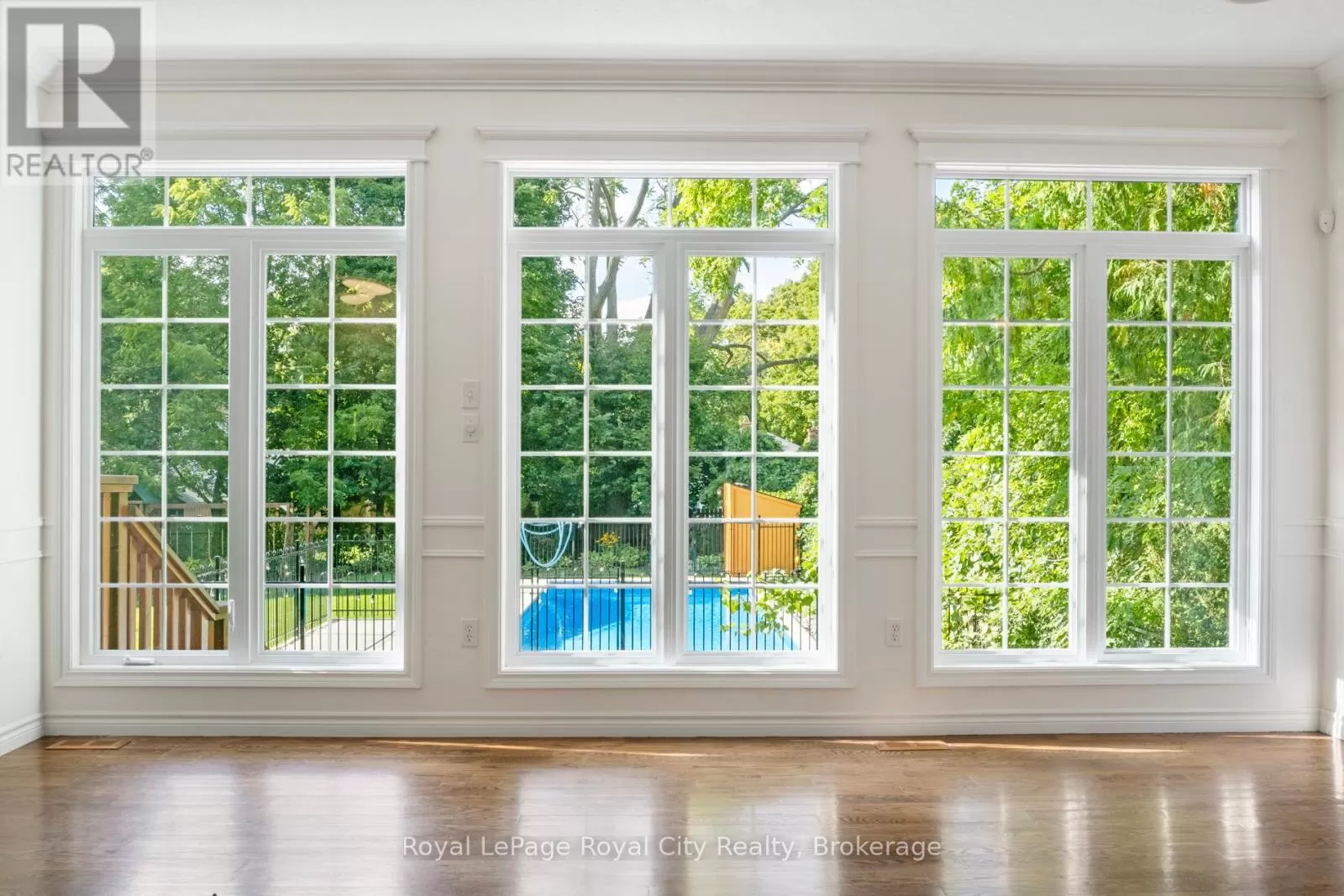 Cross Streets: Metcalfe. ** Directions: Palmer, between Metcalfe & Jackson. Welcome to 168 Palmer Street, a custom-built home perfect for families seeking both luxury and convenience. Located steps from St. Georges Park, this home is also just a short walk from downtown Guelph and the GO station and walking distance to all schools and shopping. With over 4,700 square feet of exquisite living space, this property was designed for modern living. The main floor features a welcoming front porch, grand entrance, a gourmet eat-in kitchen with built-in stainless steel appliances, pantry, and a bright, spacious family room with a cozy gas fireplace, built-ins and walk out to the back yard, the formal dining room is a must see! There is also a main floor bedroom and three-piece bathroom that offer added flexibility. Upstairs, you'll find three generous bedrooms, each with its own ensuite bathroom. The fully finished lower level provides even more space to relax and entertain, with a large recreation room/games room, gas fireplace, a two-piece bathroom, and laundry room, with a laundry Shute! Step outside to discover your private oasis. The backyard is a true showstopper, featuring a beautiful SOLDA saltwater pool, hot tub, gazebo, and multiple patios and kids play centre all enclosed by mature trees. Excellent mechanicals, nine-foot ceilings and hardwood floors, complete this incredible offering. (id:27476)