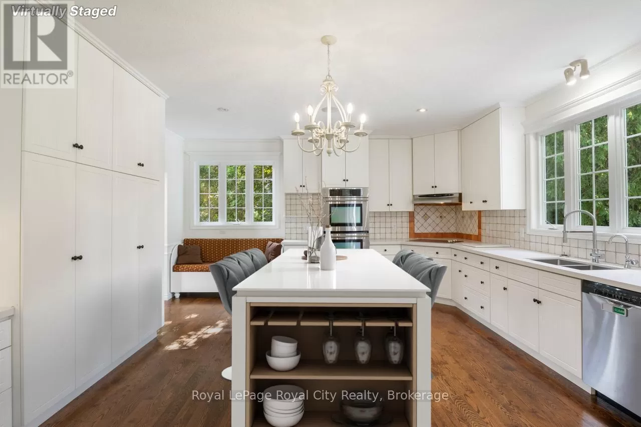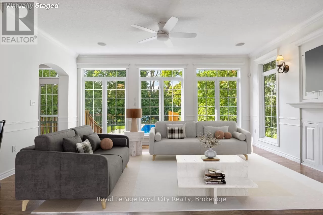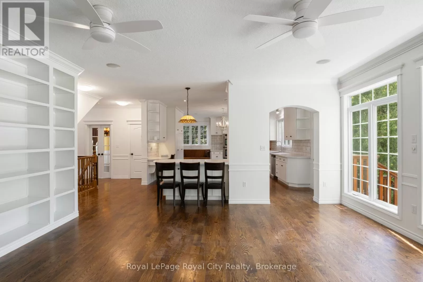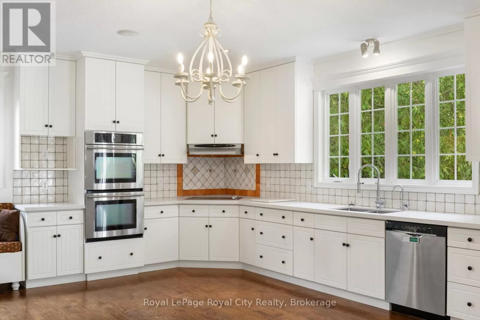Cross Streets: Metcalfe. ** Directions: Palmer, between Metcalfe & Jackson. Welcome to 168 Palmer Street, a custom-built home perfect for families seeking both luxury and convenience. Located steps from St. Georges Park, this home is also just a short walk from downtown Guelph and the GO station and walking distance to all schools and shopping. With over 4,700 square feet of exquisite living space, this property was designed for modern living. The main floor features a welcoming front porch, grand entrance, a gourmet eat-in kitchen with built-in stainless steel appliances, pantry, and a bright, spacious family room with a cozy gas fireplace, built-ins and walk out to the back yard, the formal dining room is a must see! There is also a main floor bedroom and three-piece bathroom that offer added flexibility. Upstairs, you'll find three generous bedrooms, each with its own ensuite bathroom. The fully finished lower level provides even more space to relax and entertain, with a large recreation room/games room, gas fireplace, a two-piece bathroom, and laundry room, with a laundry Shute! Step outside to discover your private oasis. The backyard is a true showstopper, featuring a beautiful SOLDA saltwater pool, hot tub, gazebo, and multiple patios and kids play centre all enclosed by mature trees. Excellent mechanicals, nine-foot ceilings and hardwood floors, complete this incredible offering. (id:27476)