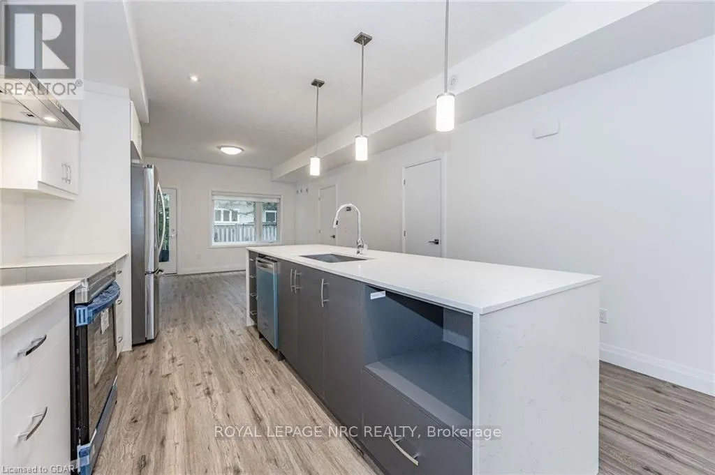 Cross Streets: Gordon St & Clairfields Dr W. ** Directions: W. Location ! Location, Location ! Walking distance to all south end amenities, close to multiple parks, schools and easy access to HWY 6 and the 401! Only 2.5 years old luxury Pulse townhouse situated in Guelph's south end - over $33,000 in upgrades have been added to this gorgeous townhouse! Enjoy an open concept floorplan filled with high quality finishes throughout - 9' ceilings, premium appliance package, oversized kitchen island and more! Offering 1427 SQF total square feet, the main floor is bright and spacious, boasting a beautifully finished eat-in kitchen with high end stainless steel appliances, pendant lighting, waterfall island and plenty of cupboard space. A spacious living room with large windows, a 2pc bathroom and walkout to the backyard space . Upstairs consists in 3 large bedrooms, a 3piece bathroom and a Master bedroom with ensuite for your convenience. Additional features include low maintenance fees, brand new stacked washer/dryer combo and 1 parking space! .Property is Tenanted for $3200 a Month Plus Utilities and tenants are willing to Stay .Book your showing as soon as possible (id:27476)