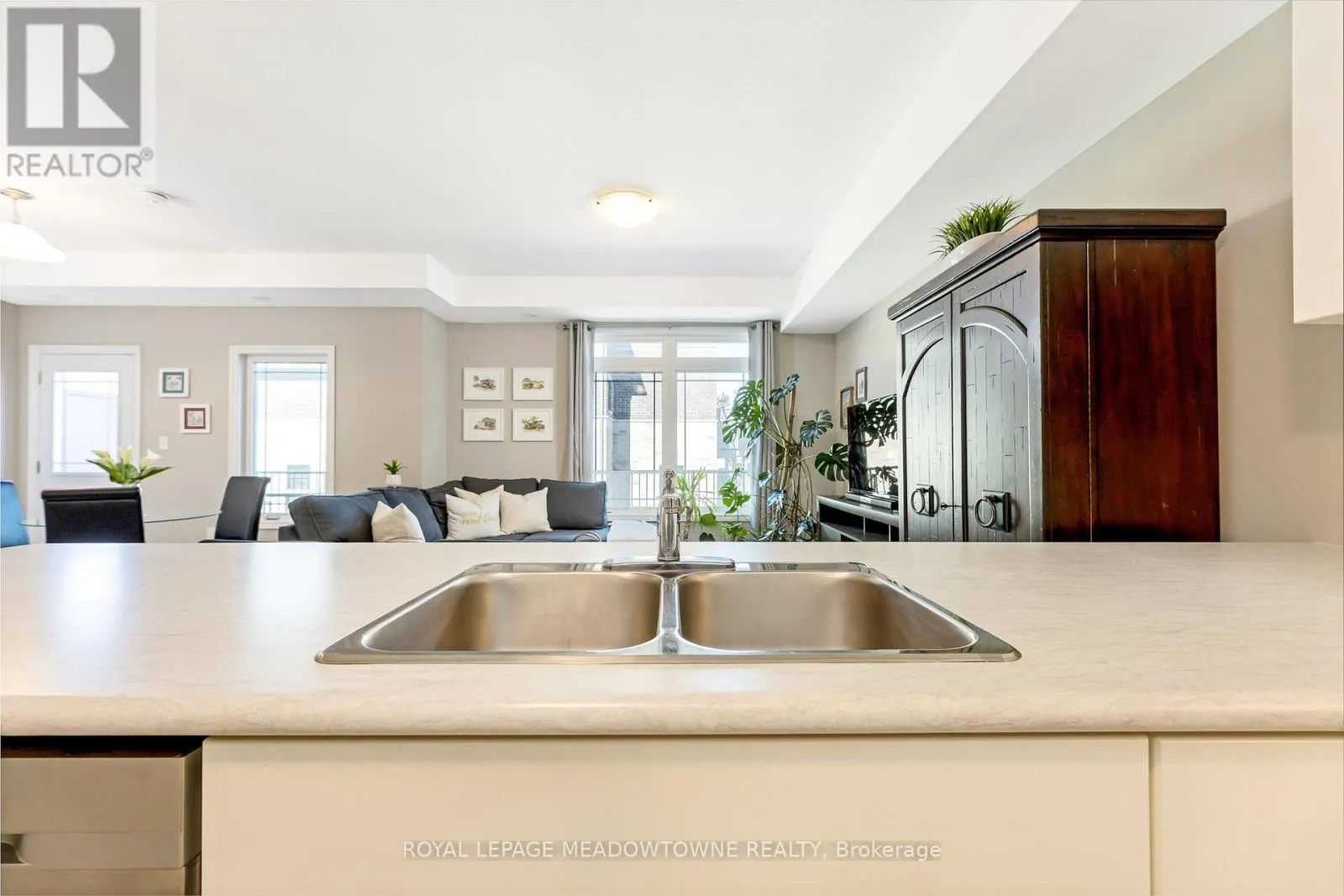 Elmira Rd. to Tovell Dr. to Westra Dr. Welcome to this stylish and sun-filled 2-bedroom, 1.5-bathroom stacked condo townhouse, nestled in one of Guelphs most sought-after communities! Thoughtfully designed for modern living, this bright and airy home boasts large windows that flood the space with natural light, creating an inviting and warm atmosphere. Step inside to discover a spacious open-concept main floor, where elegant hardwood flooring flows seamlessly throughout. The contemporary kitchen is a true highlight, featuring sleek countertops, ample cabinetry, stainless steel appliances, and a large breakfast bar perfect for casual dining or entertaining guests. The adjoining living and dining areas provide a functional yet stylish space, ideal for cozy nights in or hosting family and friends. Upstairs, you'll find two generously sized bedrooms, each offering plenty of closet space and natural light. The primary suite is a private retreat, complete with a walk-in closet, while the second bedroom is perfect for guests, a home office, or a growing family. The upper-floor laundry adds convenience, eliminating the need to carry loads up and down stairs. Additional features include private parking right at your doorstep, providing effortless access to your home. This prime location offers quick access to parks, scenic trails, shopping, dining, and transit, making it easy to enjoy everything Guelph has to offer. Whether you are a first-time buyer, downsizer, or investor, this home presents an incredible opportunity to own a beautifully designed, low-maintenance property in a thriving neighbourhood. Don't miss out on this fantastic opportunity - Schedule your private showing today! (id:27476)
