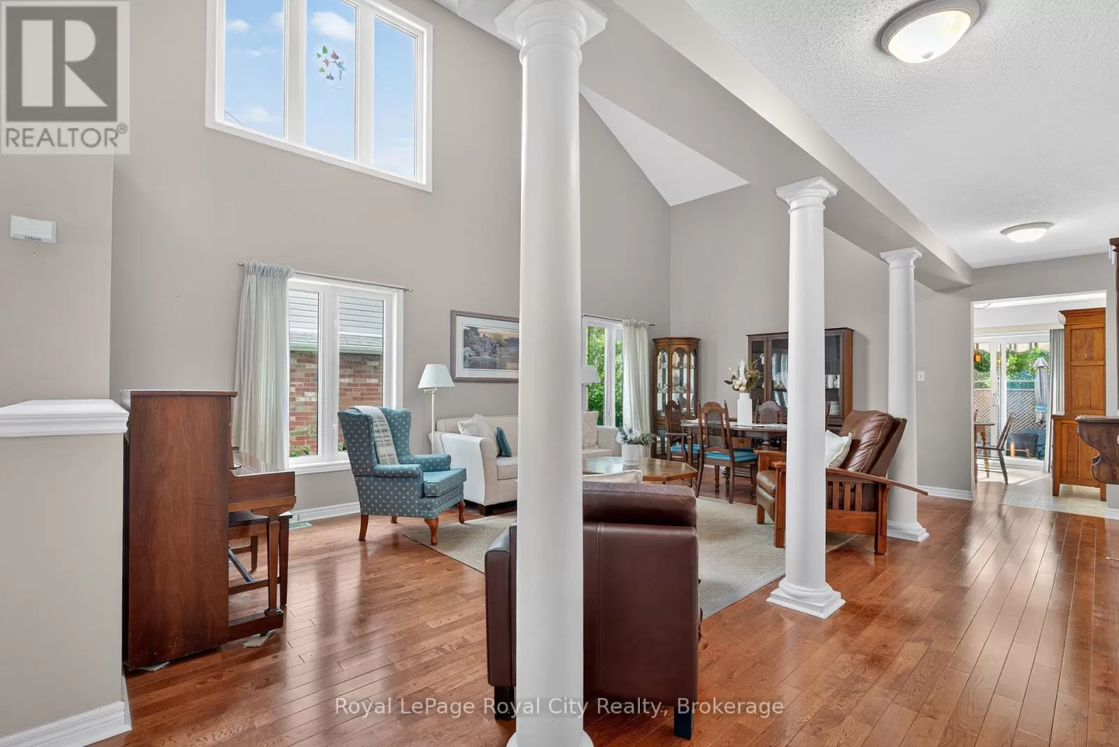Cross Streets: Grange Rd. ** Directions: Victoria Rd and Grange Rd. This end-unit semi-detached freehold bungaloft is a rare find in East End Guelph. With soaring ceilings, oversized windows, and sunlight streaming in from every angle, the home feels open, bright, and welcoming. The main-floor accessible primary suite, features a full ensuite, making everyday living easy and comfortable. You'll also love the convenience of main-floor laundry, plus a den that offers flexible space perfect as a home office, cozy sitting room, or even a potential third bedroom. Upstairs, the loft features a bright bedroom with a walk-in closet, an inviting light-filled reading nook, and a full bathroom, providing comfort and versatility for family or guests. The home includes three full bathrooms, accommodating everyone with ease. The living area is spacious and practical, while the cozy kitchen opens to the backyard via a sliding door perfect for casual meals or outdoor entertaining. Storage will never be an issue, with ample closets throughout and a double-car garage plus two driveway spots, totaling four parking spaces. The basement is partially finished and ready for your finishing touches giving you the opportunity to create additional living space exactly how you want it. Set in a friendly, welcoming neighbourhood, this home is surrounded by well-maintained homes and neighbours who look out for one another, creating a true sense of belonging. With schools, shopping including Grange & Victoria Plaza and walking trails nearby, this is a place where you can settle in for the long term and enjoy all stages of life in one home. 22 Thornton Street isn't just a home - its where convenience meets comfort, with a little extra sparkle. (id:27476)