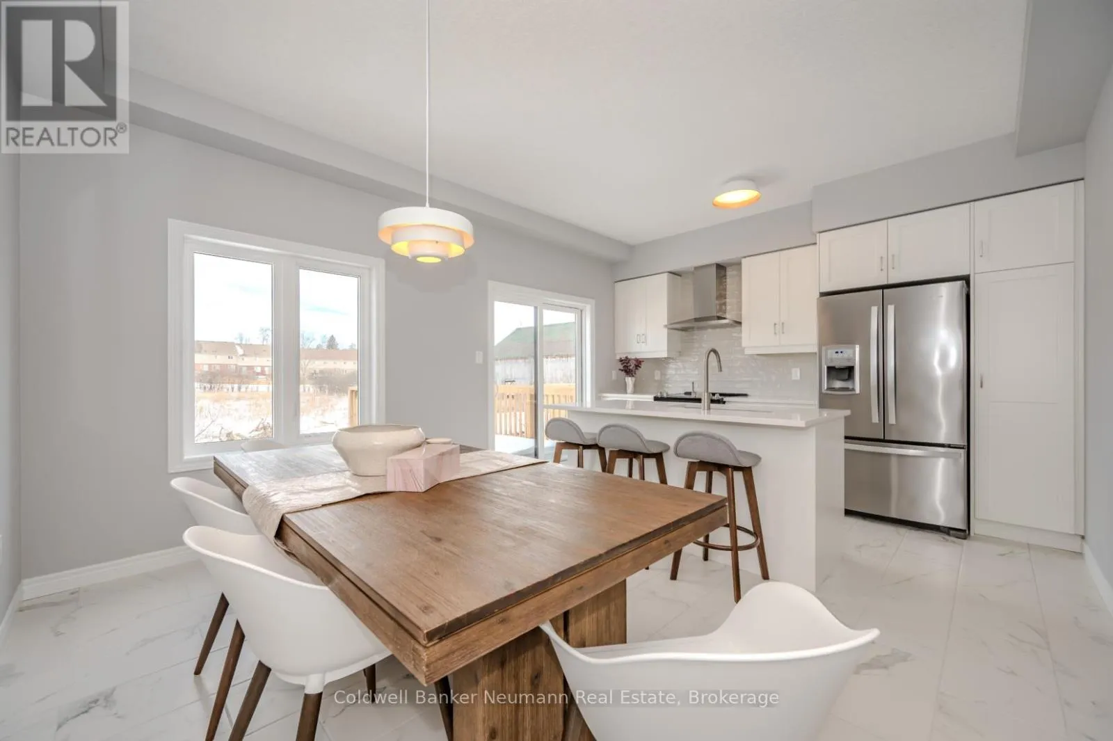 Cross Streets: Grange/Sora/Hagan. ** Directions: Grange to Sora Lane. Set in a warm and welcoming enclave in Guelph's thriving east end, 5 Sora Lane offers a perfect balance of style, comfort, and urban convenience, all within a family-friendly community known for its exceptional quality of life. Built by Fusion Homes, this brand-new, never-lived-in townhome with an attached garage features three bedrooms, 3.5 bathrooms, and over 1,650 sq. ft. of beautifully finished living space, including a versatile walk-out basement ideal for an office, guest suite, or additional lounge area. Designer-selected upgrades and finishes included, valued at $80,840! This home is also available fully furnished*, providing a truly turnkey purchase experience ideal for University students, busy professionals, investors, or relocating families (*inquire for details). Inside, the main floor showcases open-concept living with hardwood flooring, quartz countertops, and a kitchen equipped with premium stainless-steel appliances, offering the perfect setting for both everyday life and entertaining. Upstairs, the primary suite includes a walk-in closet and a spa-inspired ensuite with a glass-enclosed shower. Two additional bedrooms, a stylish full bath, and in-suite laundry complete the upper level, blending comfort and practicality in every detail. The Fusion Homes Difference defines this home through exceptional quality, design, and value. Every Fusion home includes a warranty that's 2X the industry standard, 6X Tarion Award-winning customer satisfaction, and no hidden fees (development charges, registration, and Tarion fees already included in the purchase price)! With private garage parking and convenient access to parks, trails, schools, and shopping, this home delivers the perfect combination of comfort, community, and modern living in one of Guelph's most desirable neighbourhoods. (id:27476)