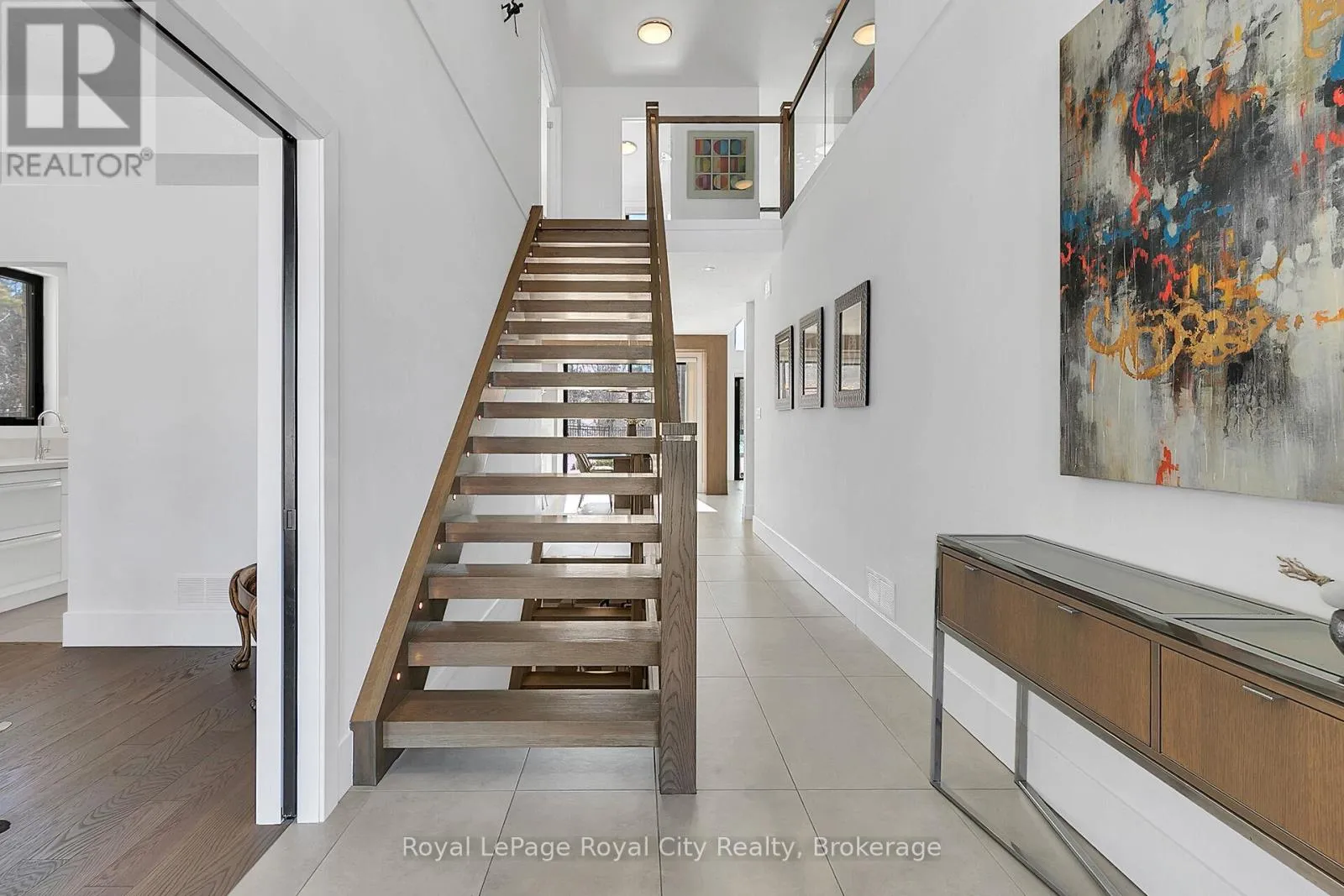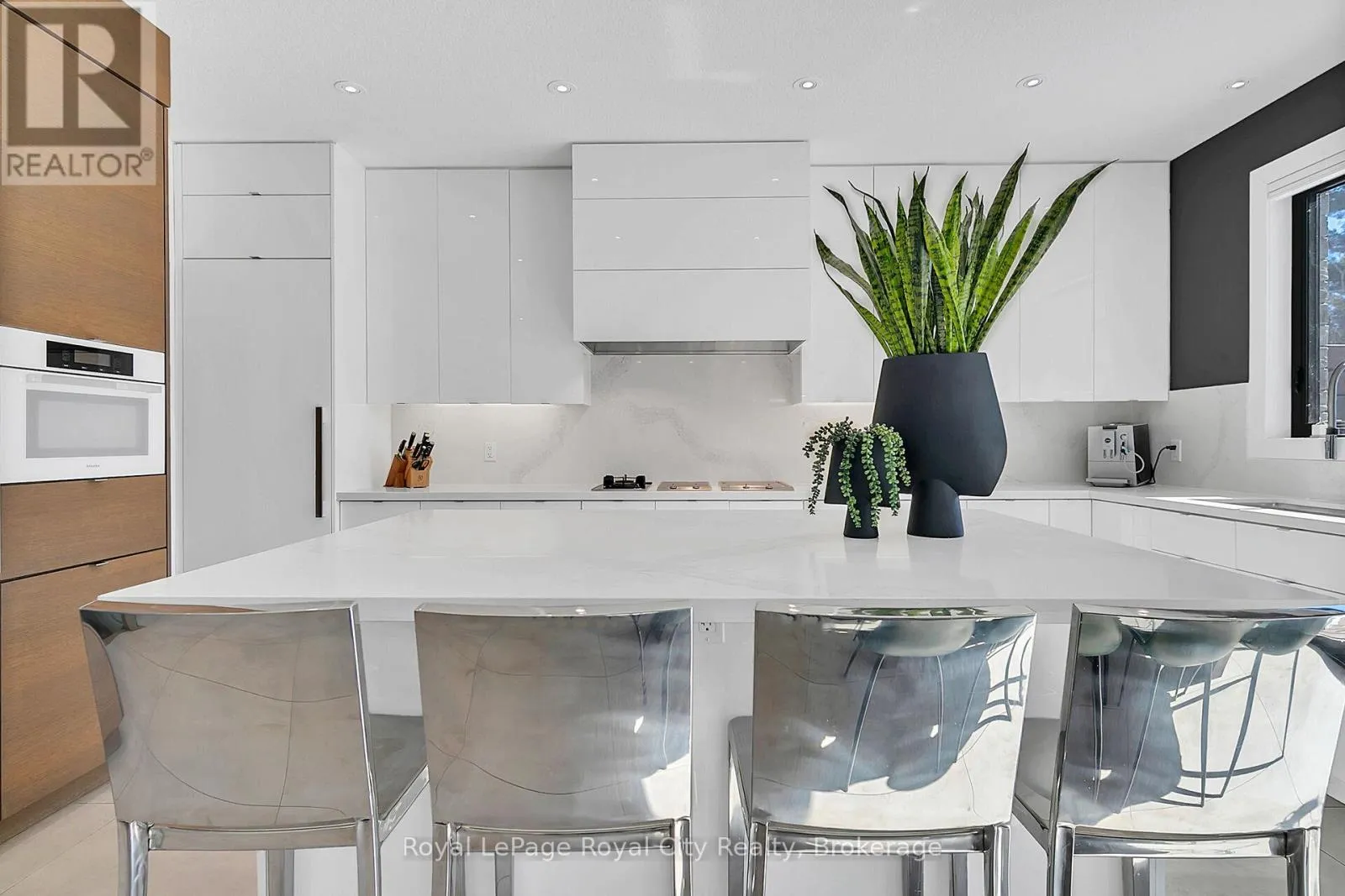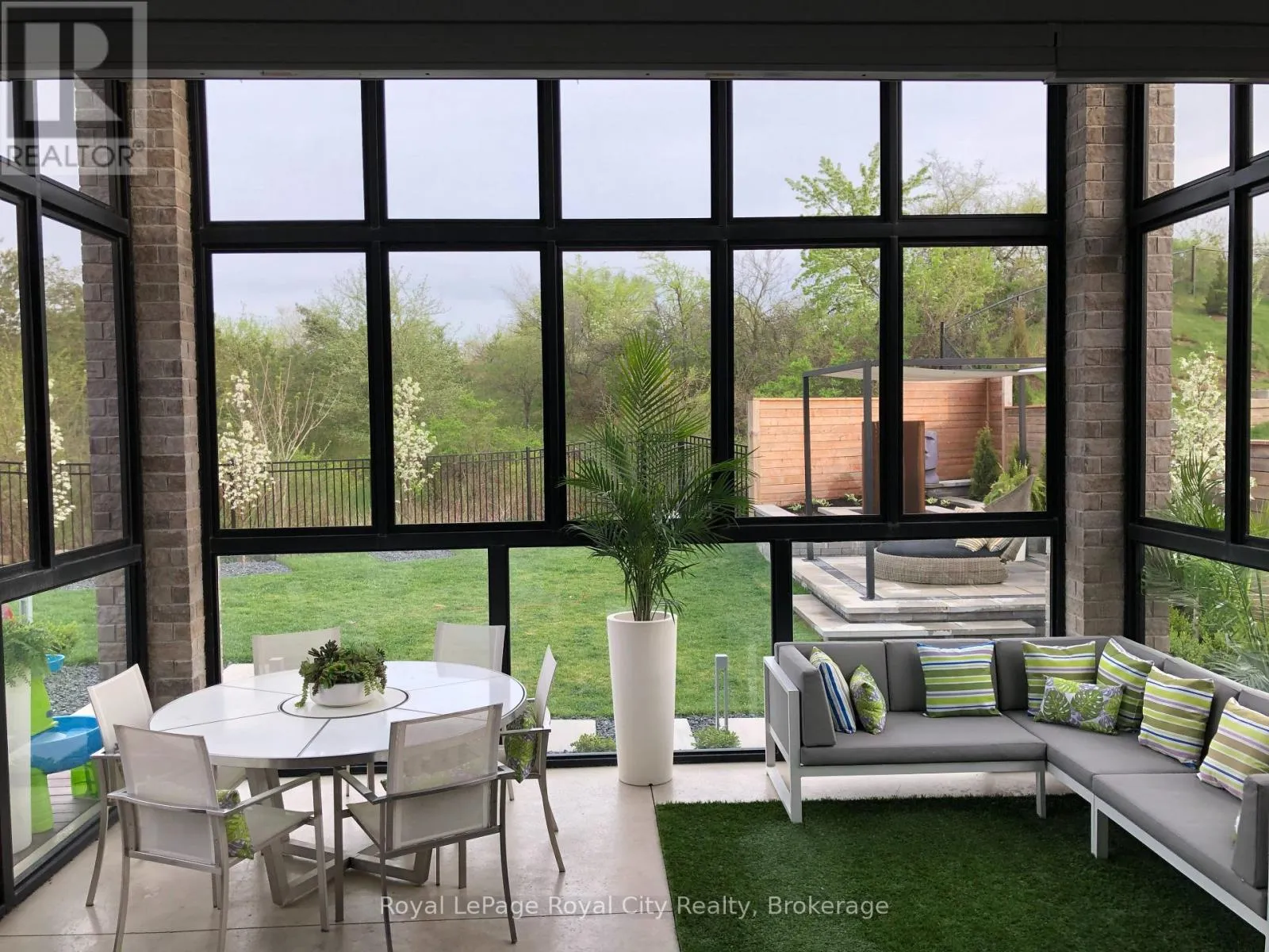 Cross Streets: Gordon. ** Directions: Gordon Street to Gosling Gardens. Incredibly rare south end offering! Few properties can equal the attention to detail you can expect to find in this exceptional residence. You'll appreciate its proximity to schools, recreation, shopping and major transportation arteries, while being perfectly positioned on one of Guelphs premier south end crescents. This striking 2700+ sq ft 2 storey home is set on a massive pie shaped lot. Wait until you see the attention to the landscape design! I must say this family was well ahead of their time in design. It is hard to believe that this home has even been lived in, as it has been so meticulously maintained. Step inside and you will find a combination of a clean, understated and modern architecturally designed space for family living. As you enter, an impressive foyer showcases a grand staircase and there is a perfect home office or dining room with butlers pantry .you choose. From here, the gallery opens to the heart of the home. The custom kitchen with loads of cabinetry, granite countertops, high end appliances and breakfast island and connects to the great room and rear yard. The great room soars to 18' and showcases handsome built-in cabinetry and custom 2 storey gas fireplace. A fabulous 2 storey sunroom complete with screens and glass provides panoramic views of the extensive landscape and enjoys perfect entertaining and dining opportunities to enjoy for 3 seasons. The scale is dramatic and the look is glamorous, but its warm and comfortable at the same time! A 2pc bath on this floor and your laundry room is convenient and accessible from the 2 car garage. Upstairs and you will find all bedrooms are a generous size. The master suite is an oasis with a luxurious spa-like bath and walk-in closet with built-ins. Two additional bedrooms on this floor share access to a 4pc bath. The bright basement offers an additional 1203 square feet including a gym, 4th bedroom, full bath, and recreation room. (id:27476)