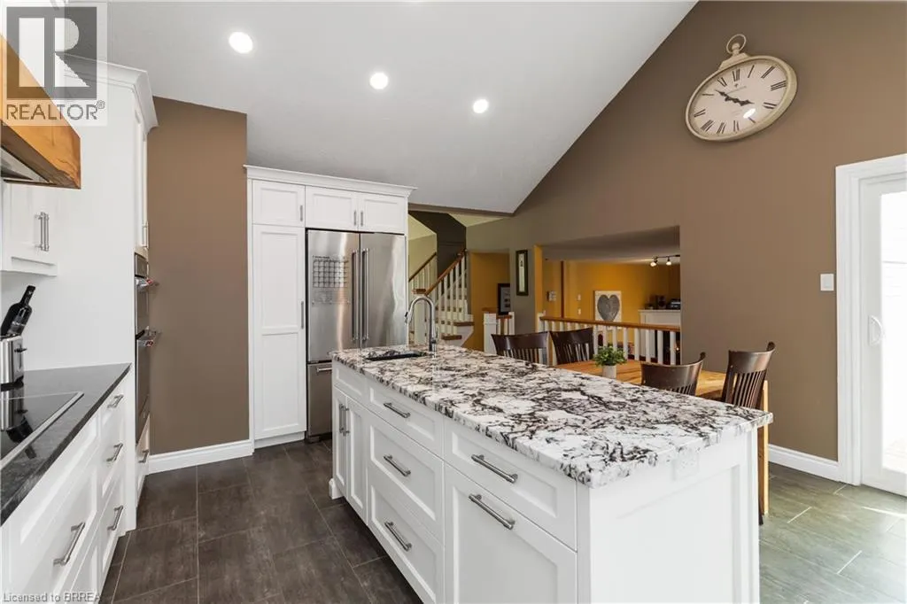From Wellington Road 35 turn West on Ptarmigam, Turn left onto Merganser Dr., turn right onto Sandpiper Drive. Welcome to the family-friendly & highly desirable Kortright Hills neighbourhood! This spacious 4-level backsplit offers 4 bedrooms above grade & has been thoughtfully updated throughout. The fully renovated (2019) eat-in kitchen is a true highlight, featuring granite countertops, a marble backsplash, & a stunning locally sourced red maple live-edge table. Designed with functionality in mind, it also includes a pull-out lazy Susan, a second sink, extra storage, under-cabinet lighting, flooring and brand-new appliances, including an induction stove. The kitchen overlooks the family room, accented by new railings & stairs, and provides direct access to the backyard. A separate dining/living area with a cozy gas fireplace offers plenty of room for family gatherings and fills the main floor with natural light. Upstairs, youâll find a spacious primary bedroom complete with its own 4-pc ensuite, plus two additional bedrooms & another 4-piece bathroom. The ground level features a bright family room with a walkout to the covered back patio, a fourth bedroom, a beautifully updated 2-piece bath, and a convenient laundry room. The finished basement extends your living space with a warm and inviting rec room featuring built-in cabinetry and a gas fireplace â the perfect spot to unwind. A soundproofed room on this level is ideal for a musician or hobbyist, with extra storage areas to keep everything organized. Outside, the private backyard is ready for summer fun with an inground pool installed 2013, now with a brand-new heater (2024). The covered patio (2014) provides welcome shade while you watch family and friends enjoy the pool. Additional upgrades include an insulated heated (2021) garage, a durable metal roof by Superior Steel Roofing, a new furnace & A/C (2020), new Brookstone windows and doors throughout most of the home (2023), and updated skylights (2011). This wonderful home sits on a quiet street with great neighbours and is truly one youâll want to see for yourself! (id:27476)