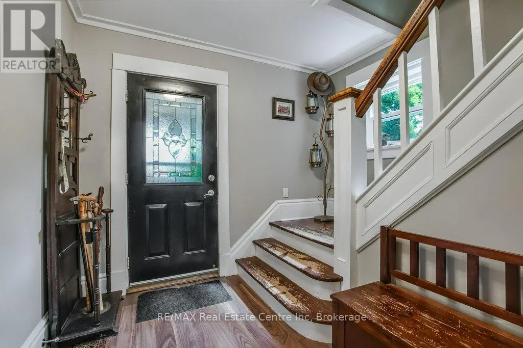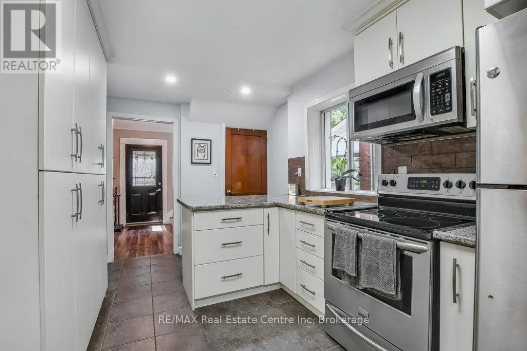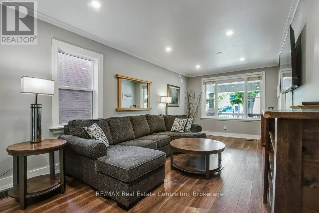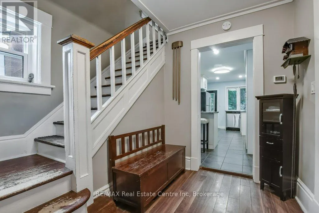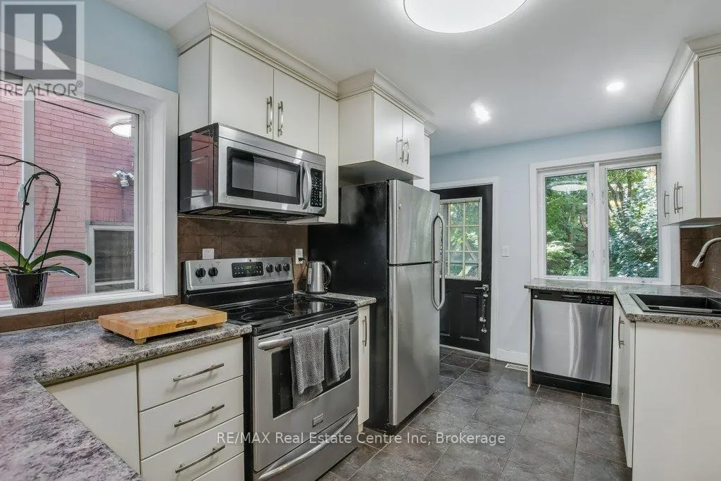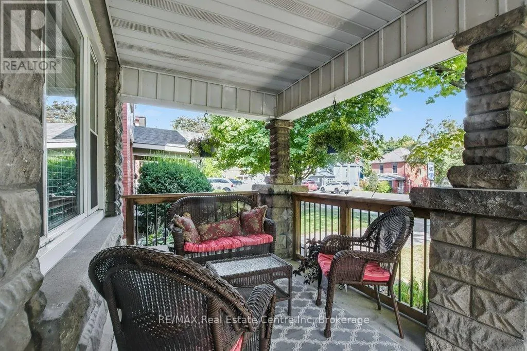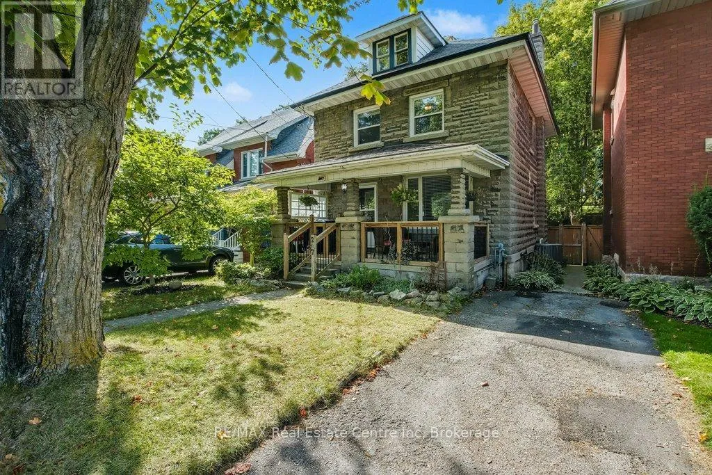 Cross Streets: Waterloo & Edinburgh. ** Directions: Waterloo West. Downtown Guelph charmer! Unique stonework & oversized covered porch set a timeless tone. Classic wood staircase, bright windows & carpet-free living blend old-home romance with modern updates. Kitchen (2014) w/ peninsula & stainless appliances, pot lights (202224), 3 spacious bedrooms + attic potential. High-ceiling walk-out basement w/ sep entrance. Walkable to parks, shops & cafés, with a backyard stamped patio (2017) perfect for gatherings. (id:27476)