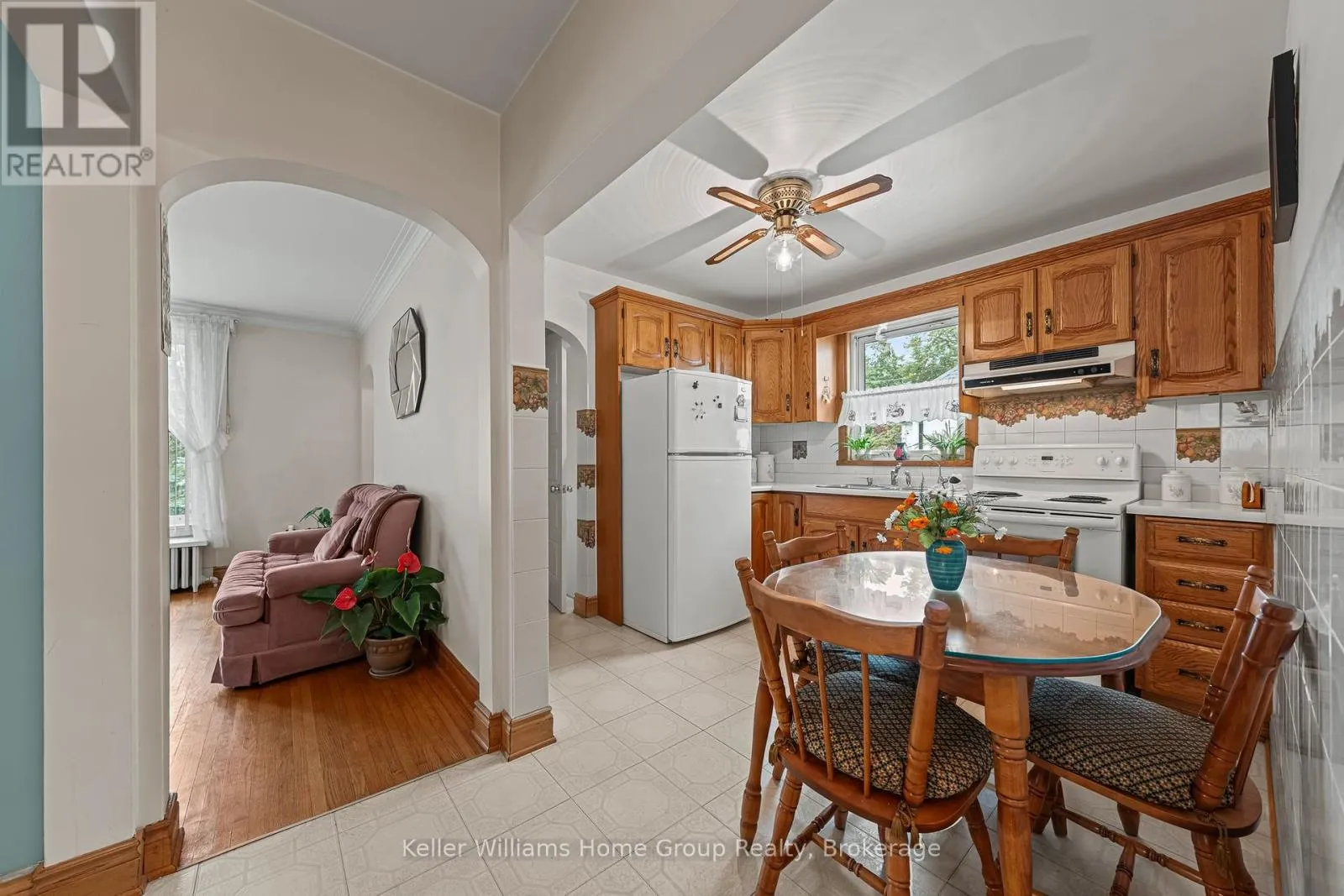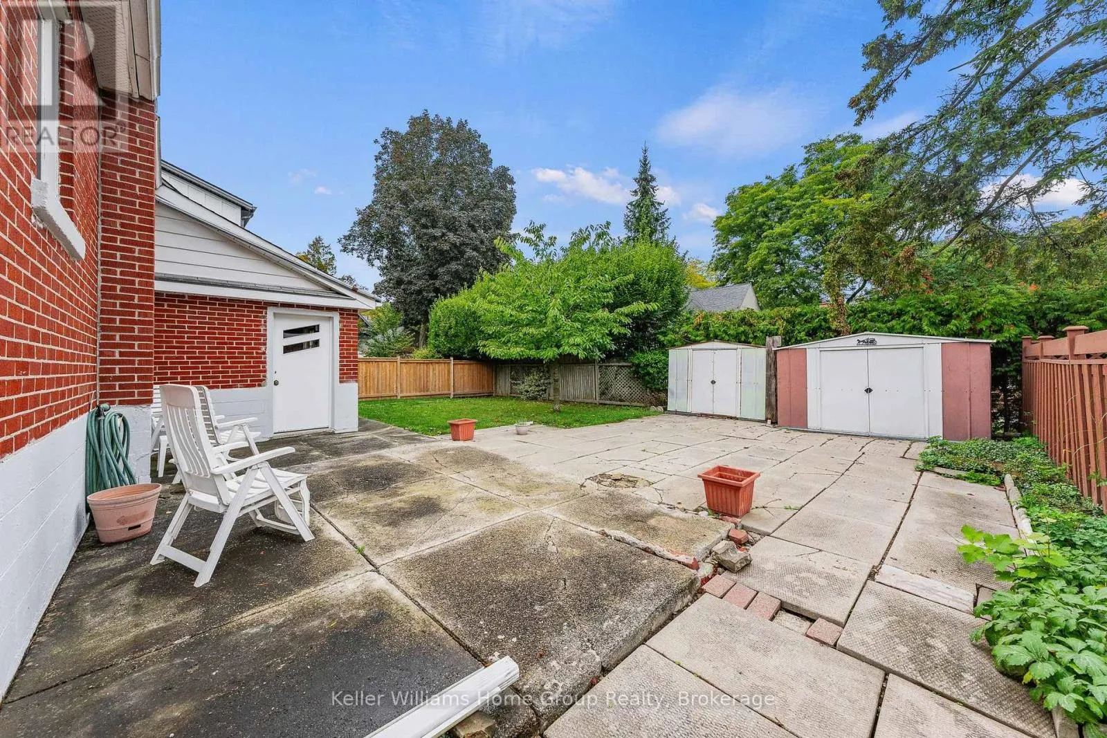 Cross Streets: Metcalfe & Grange. ** Directions: Eramosa Rd, turn onto Metcalfe St, turn left onto Hepburn Ave. A great opportunity awaits, this cute 2 bedroom brick bungalow was last sold in 1978! Located in the very desirable St George's Park neighbourhood, on a nice quiet street with just a handful of homes - some of the neighbourring homes in the area have undergone major renovations and rebuilds. The main floor has an open comcept eat-in kitchen, dining room, living room, 2 bedrooms and a main bathroom, original hardwood floors throughout the living, dining and bedrooms. The basement has a second kitchen, rec room with gas fireplace, lots of storage areas and a 4pce bathroom and a separate entrance leading up to the attached garage and a second entrance from the side of the house. With some work it may be possible to create a separate basement rental unit for income if needed. The backyard is mainly patio and is fence for privacy. There is lots of driveway parking for your friends and family as well as the 1.5 car garage for indoor parking. (id:27476)