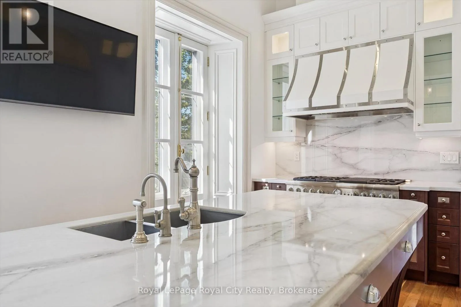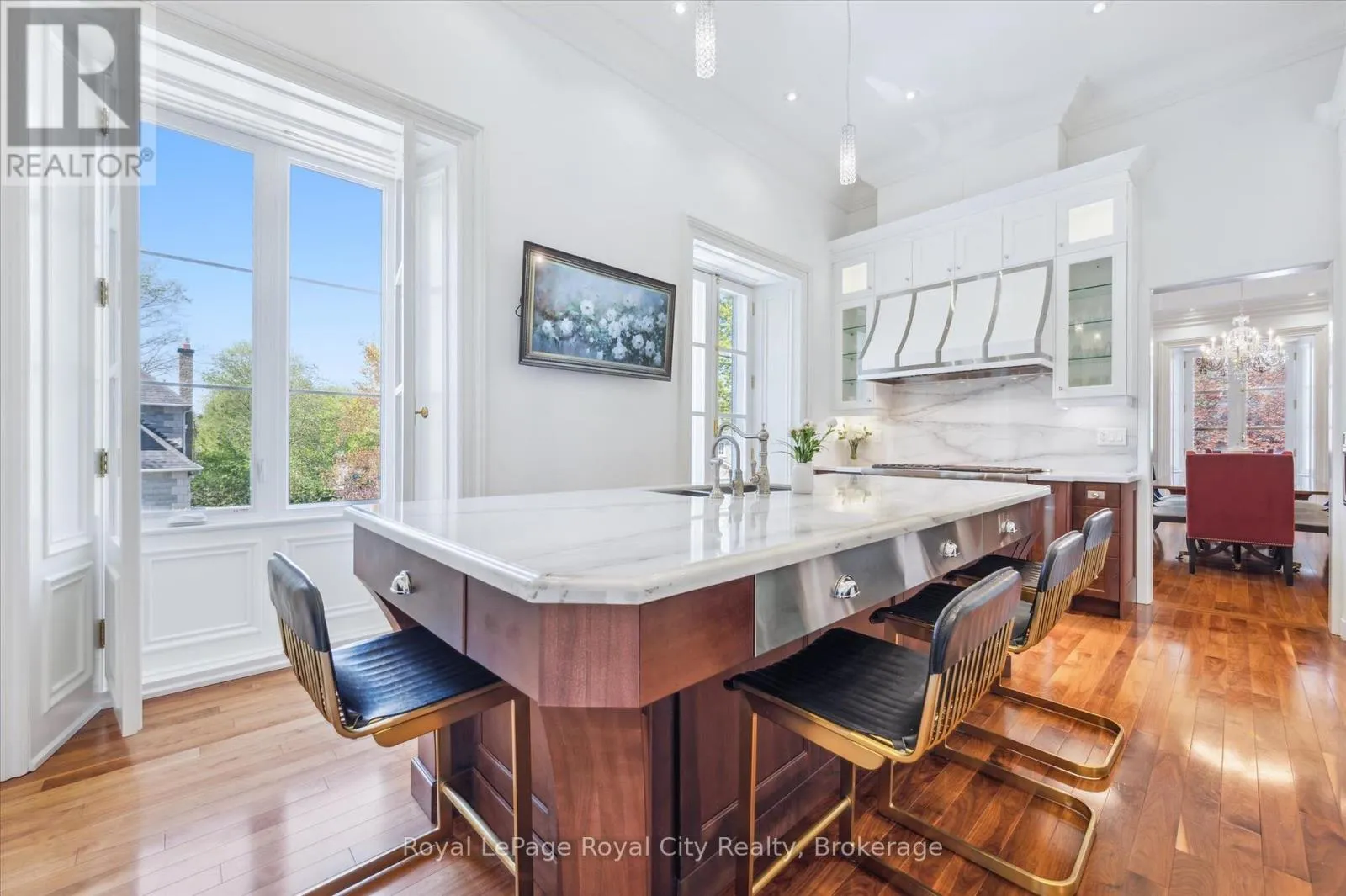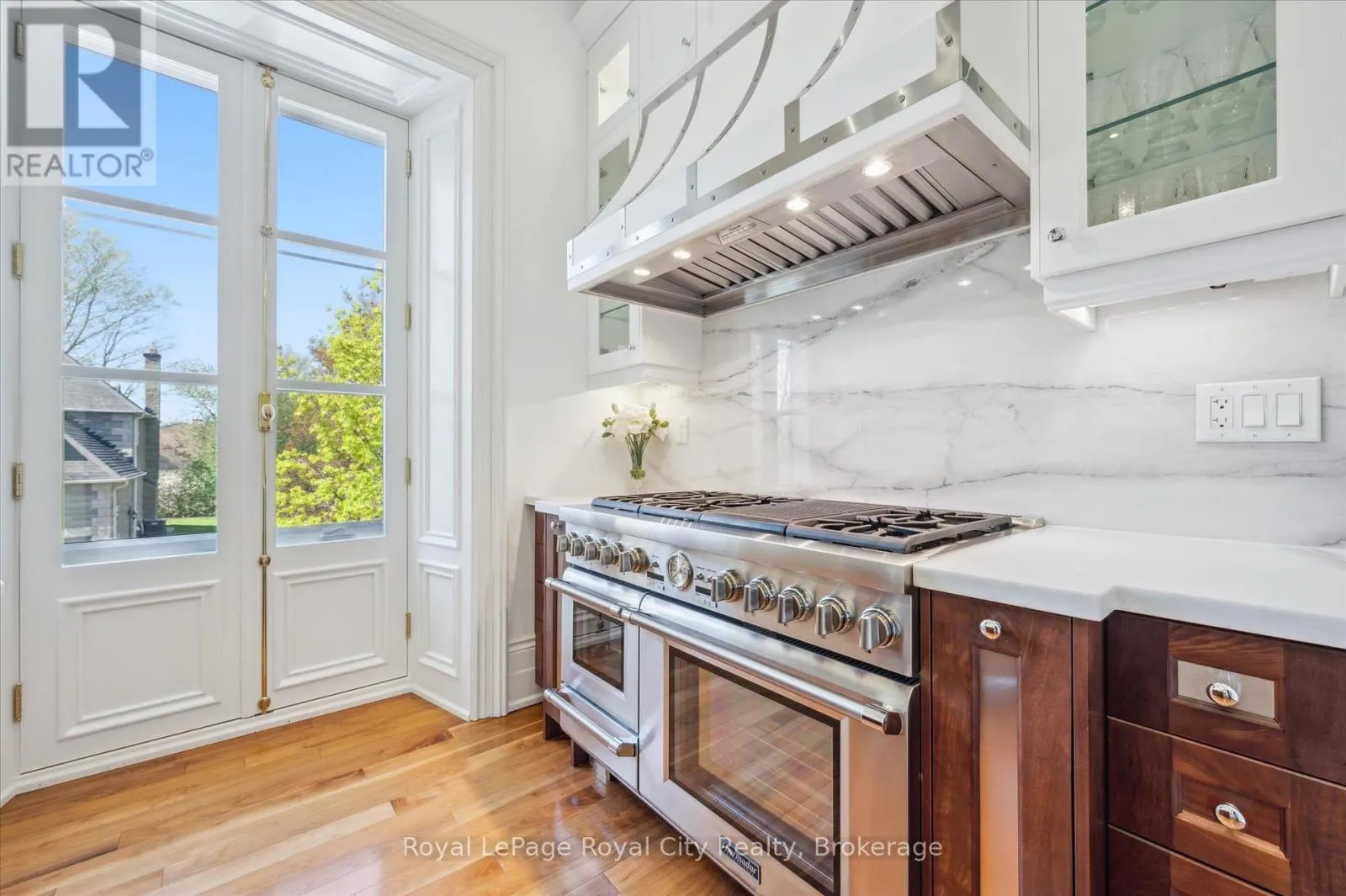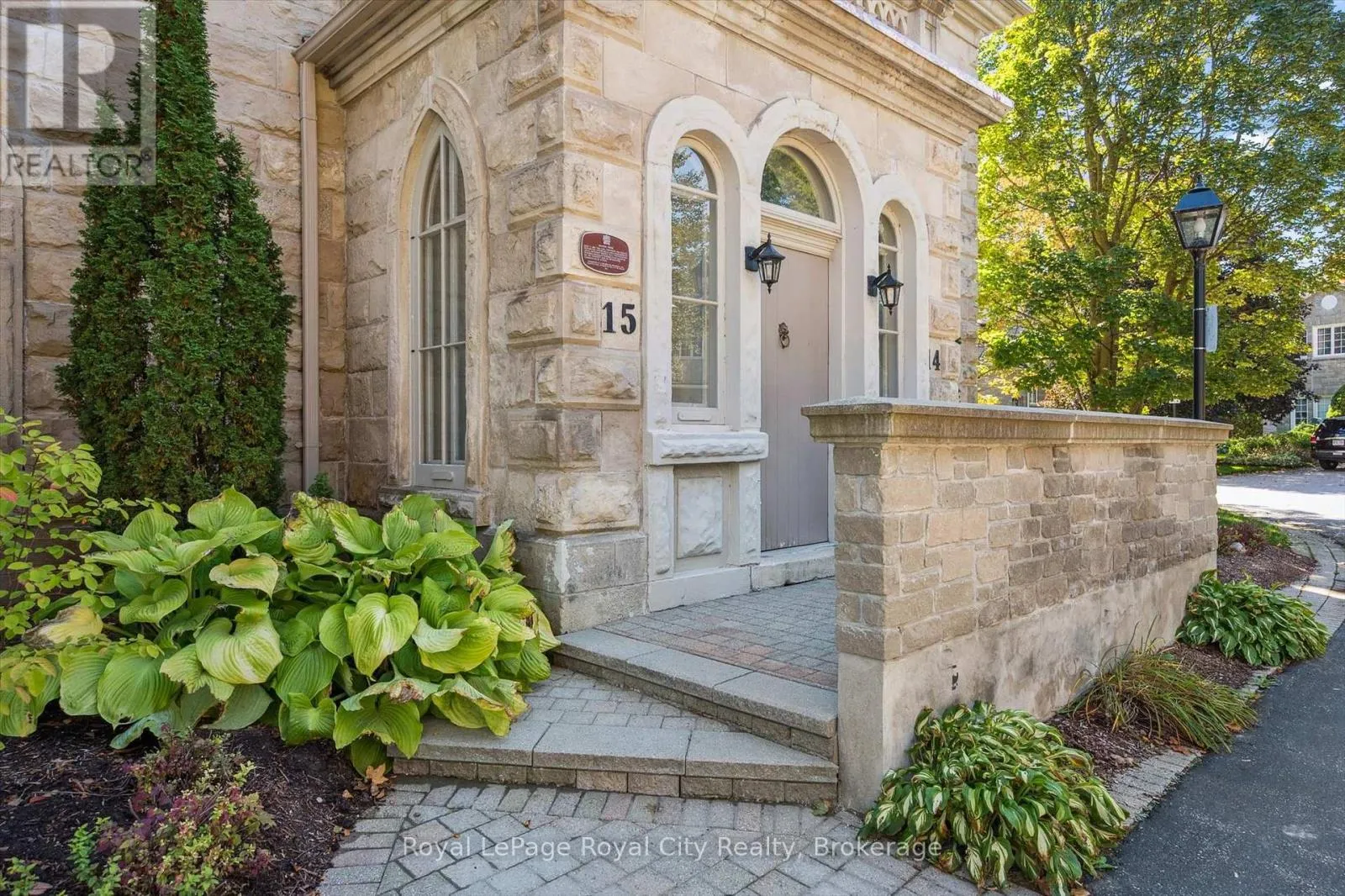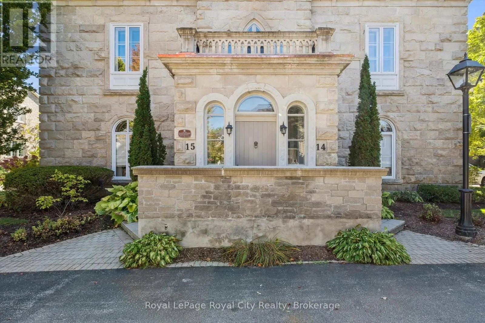 Cross Streets: Wellington X Edinburgh. ** Directions: Visitor Parking Located just beyond the main residence. An Heirloom of Guelphs Heritage, Reimagined for the Modern Era. Long before glass towers dotted our skyline, this stone Georgian mansion was standing proud by the Speed River. Built in 1850, it remains one of Guelphs most admired heritage properties. Today, this historic residence has been thoughtfully restored and transformed into a private enclave of luxury condominiums, where history meets modern convenience. Residence 15 is set within the original mansion itself, spans 3,600 sqft and embodies a harmony of heritage and sophistication. Inside, you'll find two bedrooms, three baths with a private elevator and will feel the elevated sense of space which is revealed through soaring 11-12 ft ceilings, custom millwork, imported Italian marble, rich walnut hardwood, and handcrafted designer fixtures. Floor-to-ceiling French windows, in every room, bring abundant natural light and connect interior spaces with elegance. At the heart of the residence lies a chef's kitchen of distinction. Anchored by a professional-grade 5pc Thermador suite - including an exceptional 8-burner gas range, seamlessly integrated appliances, a dedicated wine fridge and coffee system - it is designed for those who entertain with refinement and cook with passion. A true sanctuary, the principle suite boasts separate custom closets and a 5pc luxury ensuite featuring a freestanding soaking tub perfectly positioned to enjoy the scenic view. Riverside walking trails are just steps away, connecting you back to the very landscape that has shaped Guelphs history. Manor Park affords true lock-and-leave convenience with no outdoor maintenance, ideal for discerning travellers or multi-residence owners. It's super prime location places you within moments of top restaurants, private golf club, downtown Guelph and easy access to the express. This extraordinary historic residence awaits its next steward - come discover it through a private tour. (id:27476)