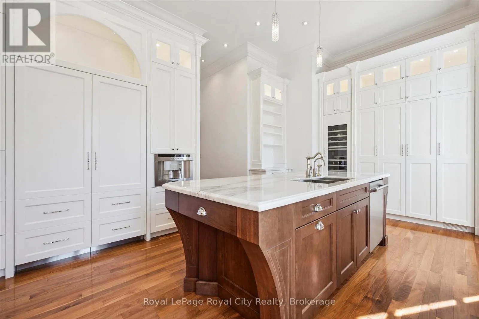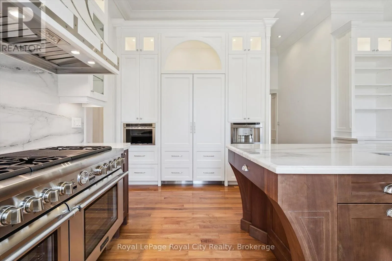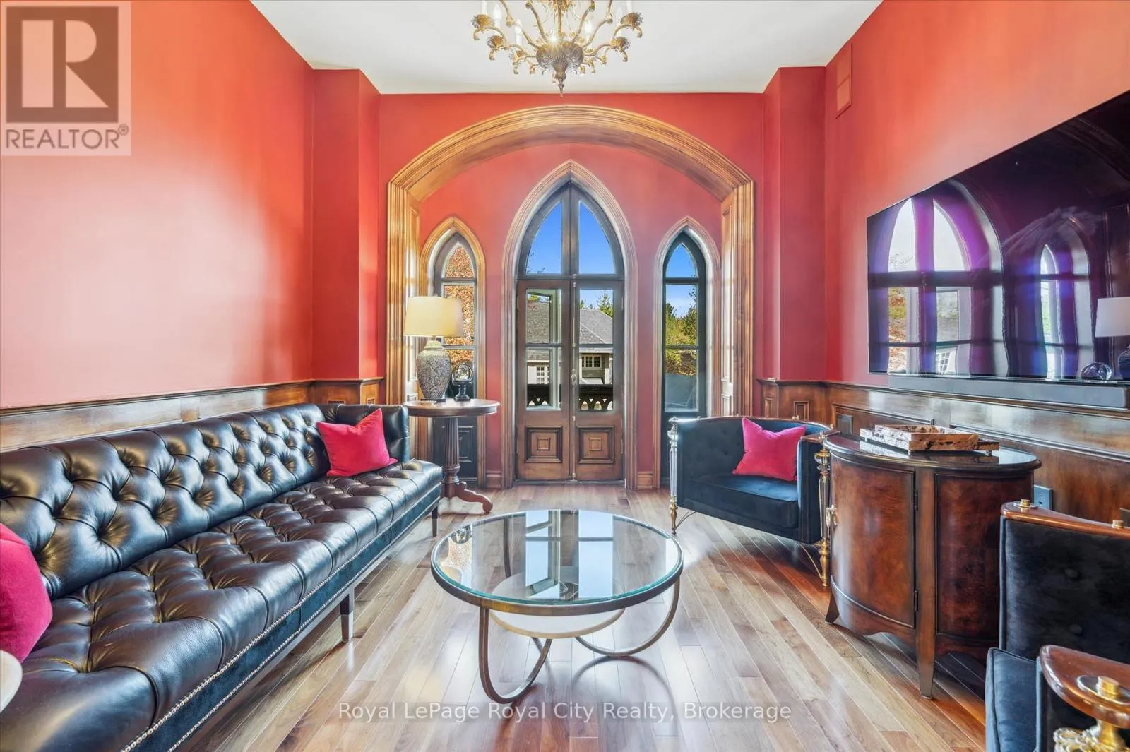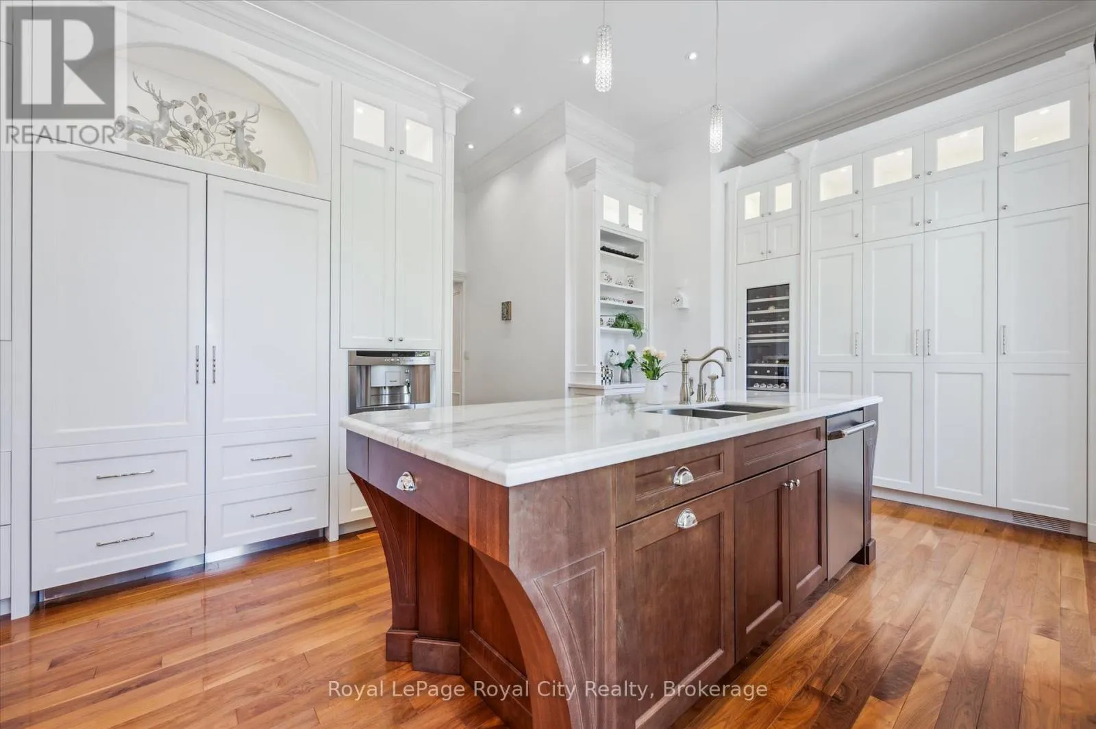 Cross Streets: Wellington X Edinburgh. ** Directions: Visitor Parking Located just beyond the main residence. An Heirloom of Guelphs Heritage, Reimagined for the Modern Era. Long before glass towers dotted our skyline, this stone Georgian mansion was standing proud by the Speed River. Built in 1850, it remains one of Guelphs most admired heritage properties. Today, this historic residence has been thoughtfully restored and transformed into a private enclave of luxury condominiums, where history meets modern convenience. Residence 15 is set within the original mansion itself, spans 3,600 sqft and embodies a harmony of heritage and sophistication. Inside, you'll find two bedrooms, three baths with a private elevator and will feel the elevated sense of space which is revealed through soaring 11-12 ft ceilings, custom millwork, imported Italian marble, rich walnut hardwood, and handcrafted designer fixtures. Floor-to-ceiling French windows, in every room, bring abundant natural light and connect interior spaces with elegance. At the heart of the residence lies a chef's kitchen of distinction. Anchored by a professional-grade 5pc Thermador suite - including an exceptional 8-burner gas range, seamlessly integrated appliances, a dedicated wine fridge and coffee system - it is designed for those who entertain with refinement and cook with passion. A true sanctuary, the principle suite boasts separate custom closets and a 5pc luxury ensuite featuring a freestanding soaking tub perfectly positioned to enjoy the scenic view. Riverside walking trails are just steps away, connecting you back to the very landscape that has shaped Guelphs history. Manor Park affords true lock-and-leave convenience with no outdoor maintenance, ideal for discerning travellers or multi-residence owners. It's super prime location places you within moments of top restaurants, private golf club, downtown Guelph and easy access to the express. This extraordinary historic residence awaits its next steward - come discover it through a private tour. (id:27476)