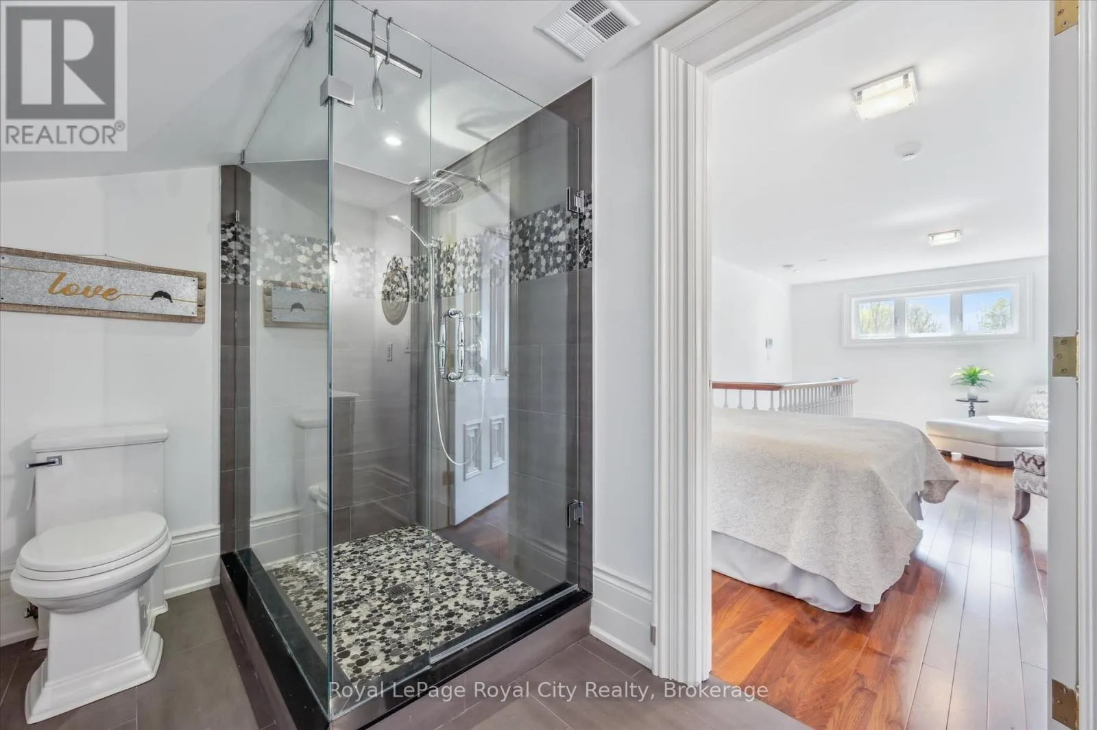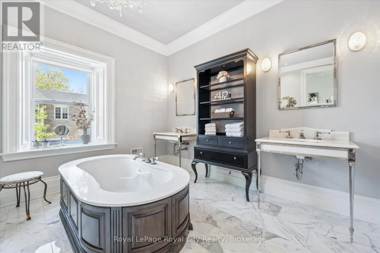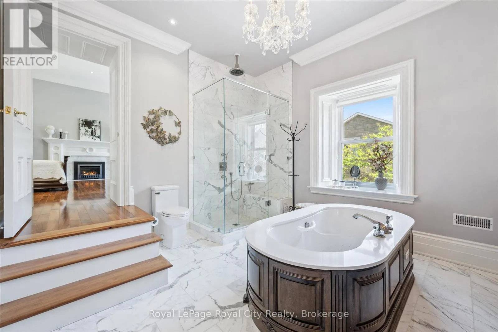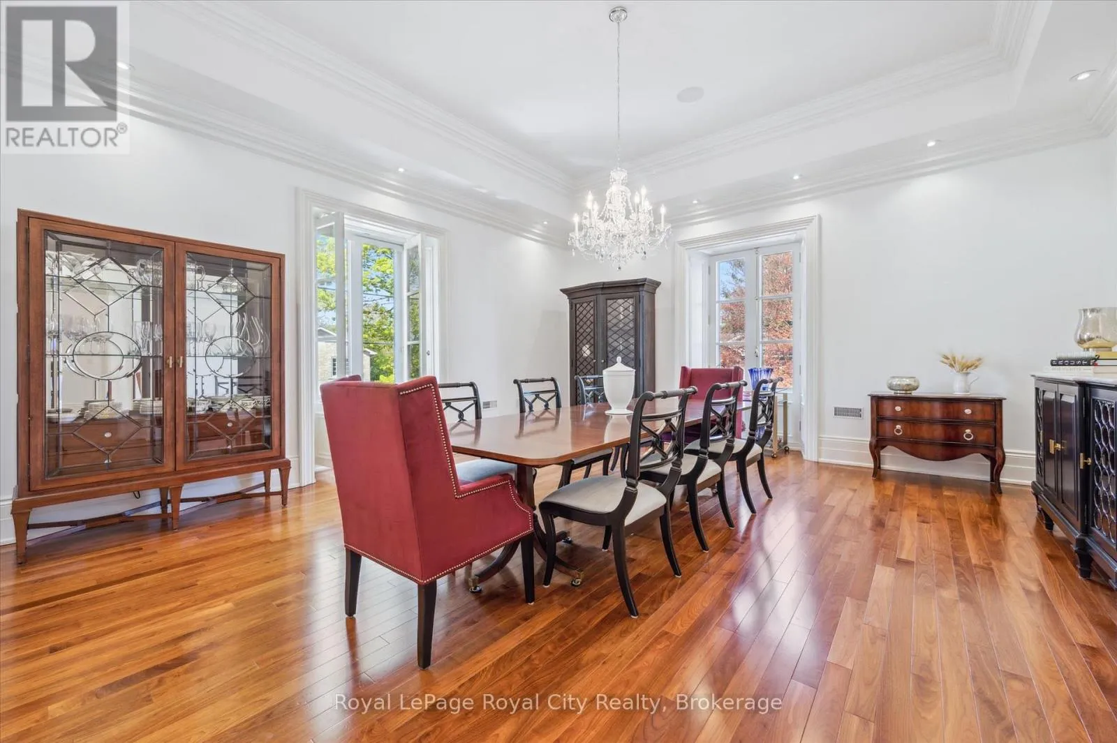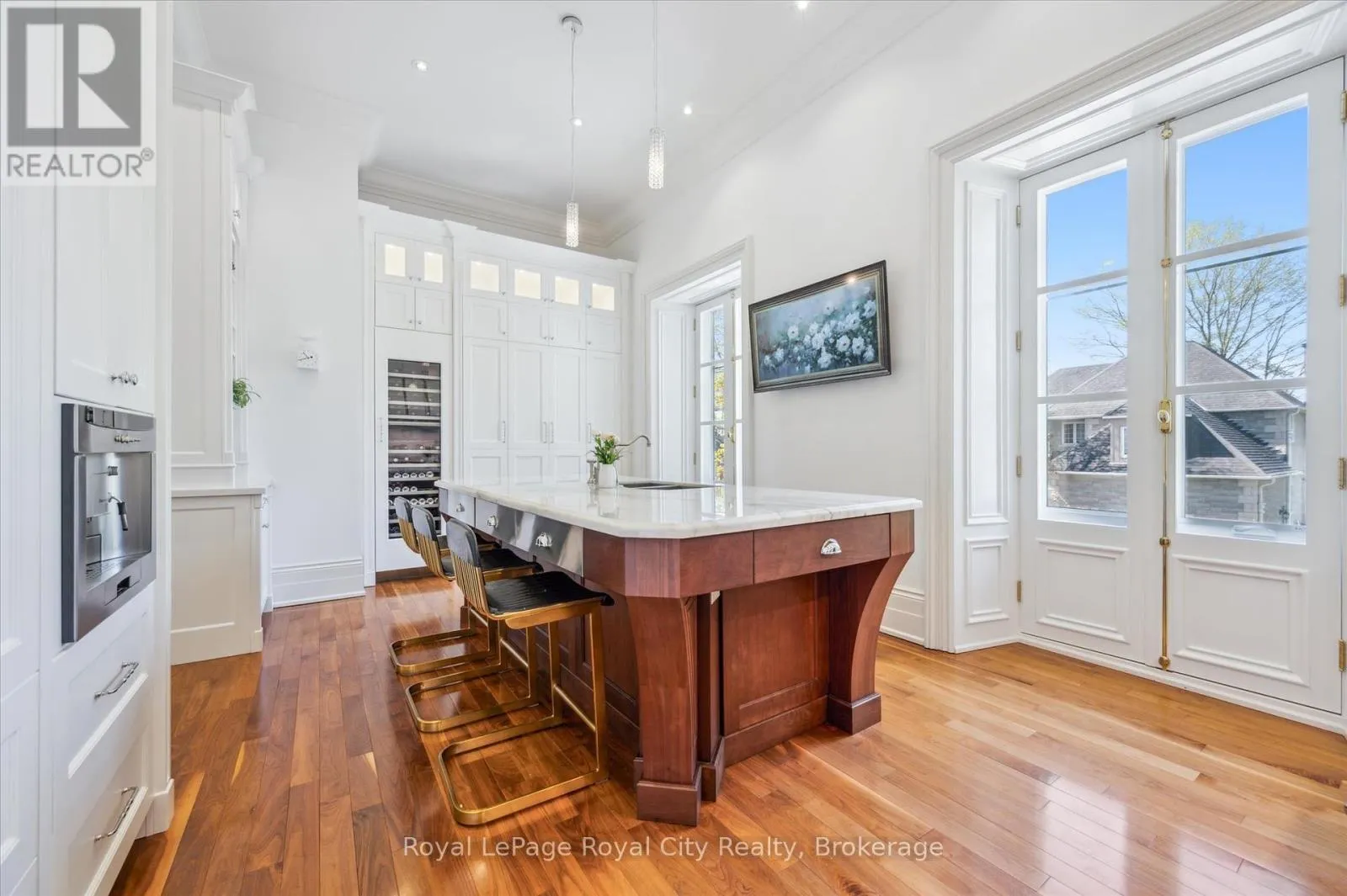 Cross Streets: Wellington X Edinburgh. ** Directions: Visitor Parking Located just beyond the main residence. An Heirloom of Guelphs Heritage, Reimagined for the Modern Era. Long before glass towers dotted our skyline, this stone Georgian mansion was standing proud by the Speed River. Built in 1850, it remains one of Guelphs most admired heritage properties. Today, this historic residence has been thoughtfully restored and transformed into a private enclave of luxury condominiums, where history meets modern convenience. Residence 15 is set within the original mansion itself, spans 3,600 sqft and embodies a harmony of heritage and sophistication. Inside, you'll find two bedrooms, three baths with a private elevator and will feel the elevated sense of space which is revealed through soaring 11-12 ft ceilings, custom millwork, imported Italian marble, rich walnut hardwood, and handcrafted designer fixtures. Floor-to-ceiling French windows, in every room, bring abundant natural light and connect interior spaces with elegance. At the heart of the residence lies a chef's kitchen of distinction. Anchored by a professional-grade 5pc Thermador suite - including an exceptional 8-burner gas range, seamlessly integrated appliances, a dedicated wine fridge and coffee system - it is designed for those who entertain with refinement and cook with passion. A true sanctuary, the principle suite boasts separate custom closets and a 5pc luxury ensuite featuring a freestanding soaking tub perfectly positioned to enjoy the scenic view. Riverside walking trails are just steps away, connecting you back to the very landscape that has shaped Guelphs history. Manor Park affords true lock-and-leave convenience with no outdoor maintenance, ideal for discerning travellers or multi-residence owners. It's super prime location places you within moments of top restaurants, private golf club, downtown Guelph and easy access to the express. This extraordinary historic residence awaits its next steward - come discover it through a private tour. (id:27476)