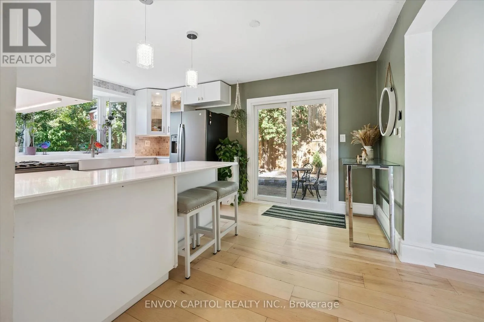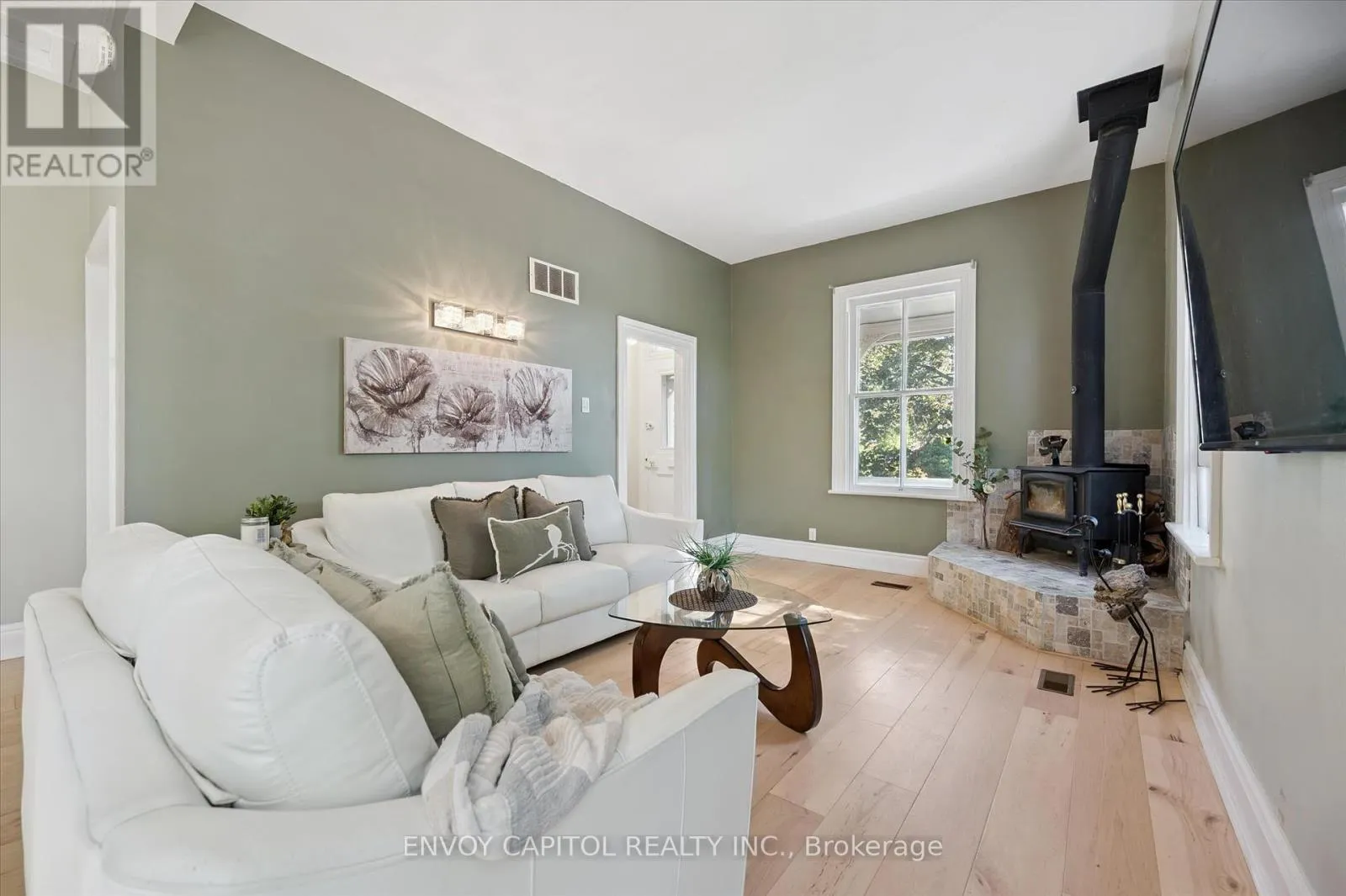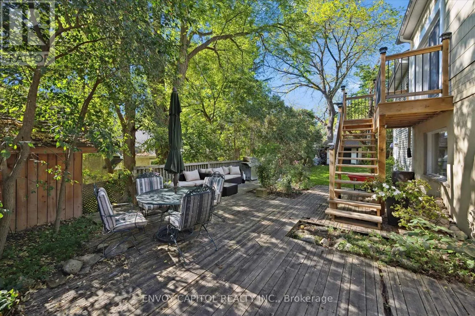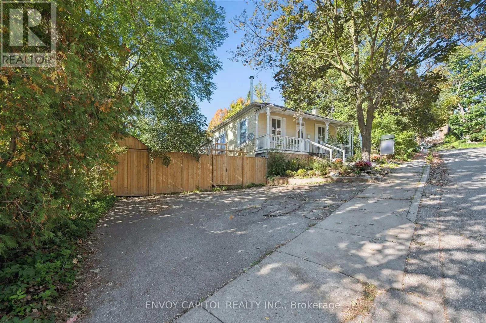 Cross Streets: King St/Eramosa Rd. ** Directions: south of King St, north of Mitchell St. Adorable circa 1875 build set on a generous and private 75' x 117' lot. The house is set on a hill and is surrounded by mature trees making this home all the more magical. Ideally located close to trendy downtown shops and dining, Speed River trails, the Go Station and a short drive to University of Guelph. The home has been lovingly renovated top to bottom and is perfect for first-timers and right-sizers. The chef inspired kitchen, complete with eat-in peninsula, gas stove, and new appliances grant easy and welcoming entertaining opportunities. Directly off the kitchen is the open concept dining and living rooms allowing for a functional and airy layout with 10ft ceilings. After dinner cozy up and enjoy the crackle of the wood stove while you relax in this welcoming space. 2 bedrooms off this area make for convenient sleeping quarters. A fully renovated bathroom with awe-inspiring walk-in glass shower completes this floor. The walkout basement is the definition of flex space in this house. An in-law suite, kids quarters, secondary entertaining space or even a potential rental income stream could be considered for this lower level retreat. Through the basement walkout, privacy abounds in the much desired greenspace that this property lends to you. With rolling hills, a large sun filled deck and a handy storage shed this property exudes charm and character! Updates: kitchen reno (23-24), furnace (25), ac (24), fencing (25), deck and stairs (24), windows/doors (24), appliances (23), washer/dryer (23), water softener (22). (id:27476)