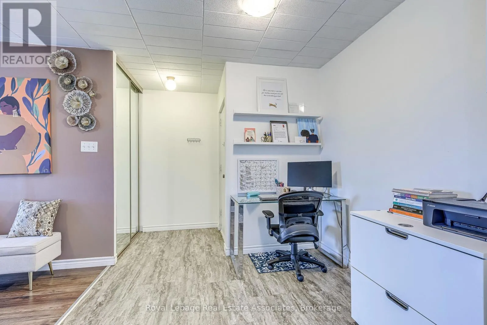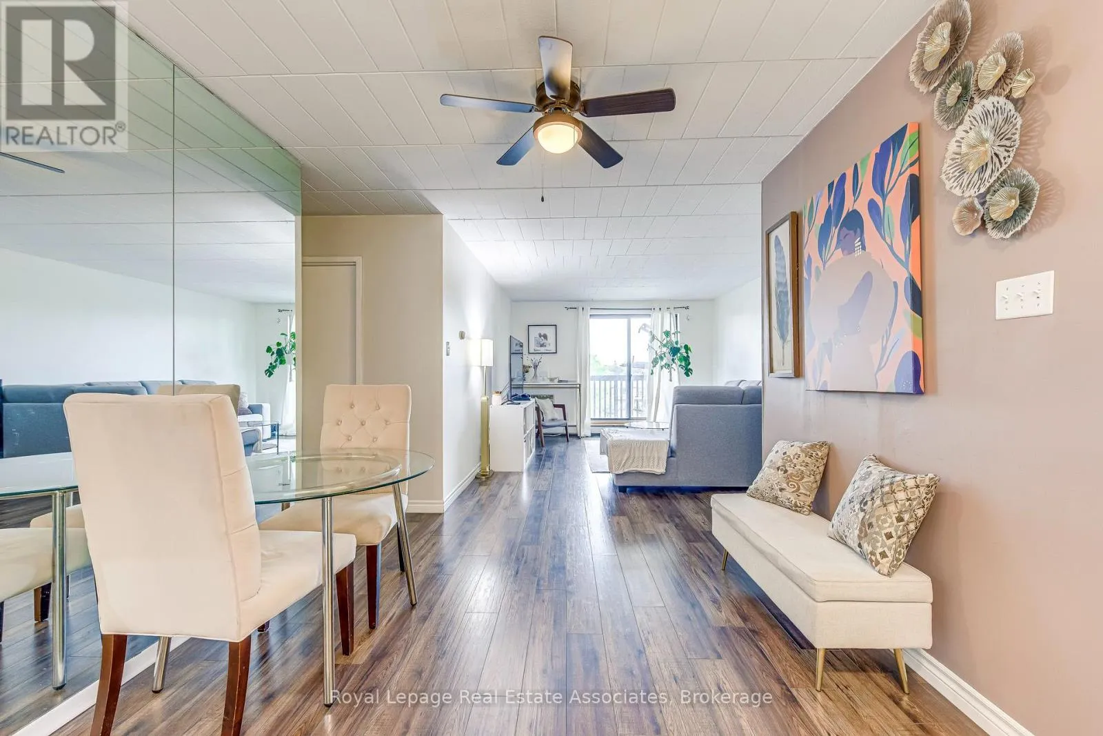 Cross Streets: College & Conroy. ** Directions: Turn On Conroy off Of College St. This charming 1-bedroom condo offers easy living and exceptional value in a well-maintained building in Guelphs sought-after south-west end. Featuring a spacious open-concept layout, a beautifully renovated bathroom, and balcony access from both the living room and bedroom, this unit is bright and inviting. Enjoy peaceful surroundings just steps from Crane Off-Leash Dog Park, the Royal Recreation Trail, and the Speed River.The building has seen numerous recent updates and is professionally managed with great care. Monthly condo fees include heat, hydro, water, laundry facilities, visitor parking, and upkeep of common areas and grounds. The unit also includes an assigned locker and dedicated parking space. Conveniently located near a Guelph Transit stop, with Stone Roads shops, cafes, restaurants, groceries, and banks all just minutes away on the same route. (id:27476)