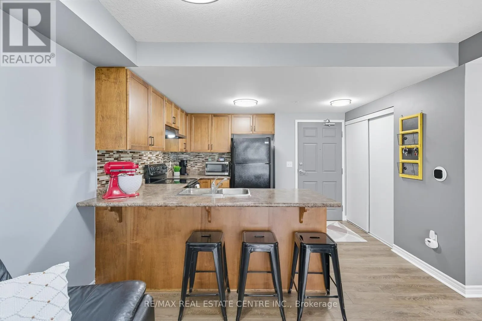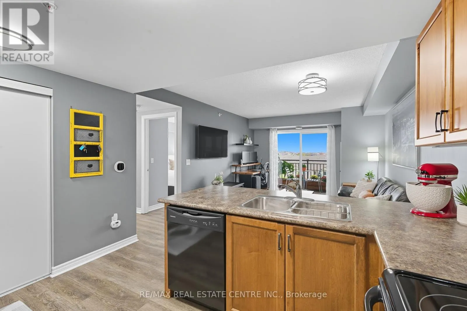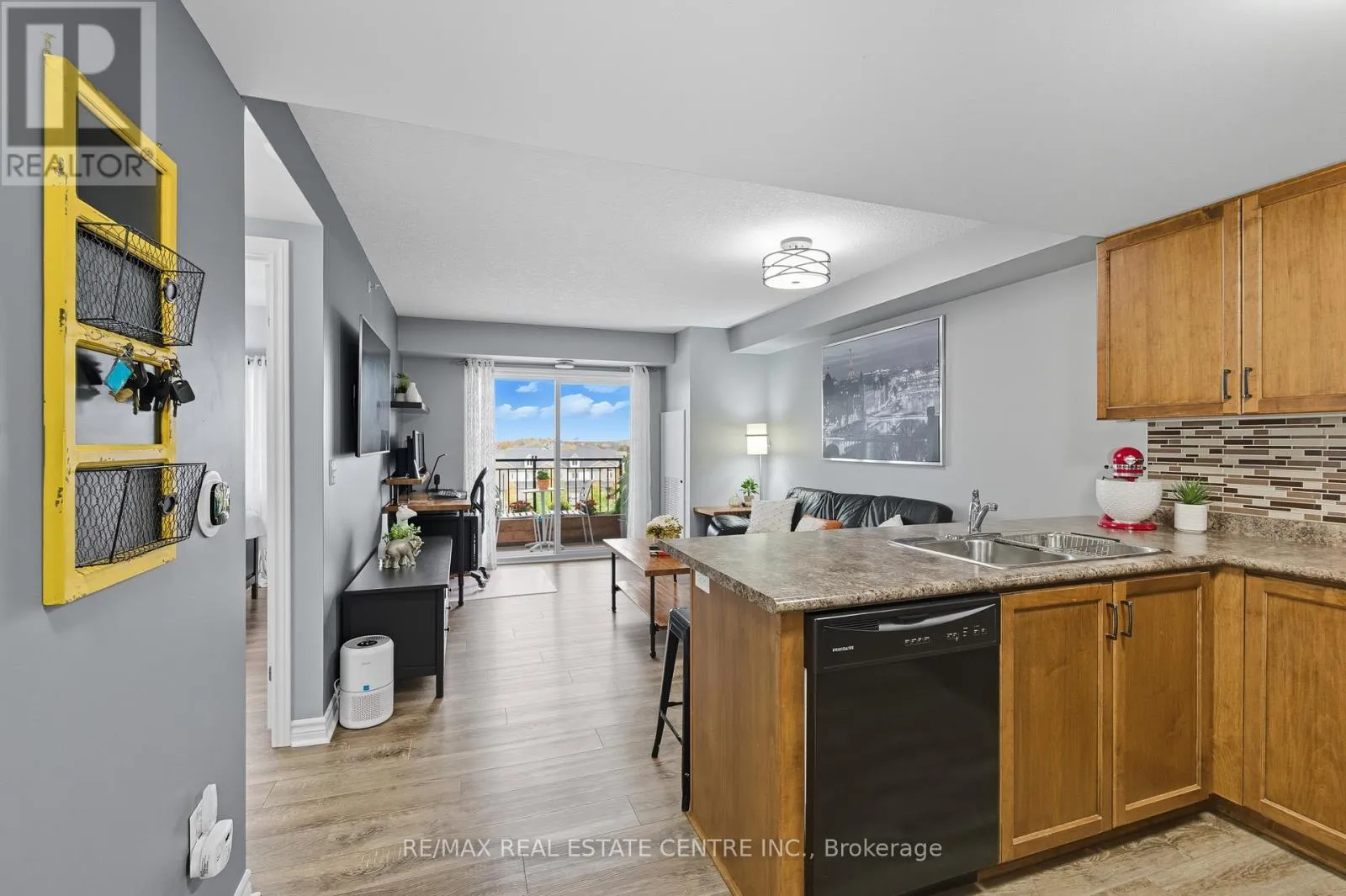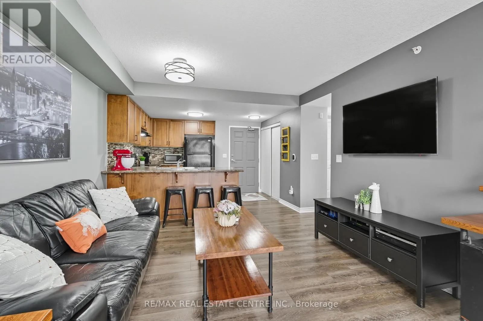 Cross Streets: Clair Rd.E. & Victoria Rd. E. ** Directions: Clair Rd. E. to Samuel then right on Kingsbury Sq. One of the best price you will find in Guelph Southend. A beautifully renovated top-floor condo in one of Guelphs most convenient south-end communities. This bright 1 bedroom suite offers an open concept living and dining area with modern finishes, a stylish upgraded kitchen, the large window & sliding doors allows the living space with natural light. Located on the top floor of a quiet, well managed 4 storey building, this unit offers both privacy and comfort with in-suite laundry, owned water softener, and low monthly condo fees. Enjoy the unbeatable location, walk to grocery stores, restaurants, fitness centres, banks, and movie theatres, or take a direct bus to the University of Guelph. Quick access to Highway 6 and the 401 makes commuting to Kitchener-Waterloo, Cambridge, Milton, or the GTA a breeze. Perfect for first-time buyers, investors, or down-sizers looking for a move-in-ready home in a growing, highly desirable neighbourhood. (id:27476)