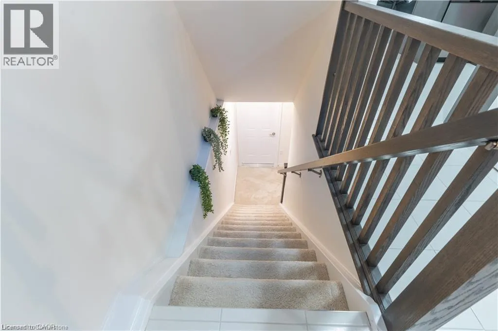 Victoria North / Woodlawn Welcome to this beautifully designed stacked townhome at 85 Mullin Drive Unit #20B, Guelph, where style, functionality, and location come together seamlessly. The main level offers a spacious 2-piece bathroom and an open-concept living area with a walkout to a private deckâperfect for summer BBQs or relaxing by a fire table. Downstairs, the rare walk-out basement adds brightness and convenience, featuring two generously sized bedrooms with large windows, a full 3-piece bathroom, in-unit laundry, cold storage, and hidden utility space for a sleek, uncluttered feel. Enjoy parking right at your front door, ample visitor parking, and a vibrant, family-friendly community filled with parks, splash pads, trails, and nearby conservation land. This move-in-ready gem truly checks all the boxesâmodern comfort in a peaceful, connected neighborhood. (id:27476)