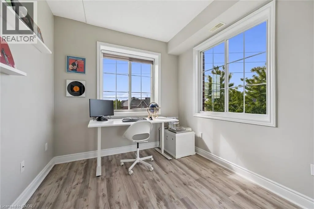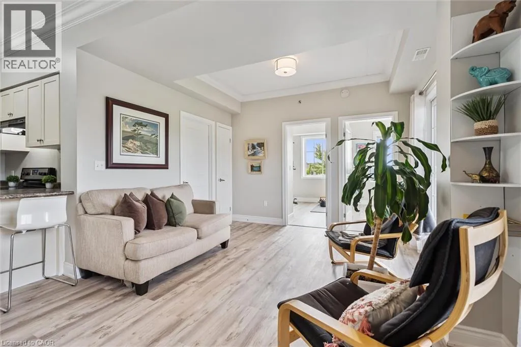 Gordon St between Arkell and Lowes Check everything off your list! This rare THREE bedroom TWO bathroom END UNIT condo with UNDERGROUND PARKING and oversized BALCONY is just minutes from South Guelph's best amenities including the University of Guelph! Step inside the foyer to a thoughtfully designed split floorplan layout with nine foot ceilings! The classic shaker kitchen features plenty of cabinetry including a handy eat-up breakfast bar and modern stainless steel appliances. The large, bright living room has new warm textured flooring throughout and DUAL sliders to a spacious and private balcony. The primary bedroom is nearby, complete with three piece ensuite. Conveniently located on the opposite side of the unit are two additional bedrooms with their own four piece bathroom. Rounding off the floorplan is a handy in-suite laundry room. This unit also includes an underground parking space (conveniently located right by the side entrance doors and elevator!) as well as a storage locker on the same floor! Steps from Pineridge Park, excellent restaurants, amenities and transit and of course the University of Guelph. An immaculate unit in an excellent location. (id:27476)