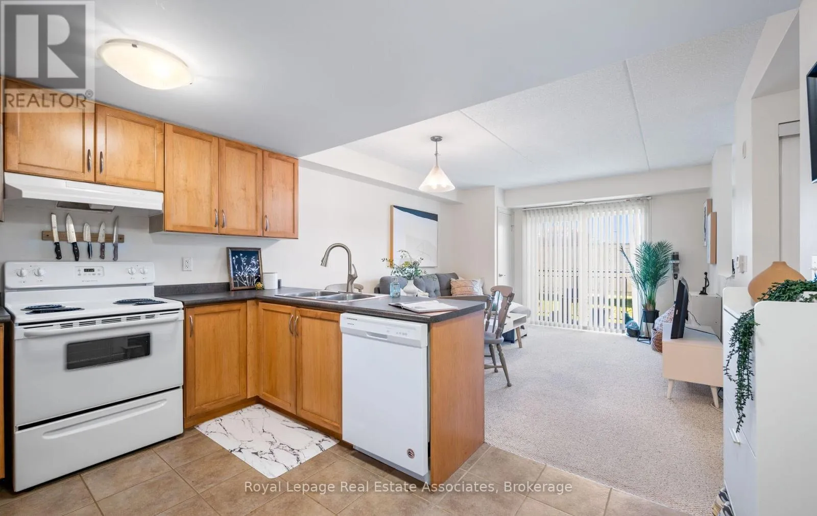 Cross Streets: Gordon / Clair Rd E. ** Directions: Clair Rd E to Farley Dr. Unbeatable price with low condo fees for this stunning sun-filled 1+1 bedroom condo in the desirable South end of Guelph. Super convenient location within walking distance to literally everything you need and only a 10 minute drive to the 401. This 700 plus square foot condo is perfect for people who work from home as the office/den room is larger than most. You can likely put a daybed and your desk in there making it so versatile. The large primary bedroom has great closet space and can fit a king bed no problem. Since there isn't a locker, its amazing how much stuff you can fit into the large laundry room and you may be able to rent a locker thru the building. This unit is completely safe and you will love to sit outside on your extremely private and quiet patio. (no one walks by). There is easy access to the building from the additional side door of the building. Never worry about waiting for elevators in this main floor unit. Yes, there is carpet but its super clean and in mint condition which also means its so comfy on your feet especially in the winter so there's no need for slippers! Tons of restaurants, groceries, fitness clubs, shoppers, yoga, coffee shops, walking trails, parks, public transit, movie theatre and more, all within walking distance. Don't miss this opportunity to buy a fantastic condo with extra low fees! (id:27476)