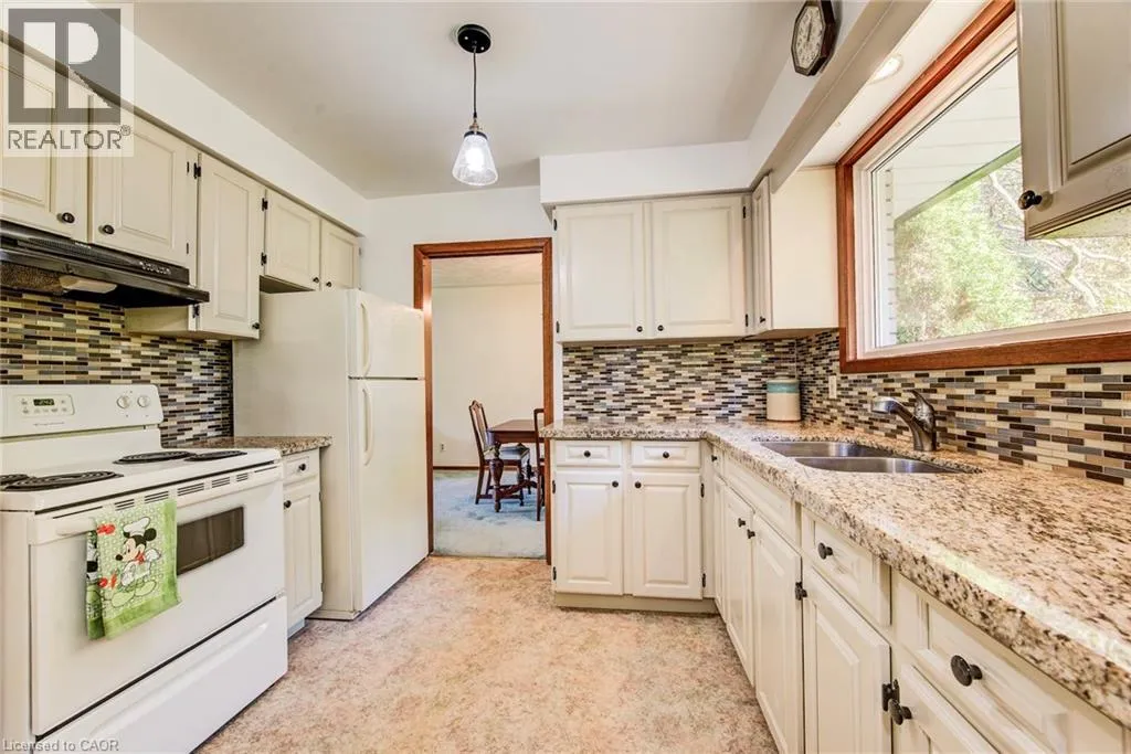 HIGHWAY 6 Charming 4-Bedroom Bungalow in Guelph! Welcome to this spacious 4-bedroom, 2-bathroom bungalow, ideally located in a family-friendly neighborhood just minutes from Highway 6, shopping, playgrounds, schools, and more! The main floor features a bright and inviting living room with a large front window, seamlessly connected to the dining areaâperfect for gatherings. The eat-in kitchen boasts granite countertops, ample cabinetry, and a walk-out to a backyard deck, ideal for outdoor entertaining. Three generously sized bedrooms on the main level each offer their own closet space. Downstairs, the 1 car garage offers an entry into the home where you'll find the fourth bedroom, a large recreation room, and plenty of storage. The laundry area includes a convenient stand-up shower and a 2-piece bath. With a few modern updates and your personal touch, this home offers incredible potential to become the perfect family haven. This property also features a durable steel roof, providing lasting protection and low maintenance for years to come. (id:27476)