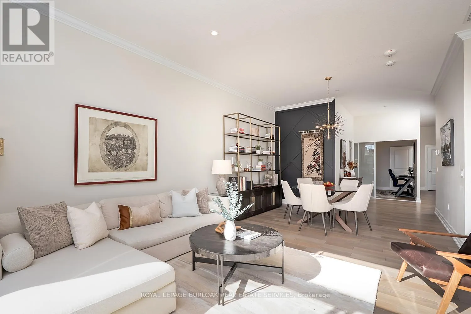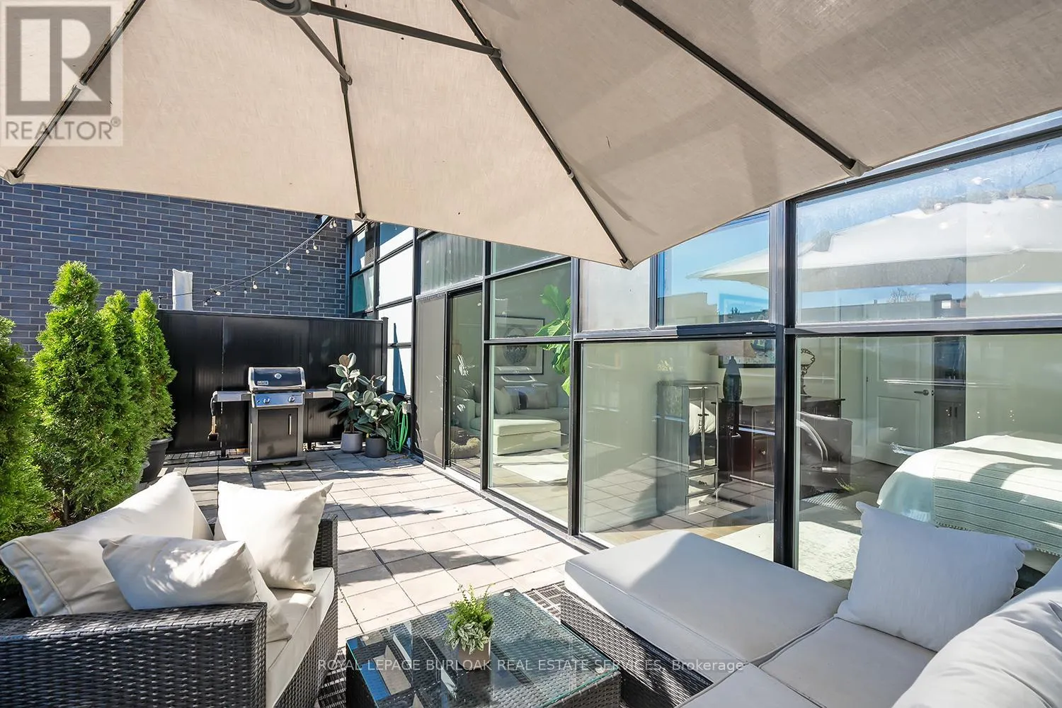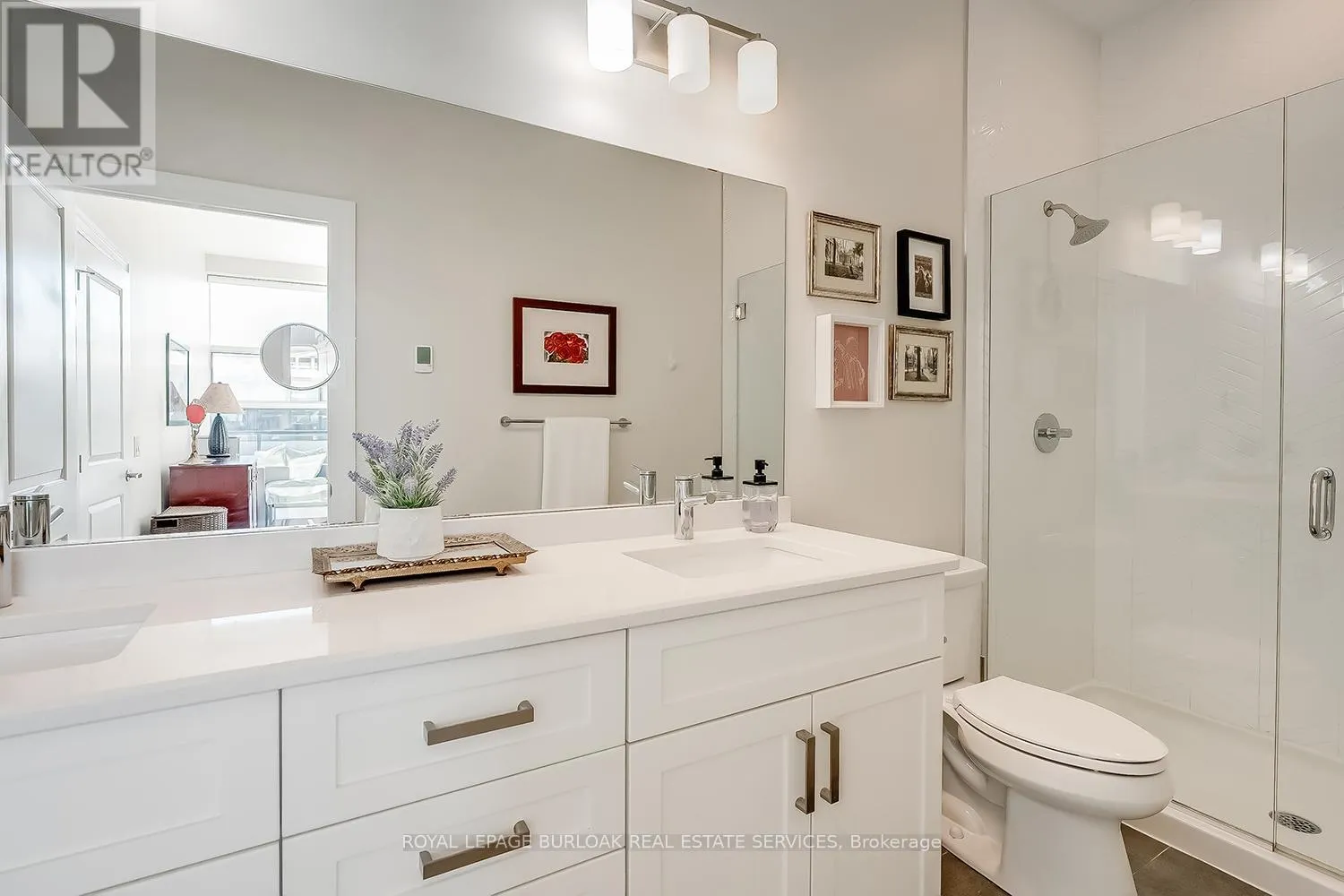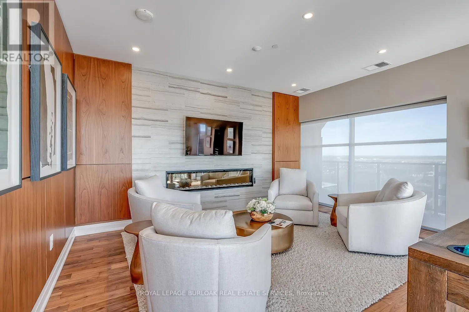 Cross Streets: Clair Rd W. ** Directions: South of Clair Road W, East of Hwy 6. Located in the heart of a vibrant community, this stunning 2 bedroom, 2 bathroom condo offers 1,464 square feet of luxurious living space and a 294 sq. ft. south facing terrace, perfect for entertaining or relaxing outdoors. Inside, 10 foot ceilings, hardwood flooring, LED pot lights, and floor to ceiling windows create a bright, elegant atmosphere. The kitchen is beautifully appointed with custom cabinetry, quartz countertops, an eat at island, Whirlpool stainless steel appliances, a custom backsplash, under cabinet lighting, and two double pantries. The open living/dining area features an electric fireplace, accent wall, and walk out to the terrace. The primary suite offers floor to ceiling windows, a custom walk in closet, and a spa like ensuite with double vanity, heated floors, and a glass shower with floor to ceiling tile. The second bedroom includes a double closet and frosted glass doors, while the main bath features a quartz topped vanity, soaker tub, and heated floors. A spacious laundry room with built in cabinetry provides excellent storage. Residents enjoy top tier amenities such as a golf simulator, games and party room with stunning views, exercise room, and elegant lobby. Steps to restaurants, shops, and entertainment, and minutes from Springfield Golf & Country Club. Includes two parking spaces (P2 #24 and #90) (id:27476)