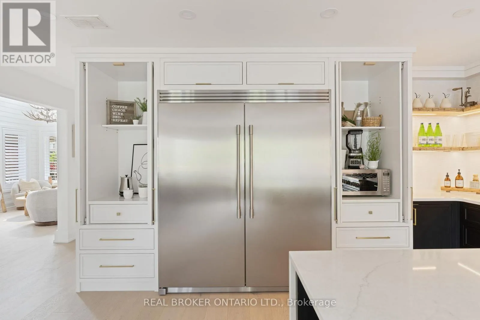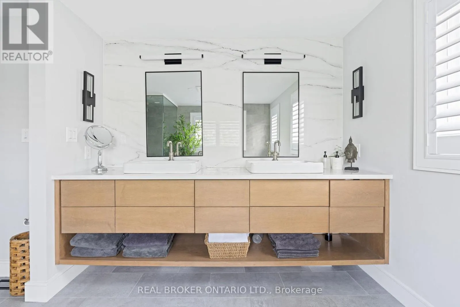 Bard Blvd/Summerfield Dr Where elevated style meets effortless comfort--discover this beautifully appointed detached home in Pineridge, Westminster Woods community. Set on a peaceful court, this warm and welcoming home features over 3,100 sq ft of total living space across three well-planned levels. With no direct neighbours behind, backing onto greenspace. The main level features an open concept living/dining area with soaring 21' floor to ceiling clapboard and custom cabinetry with vintage wood inlay. Designed with both function and flair, the gourmet kitchen impresses with high-end finishes including quartz countertops,an11-foot waterfall island, custom cabinetry, and vintage hand-hewn wood open shelving. Culinary enthusiasts will appreciate the Monogram 6-burner gas cooktop and the oversized Frigidaire side-by-side. The open-concept family room features a stunning 61" linear gas fireplace, framed by sleek quartz floating benches & elegant art niches. A built-in floating desk creates a stylish and functional workspace, while a walk out door leads seamlessly to the upper deck and private backyard--perfect for sunrise & coffee. Engineered Oak hardwood floors in Alpine finish, flow seamlessly through the main level. With over 400K in renos, no expense was spared to create this elevated lifestyle. The second floor features four spacious bedrooms and two large 5pc bathrooms. The master ensuite boasts dual sinks, heated floors, a curbless steam shower, and a luxurious soaking tub. And the piece de resistance? The fully finished lower level offers a versatile self-contained living space perfect for multi-gen. living, guests or potential rental income. It features a full kitchen, bathroom, laundry, and a spacious living area, with a walkout that leads directly to the backyard and hot tub for those relaxing nights with the trees & stars. 10 mins to 401, walk to schools, 3km to UofG. An exceptional home and lifestyle to put down roots, raise a family, or build long-term value. (id:27476)