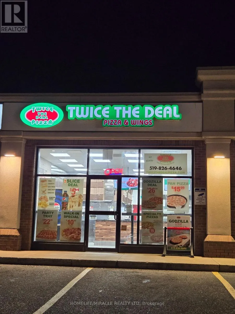 Imperial RD/Wellington St Turnkey Franchise Opportunity - Twice The Deal Pizza, Guelph This well-established pizza franchise, Twice The Deal Pizza is located at 715 Wellington St W, a high-traffic corner at Imperial Road South in Guelph's west end. Current owner is operating since 2019, this profitable business including steady school orders from St. Francis of Assisi and St. Peter Catholic School, averaging $1,400/week. The 977 sq ft unit features seating for 4, a loyal customer base, and reliable staff (1 FT, 4 PT, plus dedicated drivers). Rent is $3,289.48/month (incl. TMI & HST), with utilities averaging $1,000/month. Franchise transfer fee is $25,000, split between buyer and seller. Ideal for hands-on operators seeking immediate possession and a proven revenue stream. Seller is stepping away for family time-your chance to step into a thriving business with brand recognition and growth potential. (id:27476)