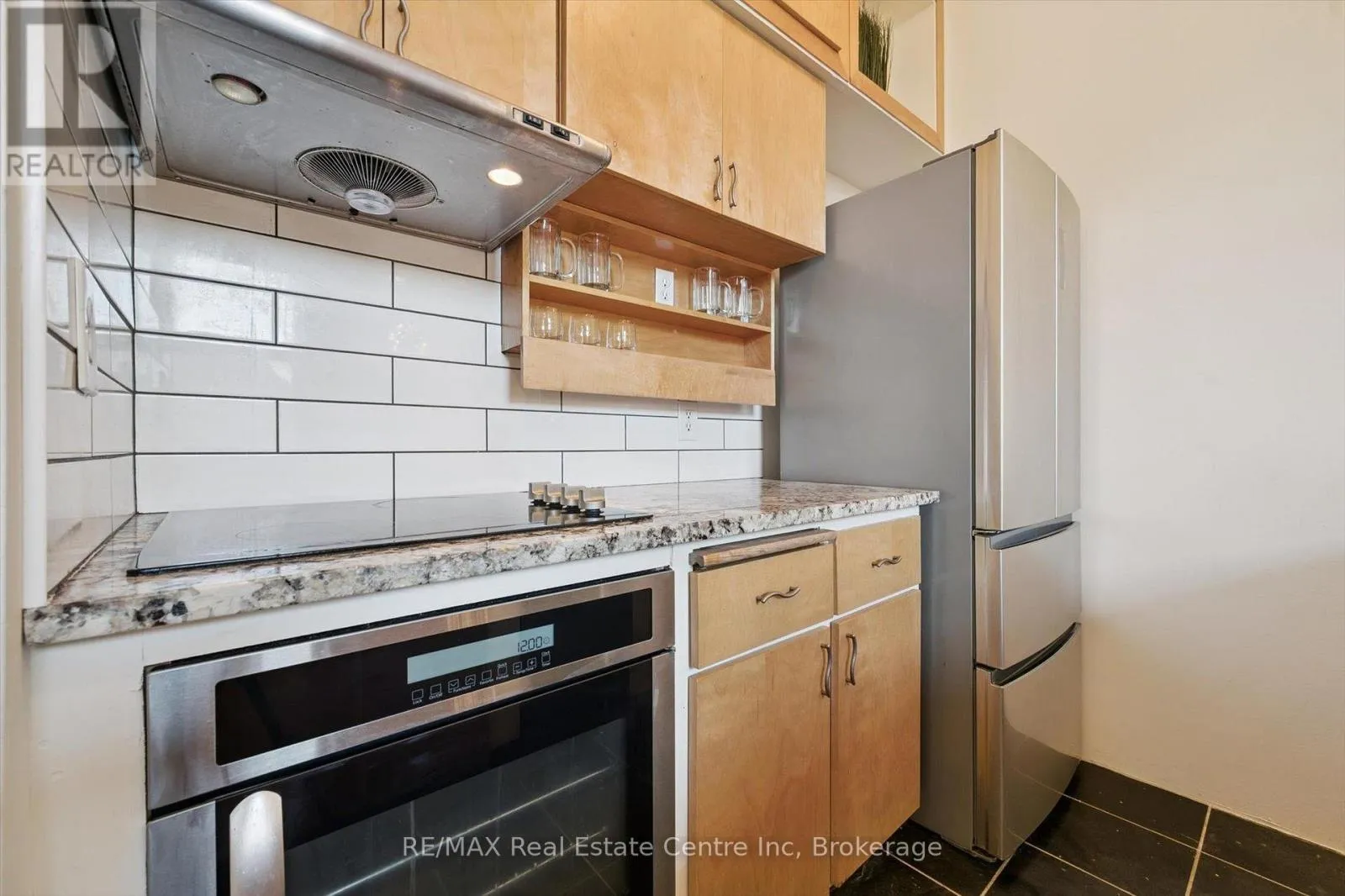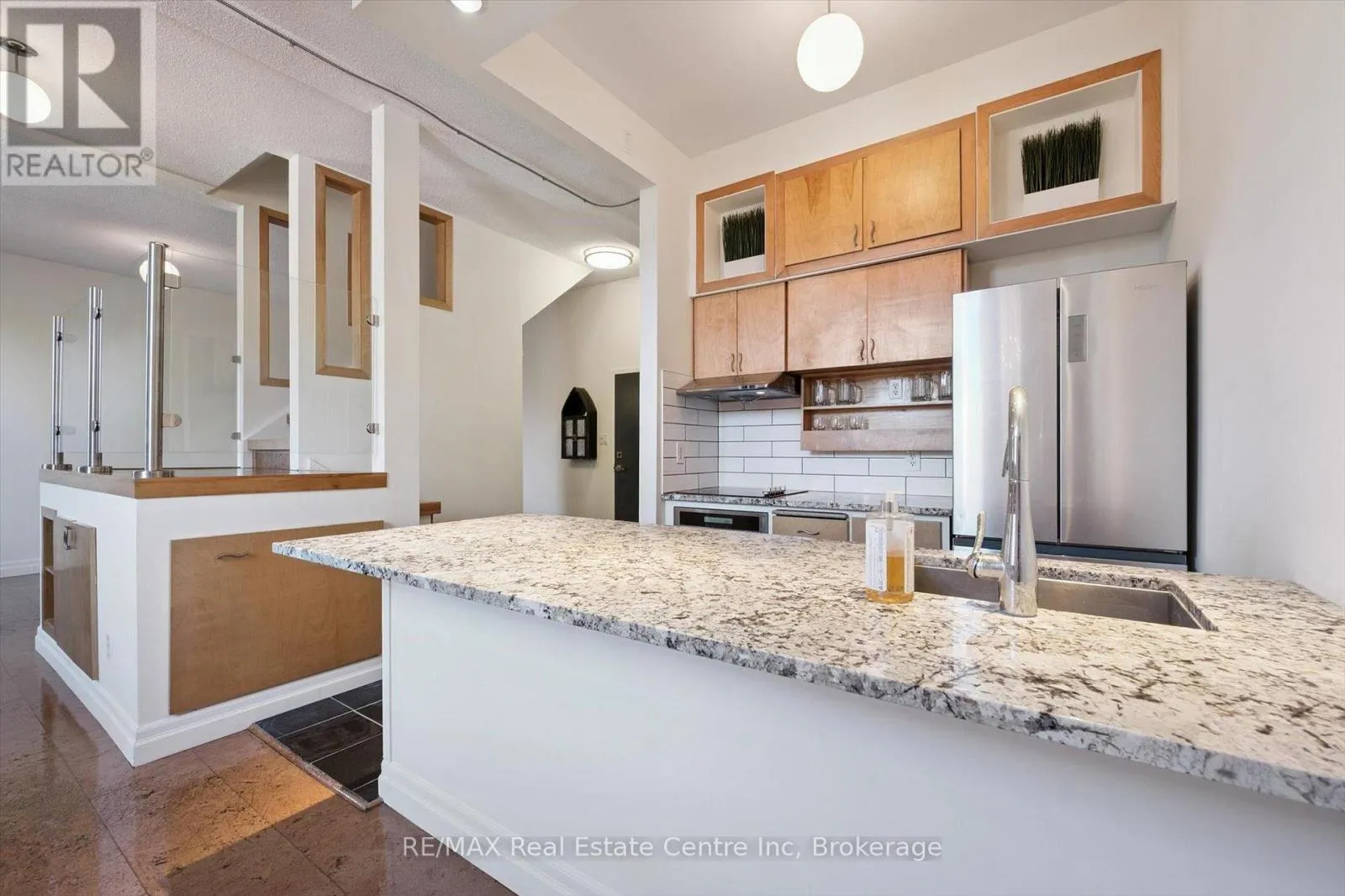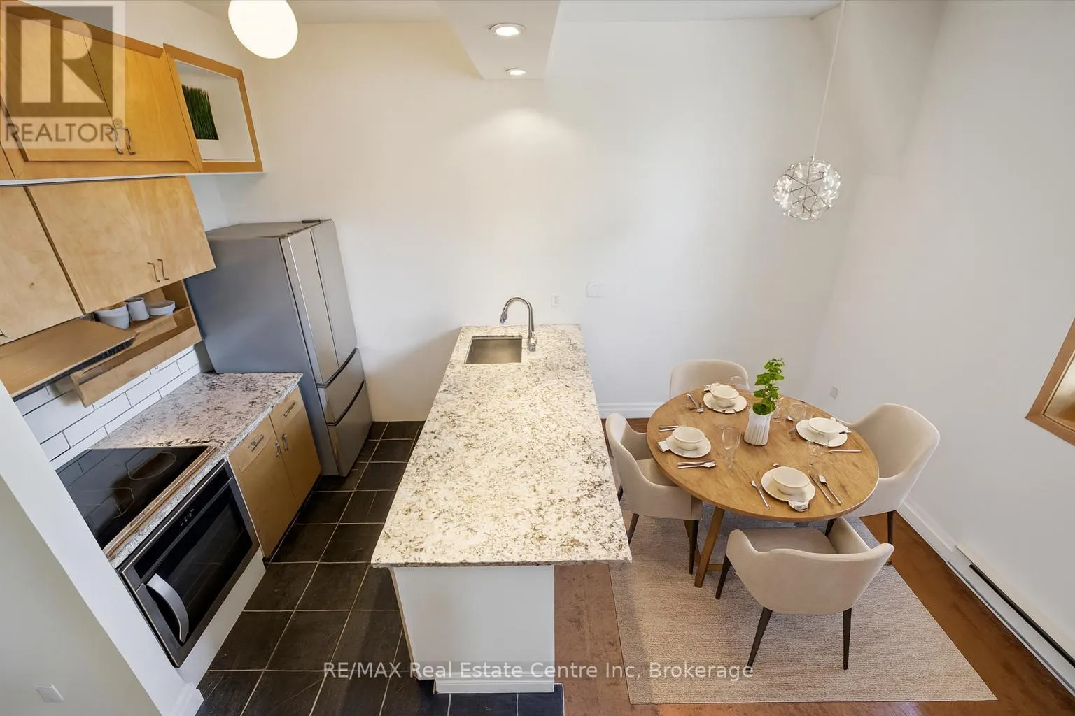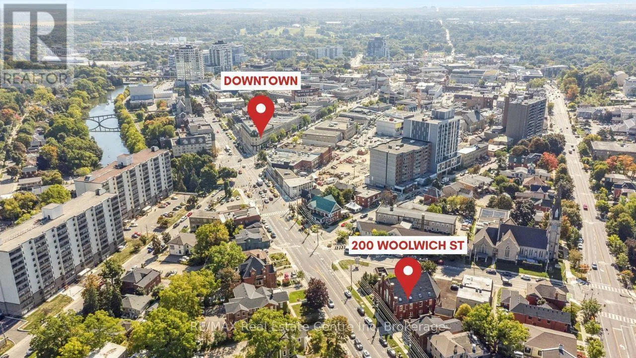 Suffolk St E Welcome to your downtown Guelph sanctuary at 202-200 Woolwich St-charming 3-bdrm, 2-storey loft condo nestled in one of the city's most exclusive residential buildings! This is one of 7 architecturally significant homes carved from the majestic 1908 stone structure of St. Paul's Cathedral, thoughtfully restored into boutique collection of loft-style residences. Inside you'll find perfect blend of historic character & modern finishes. Main floor opens to living room where natural light pours through oversized window framed in wood. Warm cork floors adds eco-friendly touch underfoot while 10ft ceilings offer breathing room & presence. The home's original brick walls quietly insulate against urban noise creating a serene escape. Home features AC-luxurious bonus that ensures yr-round comfort! Chef-inspired kitchen W/quartz counters, S/S appliances, backsplash & centre island for casual dining & entertaining. Main-floor powder room is tucked away for guests along W/smartly designed under-stair storage-perfect for seasonal items & everyday organization. Wood & glass staircase leads to upper level where you'll find 3 large bdrms each bathed in natural light from oversized skylights that infuse the rooms W/warm & airy glow. It's almost unheard of to find 3 true bdrms in a condo setting making this a standout choice for families, work-from-home buyers or anyone who values room to breathe. Stylish 4pc bath with shower/tub & in-suite laundry room W/add'l storage. Outside a private courtyard invites you to BBQ, sip a drink & unwind. Situated in vibrant core of downtown you'll be steps from cafés, bakeries, pubs, library, GO & VIA Rail station & Farmers' Market. For culture & entertainment venues like River Run Centre, Bookshelf Cinema & Sleeman Centre are within walking distance. Walking trails along nearby river are practically outside your door. This isn't just a place to live, it's a rare opportunity to own a piece of Guelph's history thoughtfully reimagined for modern life. (id:27476)