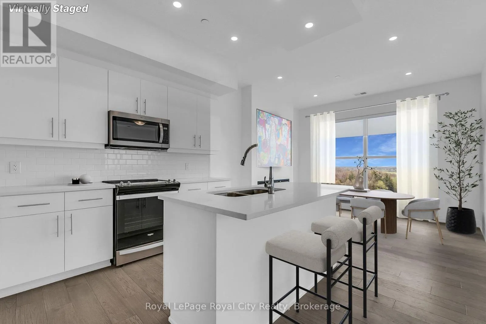 Cross Streets: Poppy Lane. ** Directions: Gordon Street south of Poppy Lane. Available Immediately for a one year lease. You'll love the exceptional floor plan that this 2 bedroom, 2 bath corner unit offers. Sun floods every room and you can take in morning sunrises as well as sunsets from the wrap around balcony. The kitchen is worthy of any chef and features loads of counter space, stainless appliances, stone counters and a large island that is perfect for casual meals. The adjacent dining room offers a larger space for more formal dining. The living room with its fireplace is open to the kitchen and dining room and full windows take in the southern exposure. Comfortable and nicely designed, the west-facing primary bedroom boasts a walk-in closet and a great ensuite with walk-in shower and double sinks. The second bedroom also faces west and is quite spacious. A lovely 4pc bath is conveniently placed in the hallway between the bedrooms. Set in a building that offers an impressive list of amenities like a guest suite, gym, party room and golf simulator. The location can't be beat! Around the corner from groceries, library, restaurants and movie theatre. It's prime for those commuters needing easy access south towards the 401 as well. (id:27476)