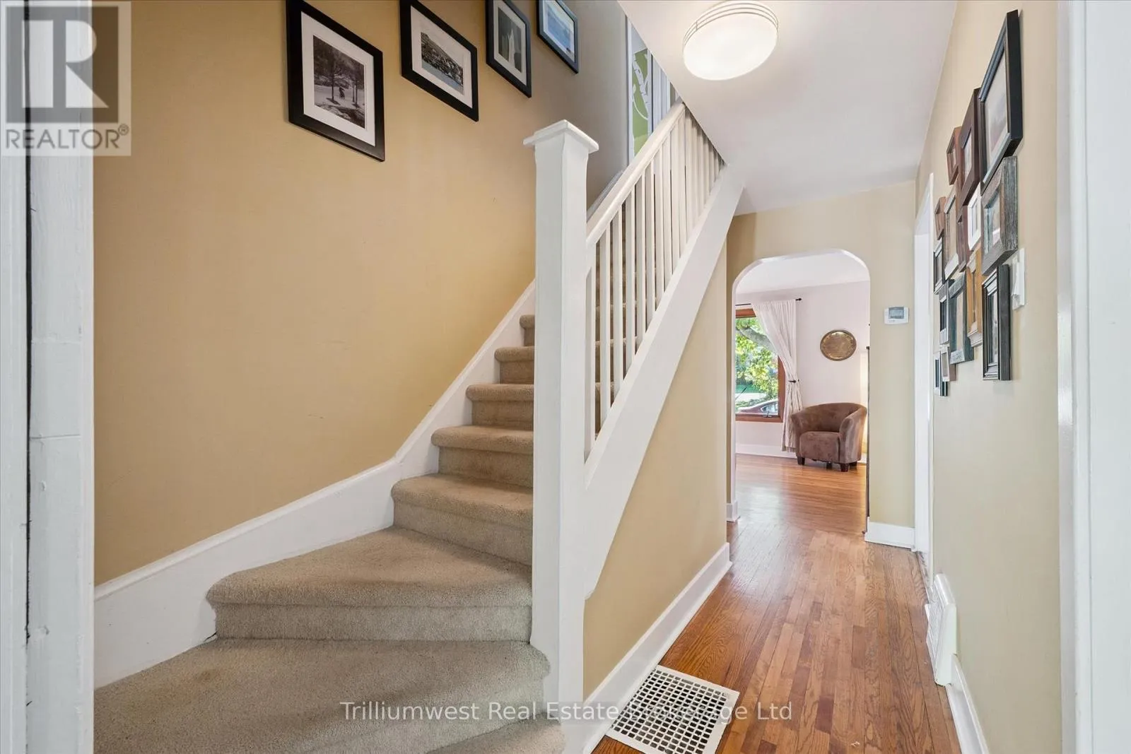 Cross Streets: York Rd to Armstrong Ave. ** Directions: York Rd to Armstrong Ave. Ideally located just minutes from downtown Guelph and the University of Guelph campus, this bright and inviting home offers both charm and convenience in a safe, friendly, and family-oriented neighbourhood.Steps away from the Eramosa River Park and Trail, this beautiful property sits on a quiet, tree-lined street shared with only five other homes. Inside, the versatile main floor features a bright kitchen, 4-piece bathroom, living room, dining room, and a sunny back room overlooking the yard-perfect as an office or family room. A second floor features two spacious bedrooms.The recently refinished basement adds even more living space, with a new 3-piece bathroom, bedroom, recreation room, laundry area, and plenty of storage. Outside, enjoy the peaceful backyard with its deck, generous green space, and even apple trees-perfect for relaxing or entertaining.Close to all the amenities The Ward has to offer, this home combines comfort, light, and location. Call your realtor today to book your private showing! (id:27476)