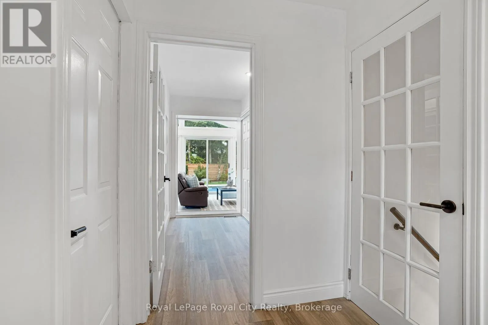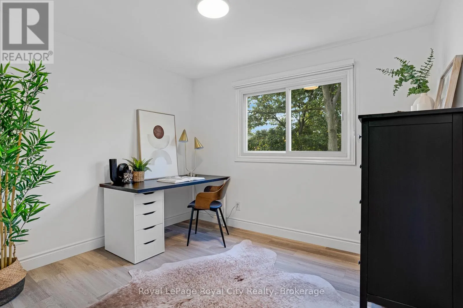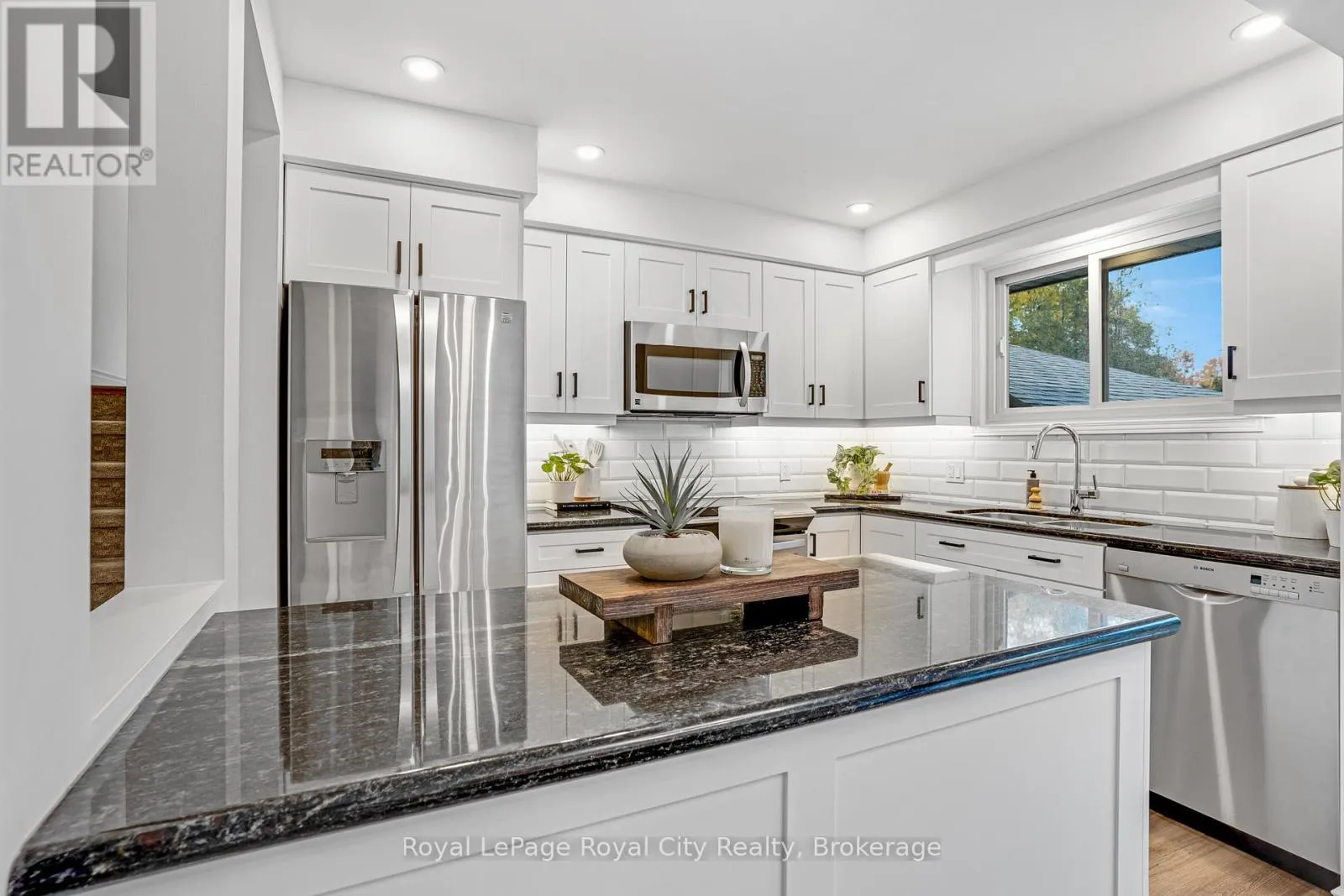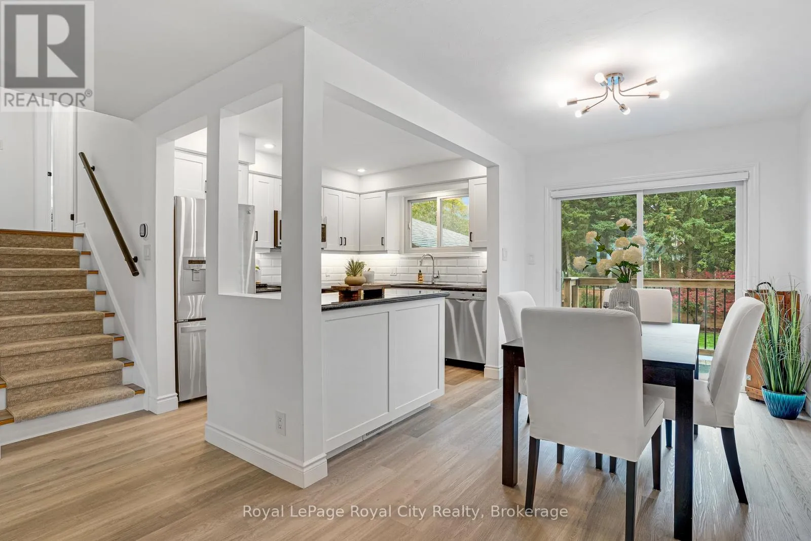 Cross Streets: Hanlon Pkwy/College Ave W. ** Directions: Devere Dr to Lambert Cres. Tucked away at the back of Lambert Crescent, this tastefully updated sidesplit is move-in ready. From the moment you walk in the door the bright sunroom immediately catches your eye, offering vaulted ceilings, a cozy gas fireplace and heated floors, all with a view of the 16 x 32 heated inground pool. The main floor will continue to impress you with the open layout highlighted by a modern white kitchen, a dining space that opens to the deck with pool views, and a comfortable living area designed for relaxing or entertaining. The upper level includes 3 bedrooms and an updated 5-piece bathroom featuring a stunning tiled glass shower, double sinks, and in-floor heating. Built-in dresser drawers and shelving have been added to the primary bedroom, combining style with smart storage solutions. The finished basement provides yet another versatile living space that could serve as a family room, workout area, or home office. This level also showcases a fully renovated 3-piece bathroom. Whether it's summer pool parties or quiet evenings by the fire, this home offers the perfect setting for making memories. (id:27476)