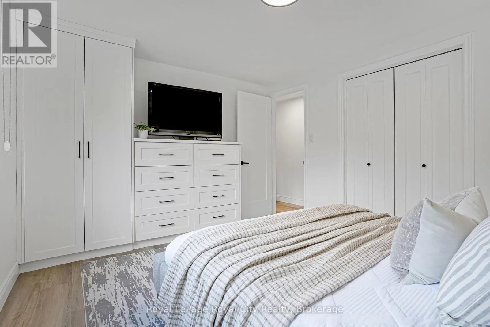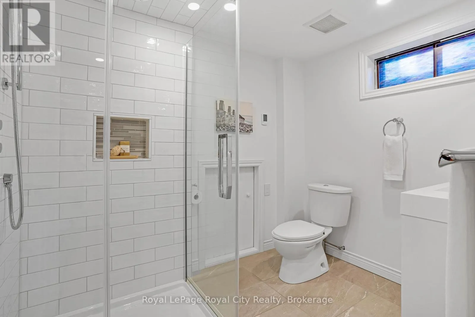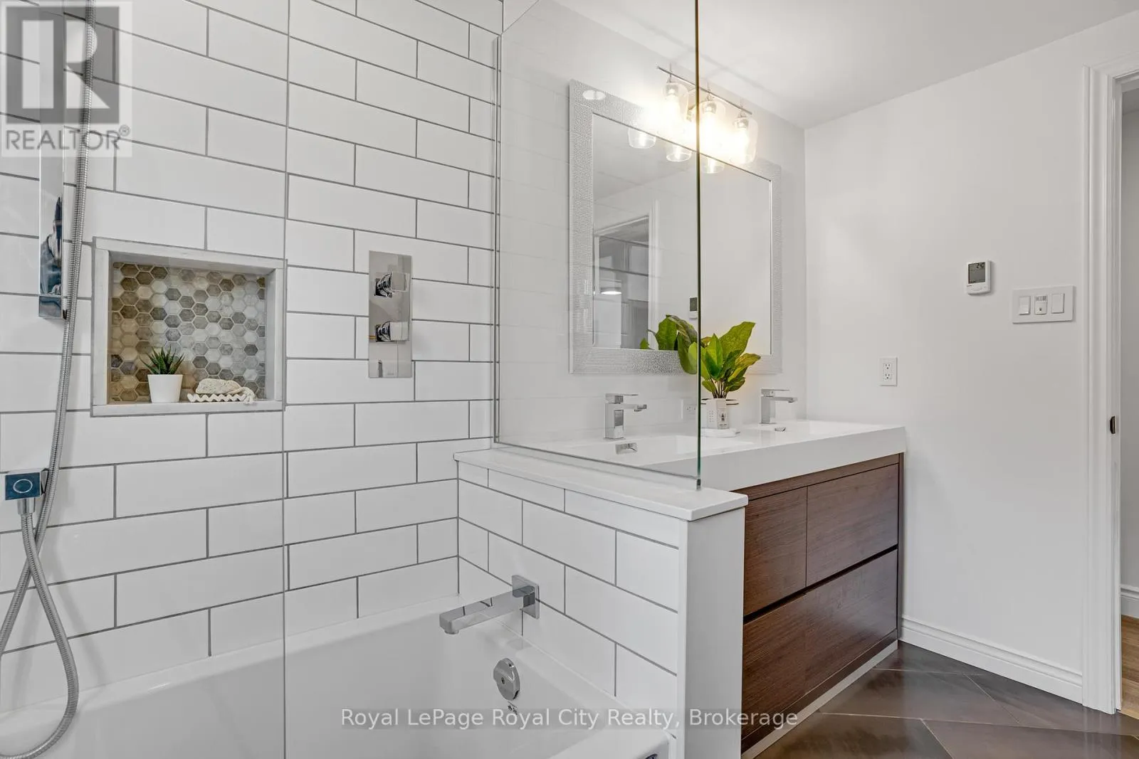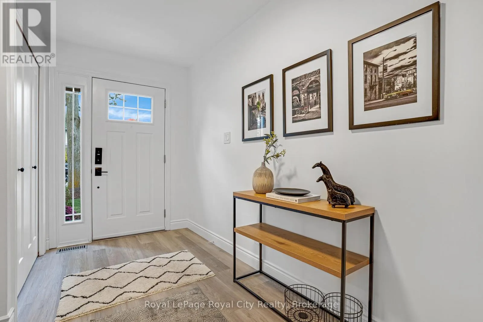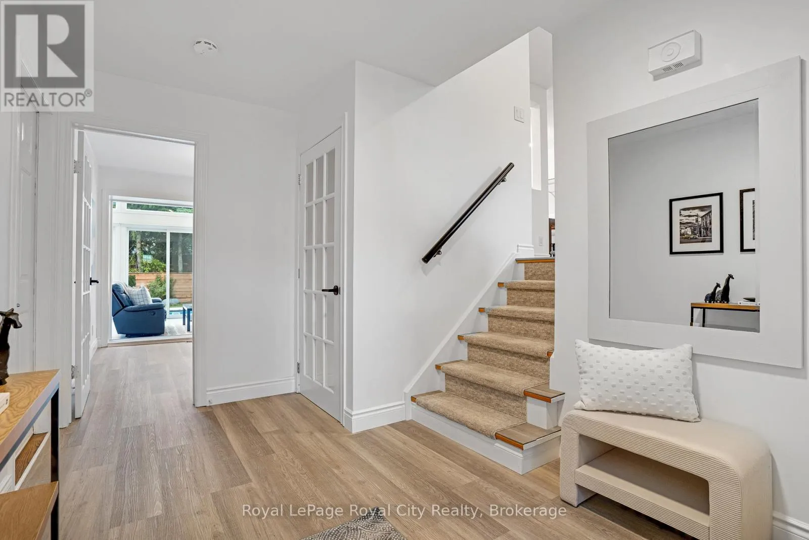 Cross Streets: Hanlon Pkwy/College Ave W. ** Directions: Devere Dr to Lambert Cres. Tucked away at the back of Lambert Crescent, this tastefully updated sidesplit is move-in ready. From the moment you walk in the door the bright sunroom immediately catches your eye, offering vaulted ceilings, a cozy gas fireplace and heated floors, all with a view of the 16 x 32 heated inground pool. The main floor will continue to impress you with the open layout highlighted by a modern white kitchen, a dining space that opens to the deck with pool views, and a comfortable living area designed for relaxing or entertaining. The upper level includes 3 bedrooms and an updated 5-piece bathroom featuring a stunning tiled glass shower, double sinks, and in-floor heating. Built-in dresser drawers and shelving have been added to the primary bedroom, combining style with smart storage solutions. The finished basement provides yet another versatile living space that could serve as a family room, workout area, or home office. This level also showcases a fully renovated 3-piece bathroom. Whether it's summer pool parties or quiet evenings by the fire, this home offers the perfect setting for making memories. (id:27476)
