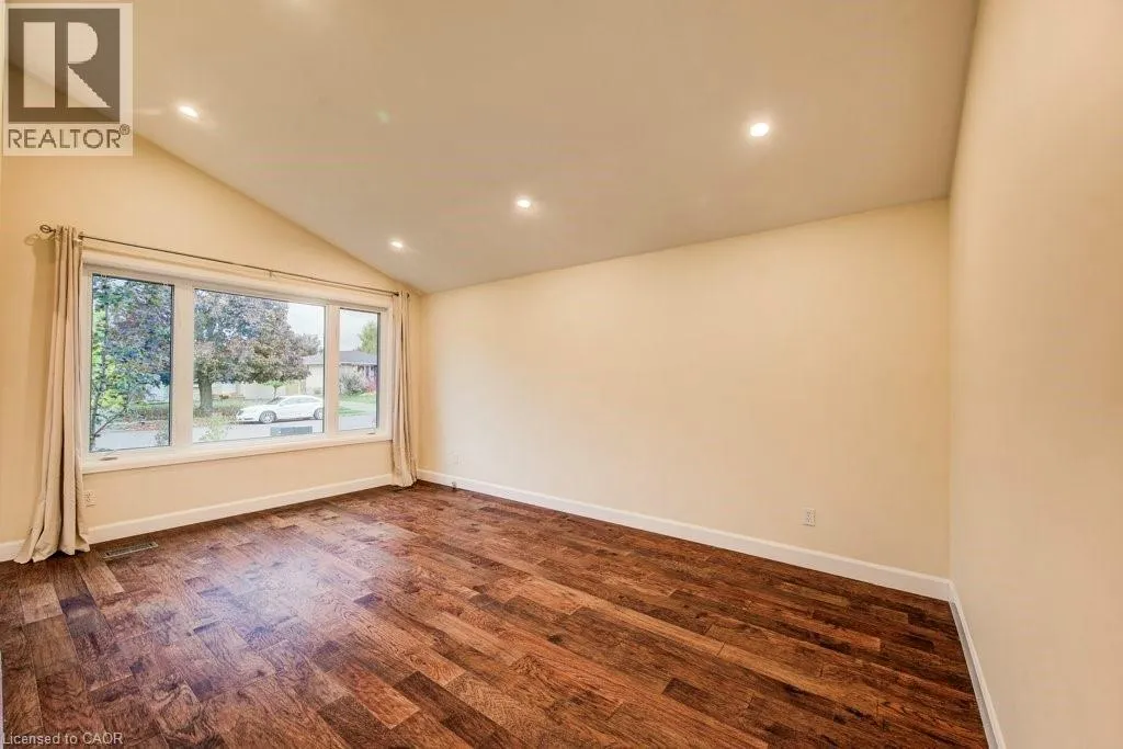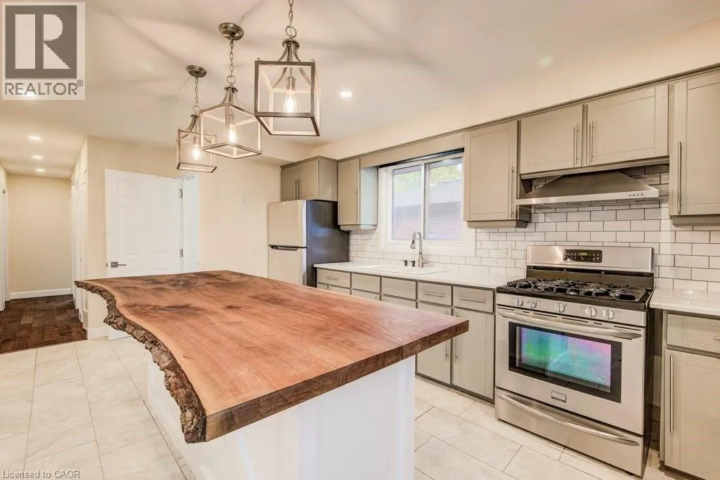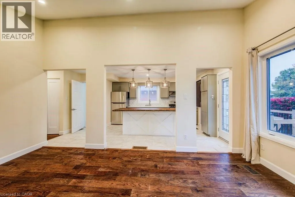 Victoria Rd to Brant Ave. Welcome to this charming and inviting east end bungalow, offering a perfect blend of comfort, style, and opportunity. Step inside to discover an open-concept main floor with a vaulted ceiling that fills the space with natural light. The spacious eat-in kitchen with island is perfect for family gatherings and casual meals. With three bright bedrooms and 4-piece bath, the main level feels spacious and inviting. Downstairs, youâll find a beautifully maintained 1-bedroom legal basement apartment featuring a gas fireplace and private walkout entranceâideal for rental income or in-laws. The landscaped backyard adds to this homeâs curb appeal, offering a tranquil outdoor retreat. Move-in ready and beautifully maintained, this home is a must-see! (id:27476)